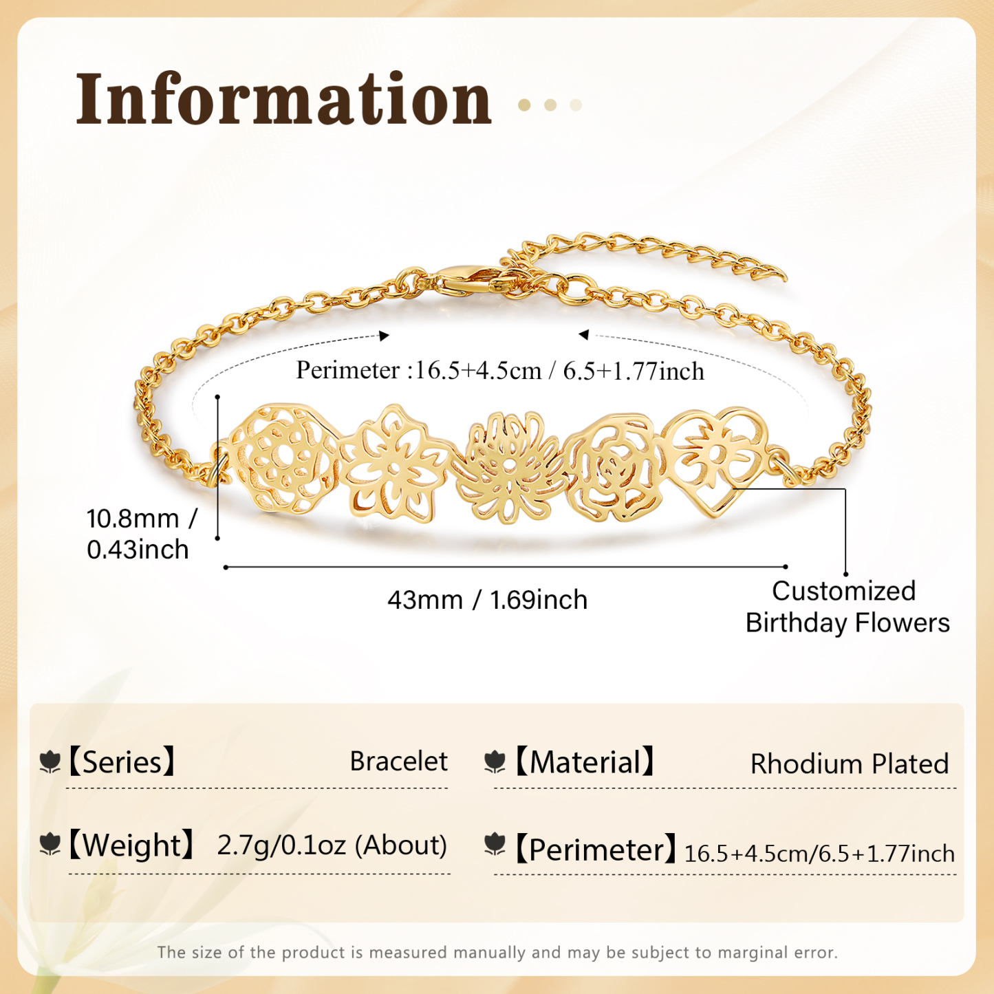 Personalized Bracelet Customization, Customized 5 Birthflower Exquisite Bracelet For Women