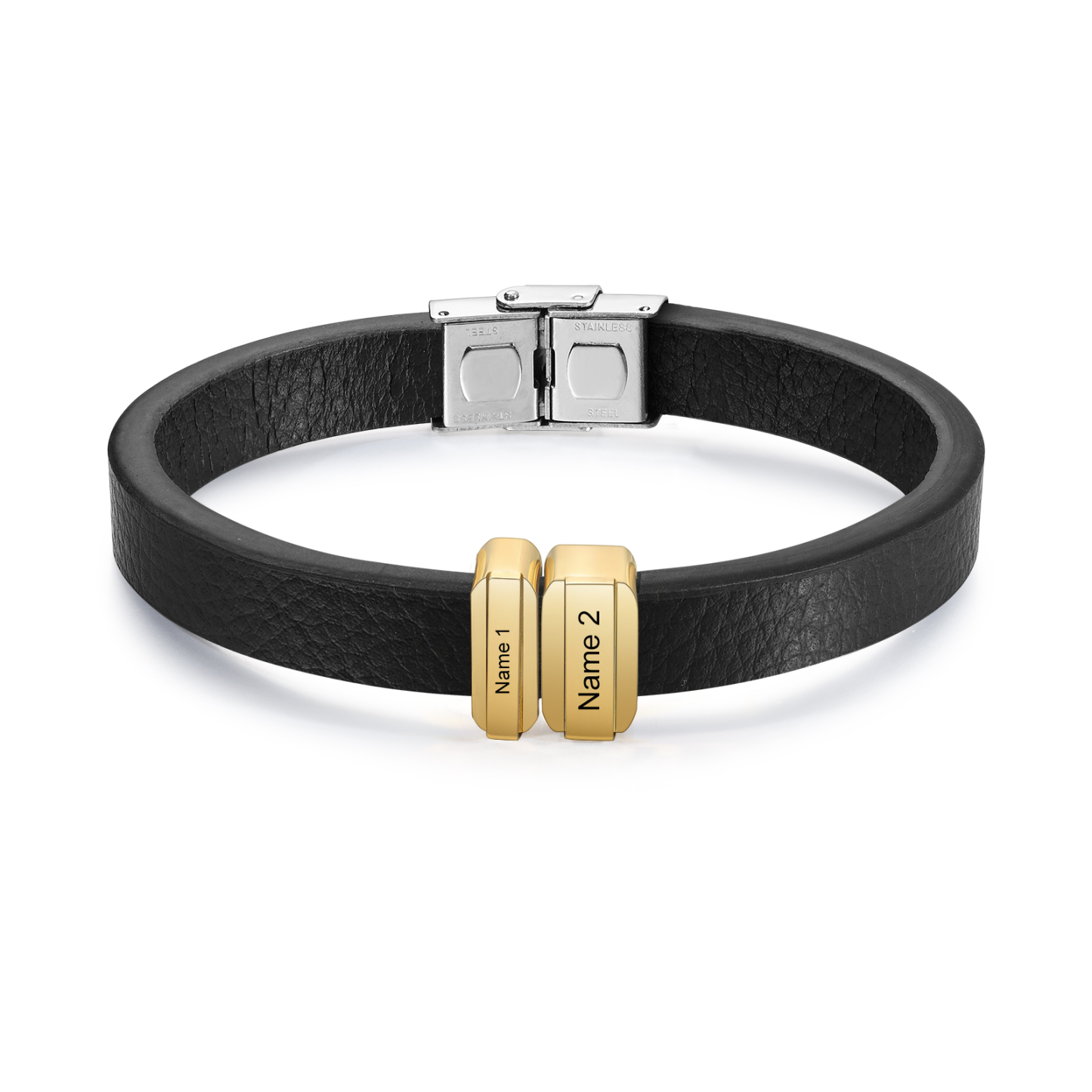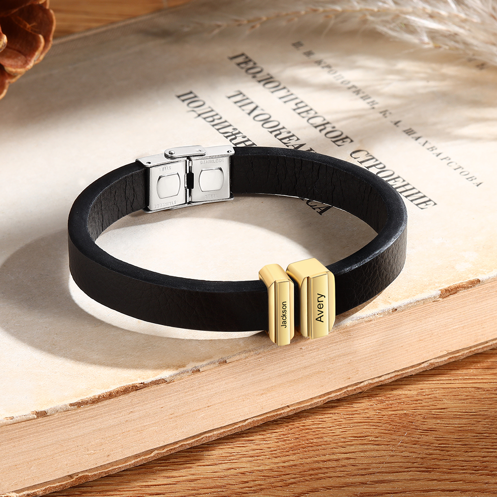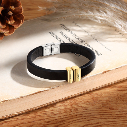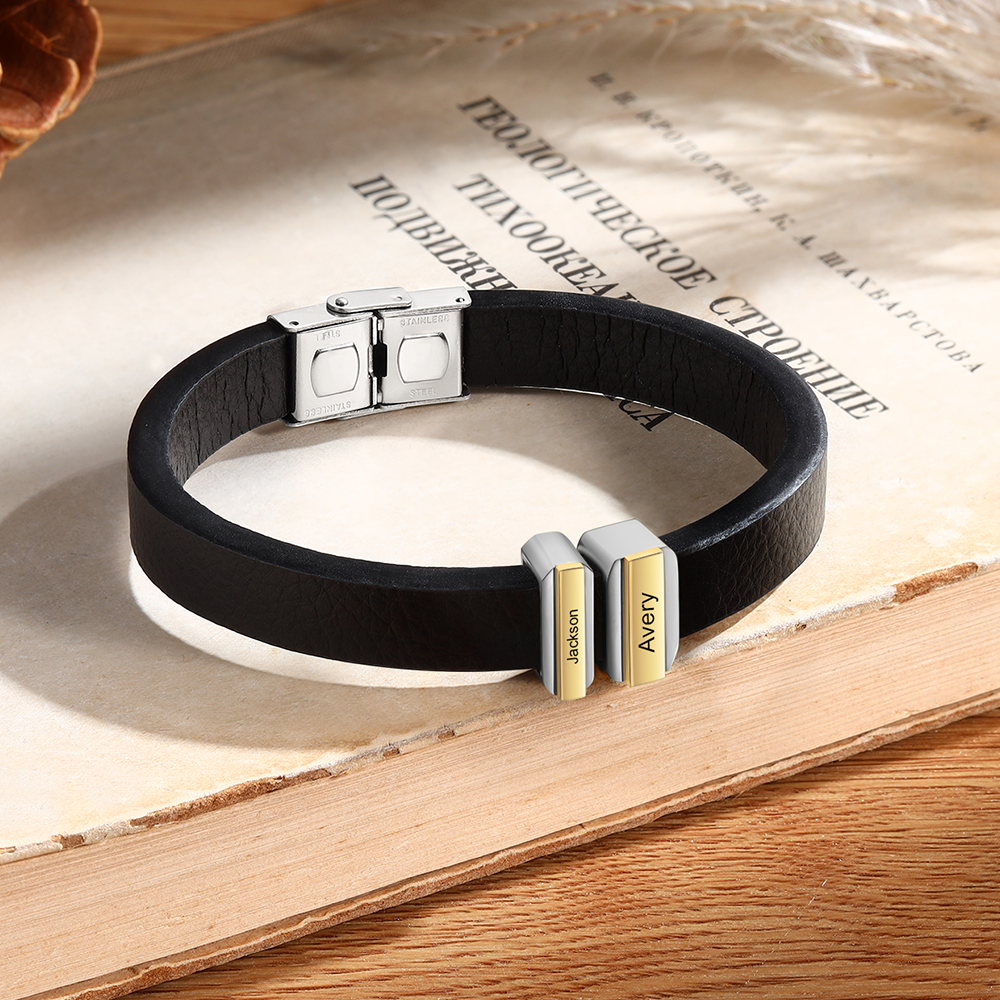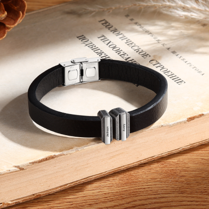 2 Names Personalized Stainless Steel Leather Bracelet Engraved Name Men's Bracelet Gift for Dad