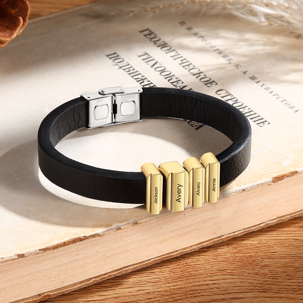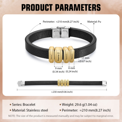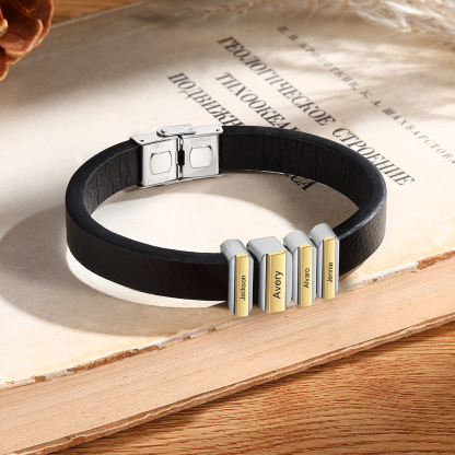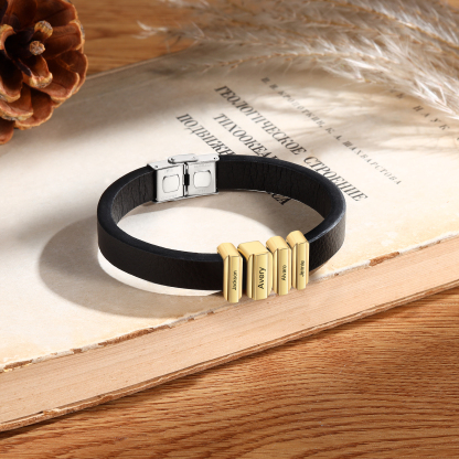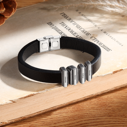 4 Names Personalized Stainless Steel Leather Bracelet Engraved Name Men's Bracelet Gift for Dad