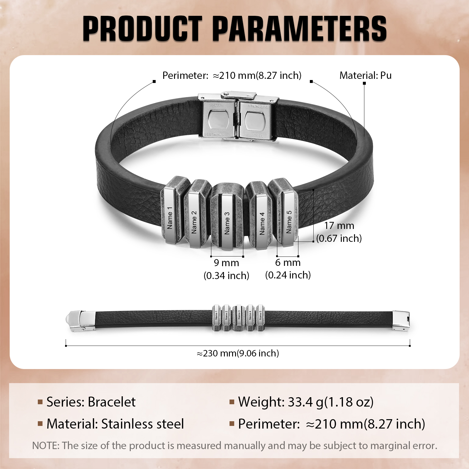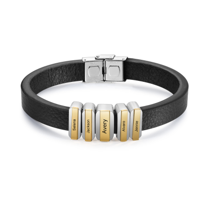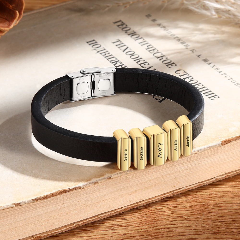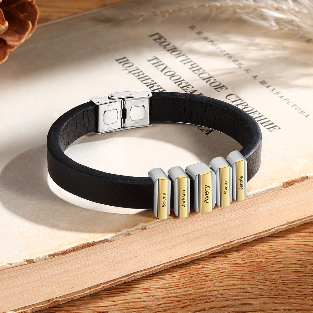 5 Names Personalized Stainless Steel Leather Bracelet Engraved Name Men's Bracelet Gift for Dad