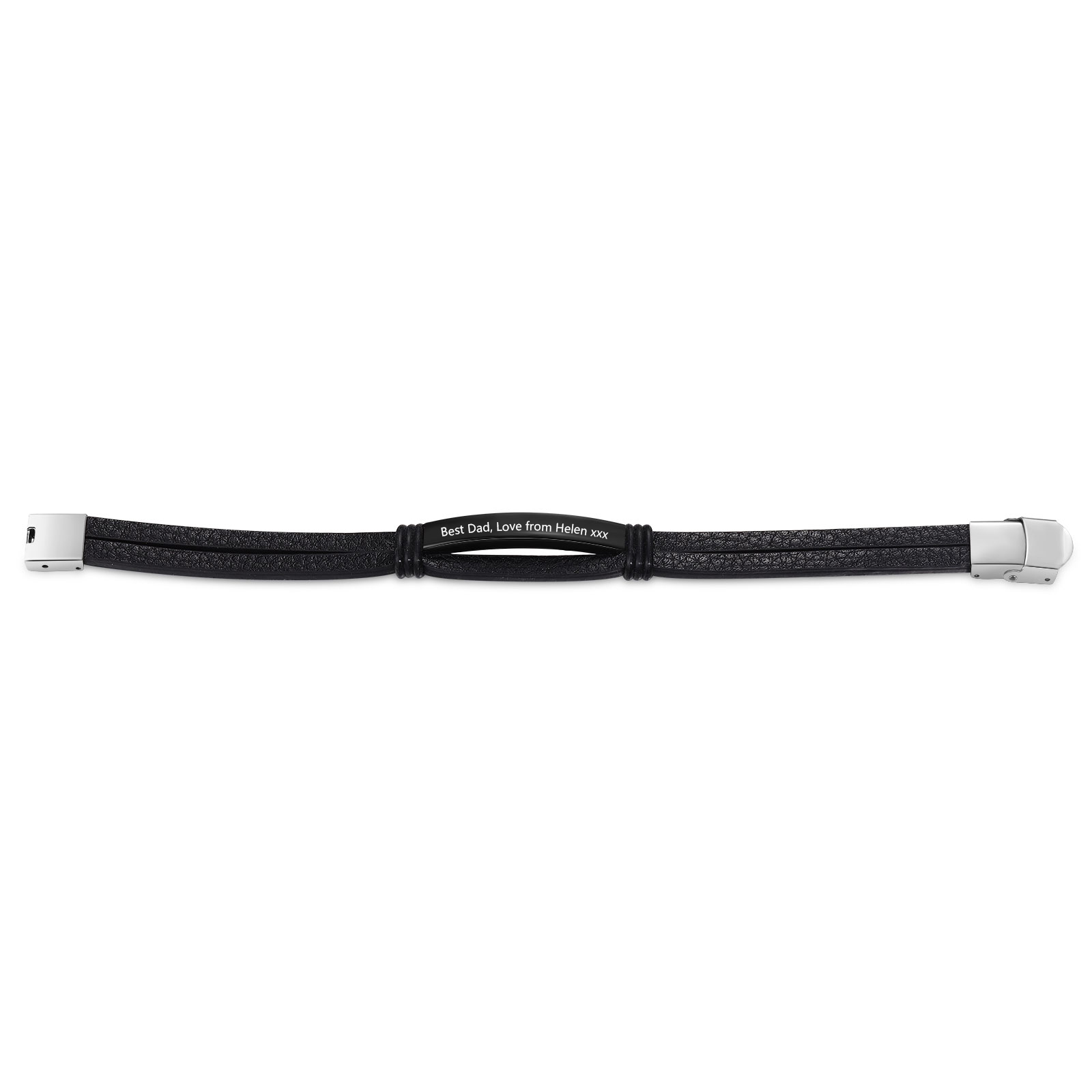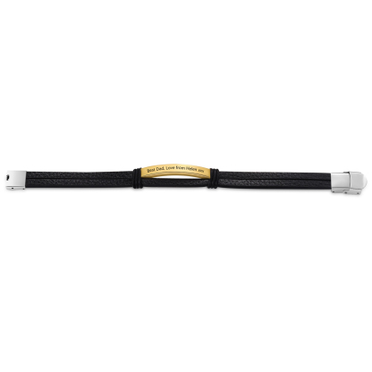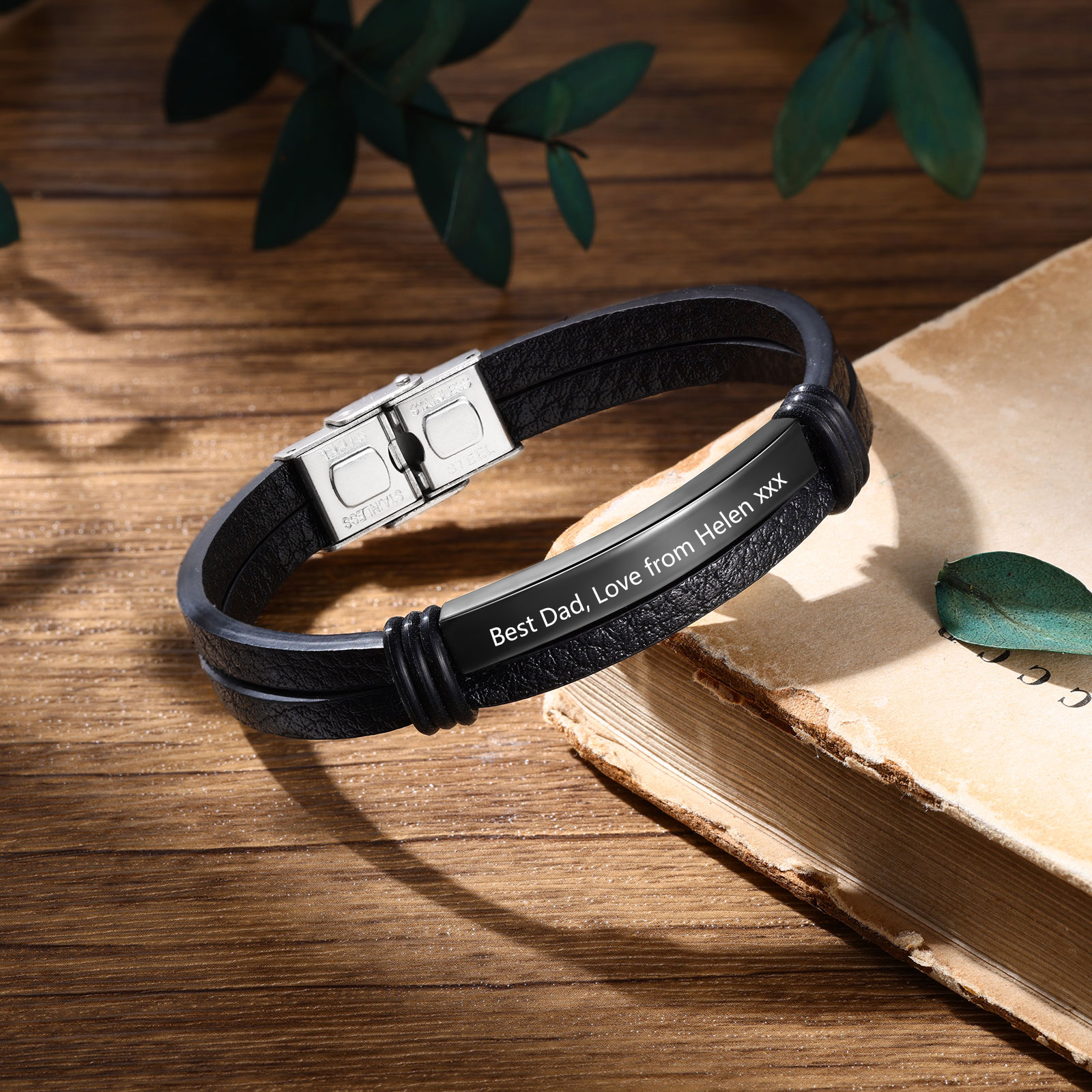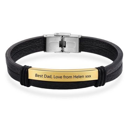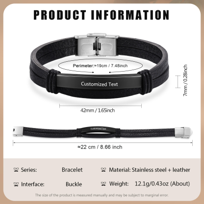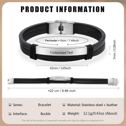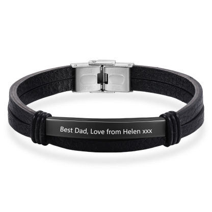 Personalized Text Black Leather Bracelet Men's Bracelet Father's Day Gift for Dad