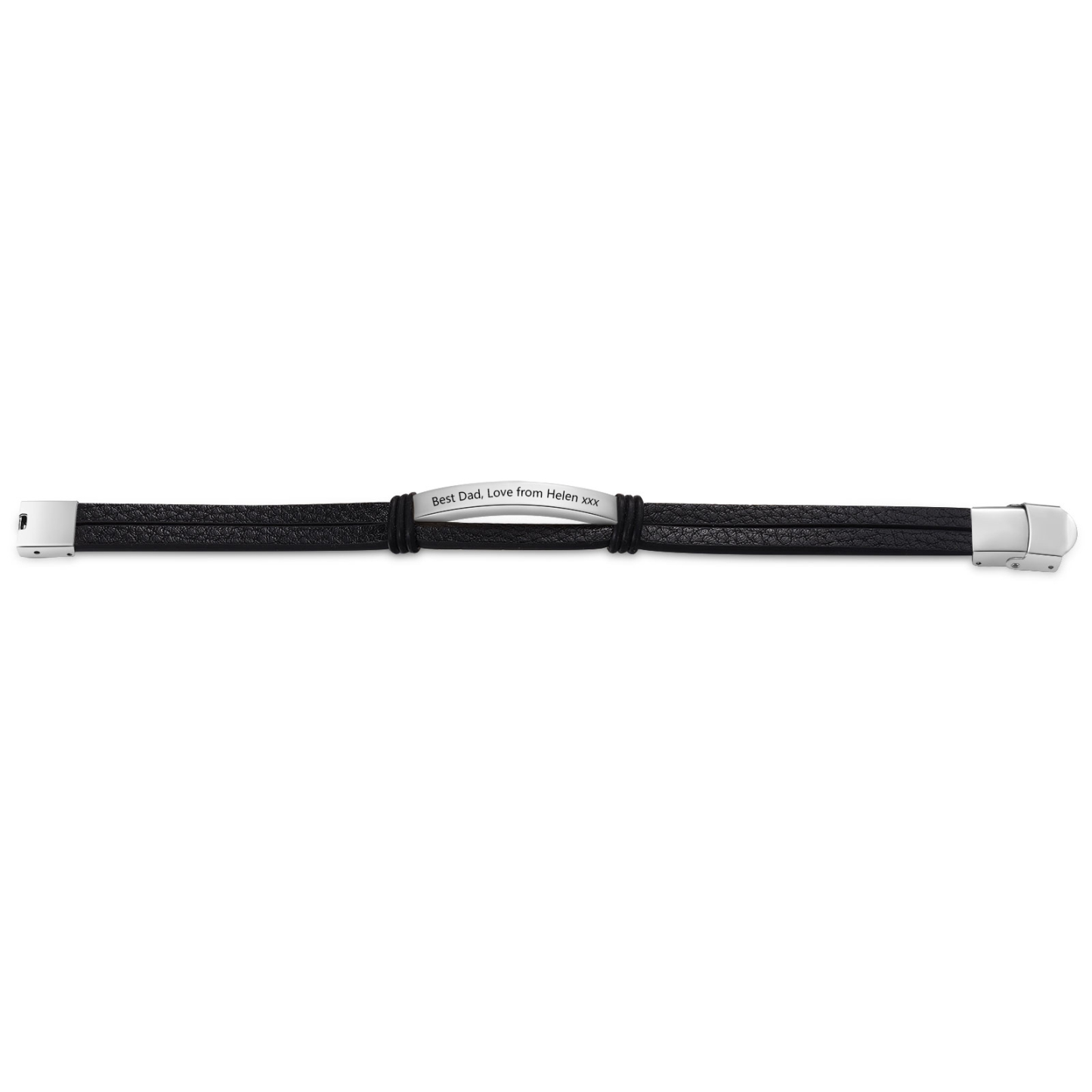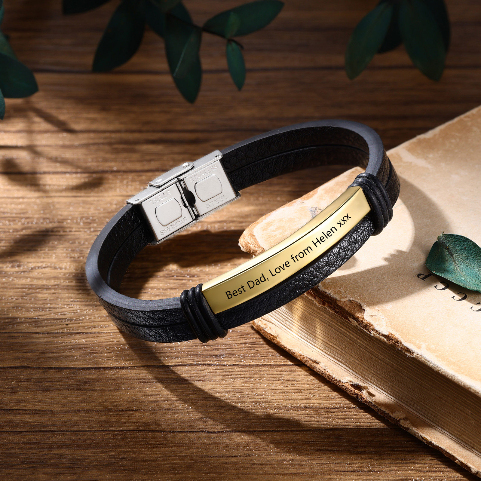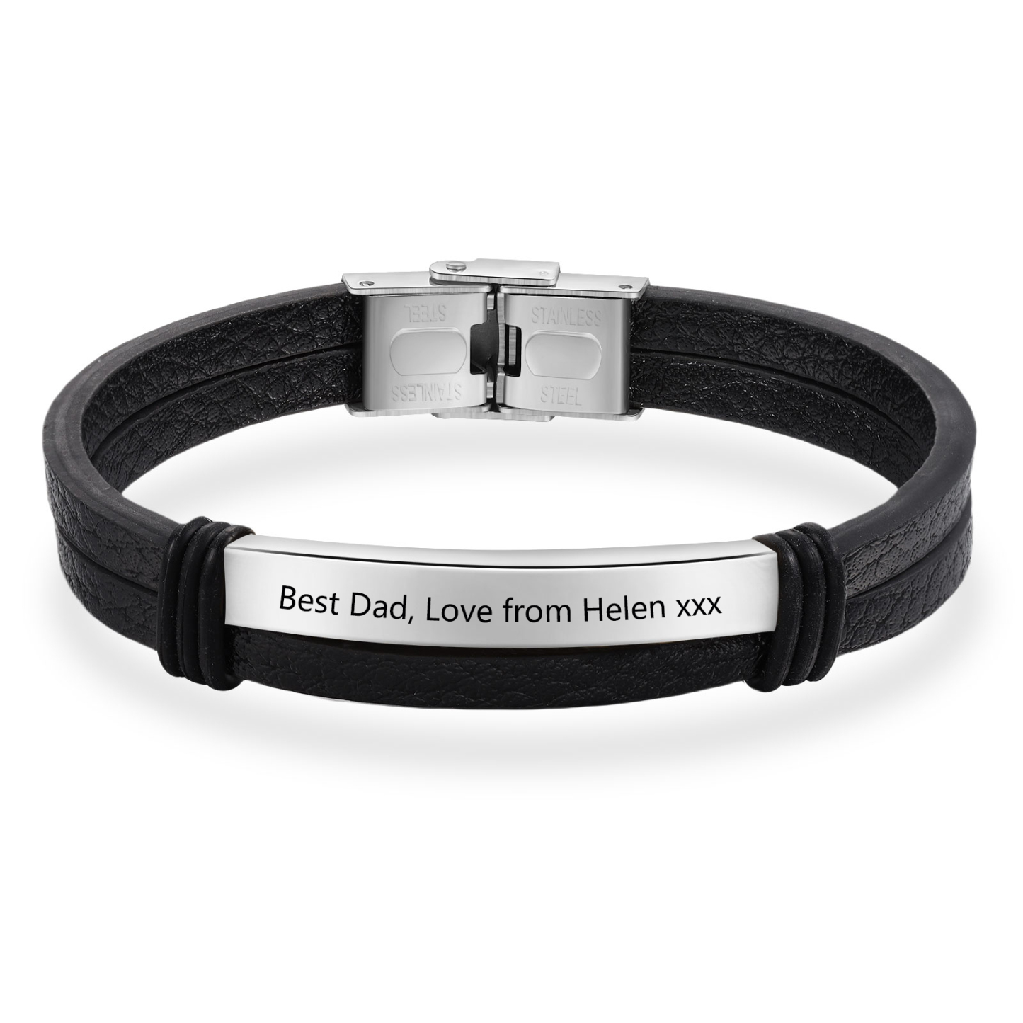 Personalized Text Black Leather Bracelet Men's Bracelet Father's Day Gift for Dad