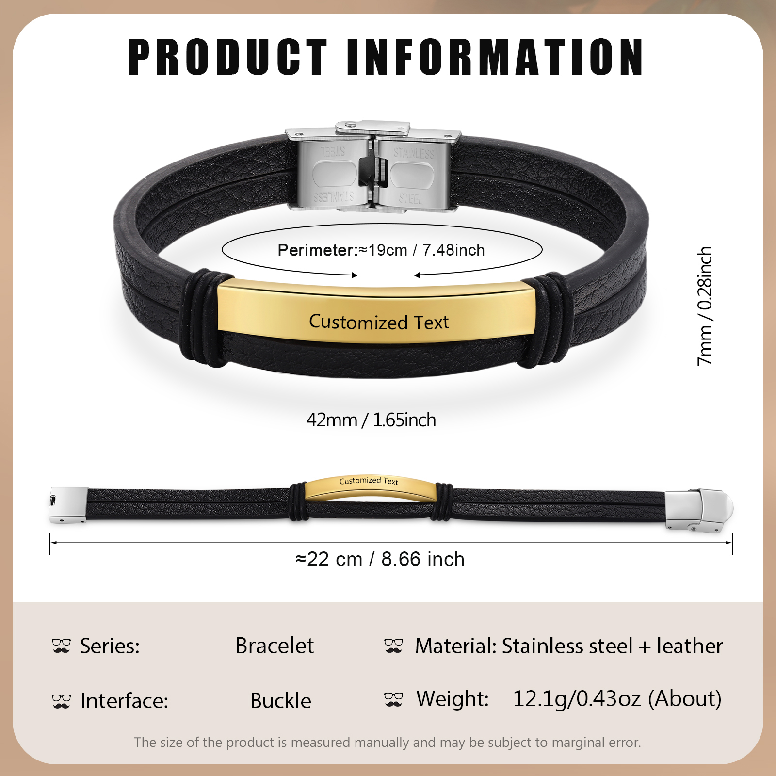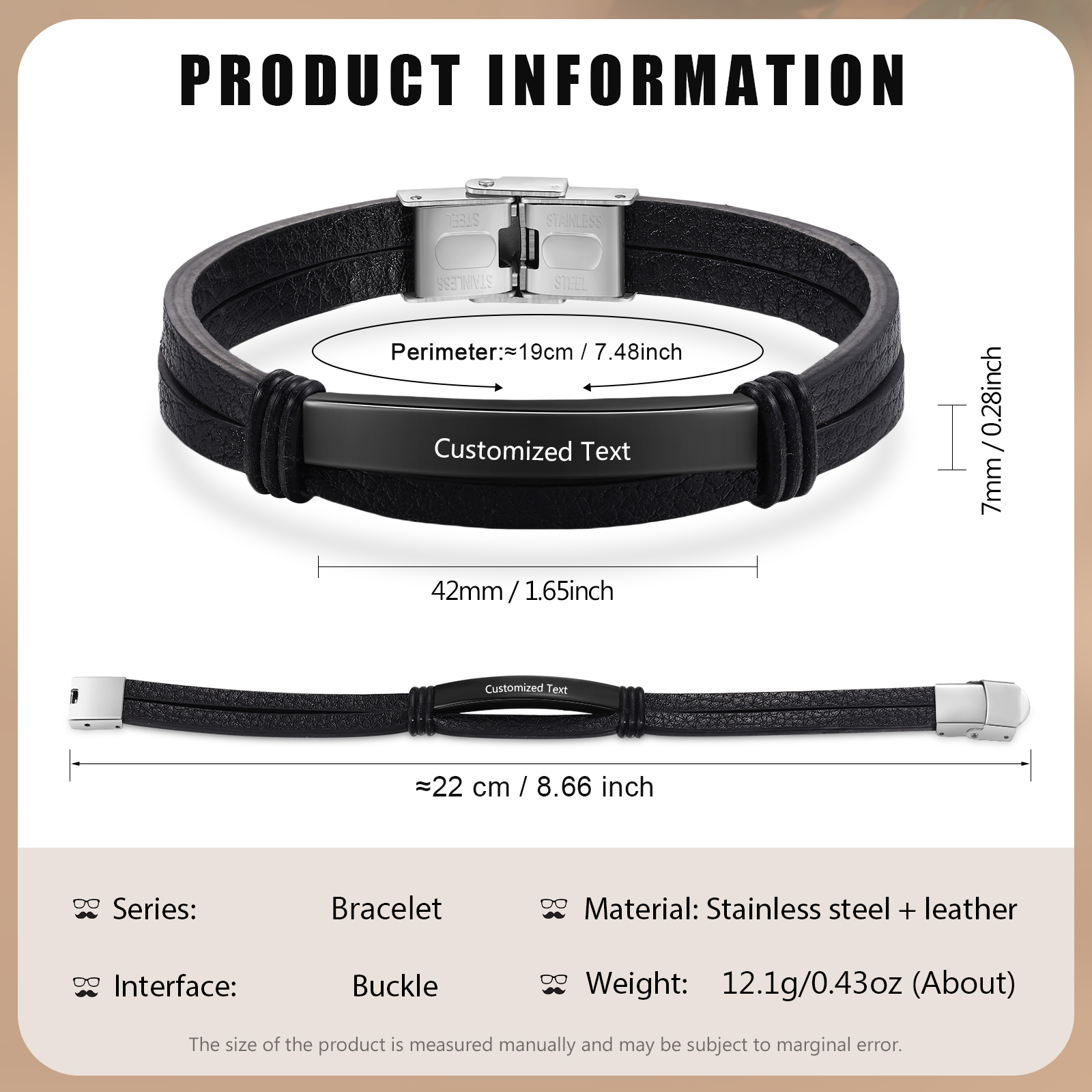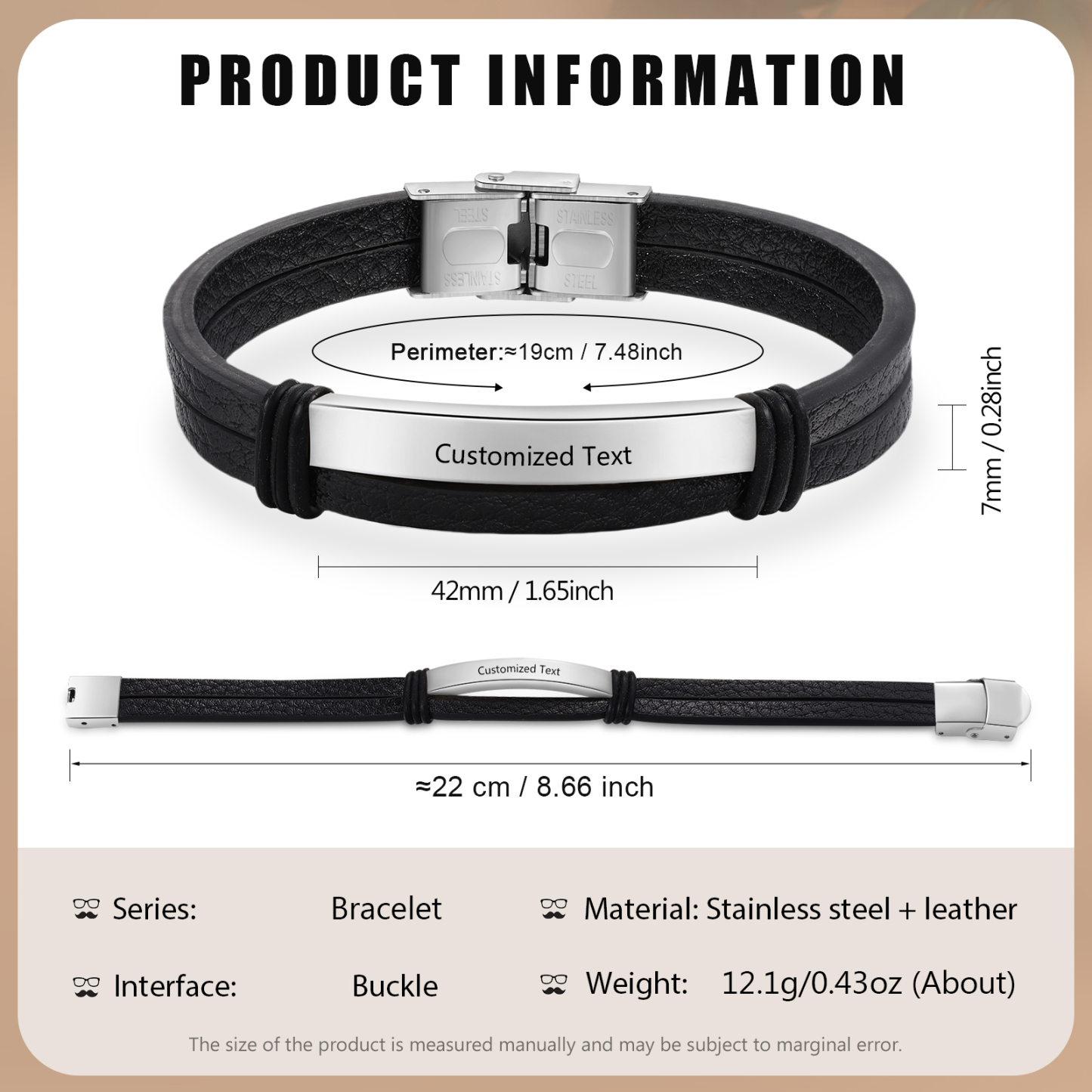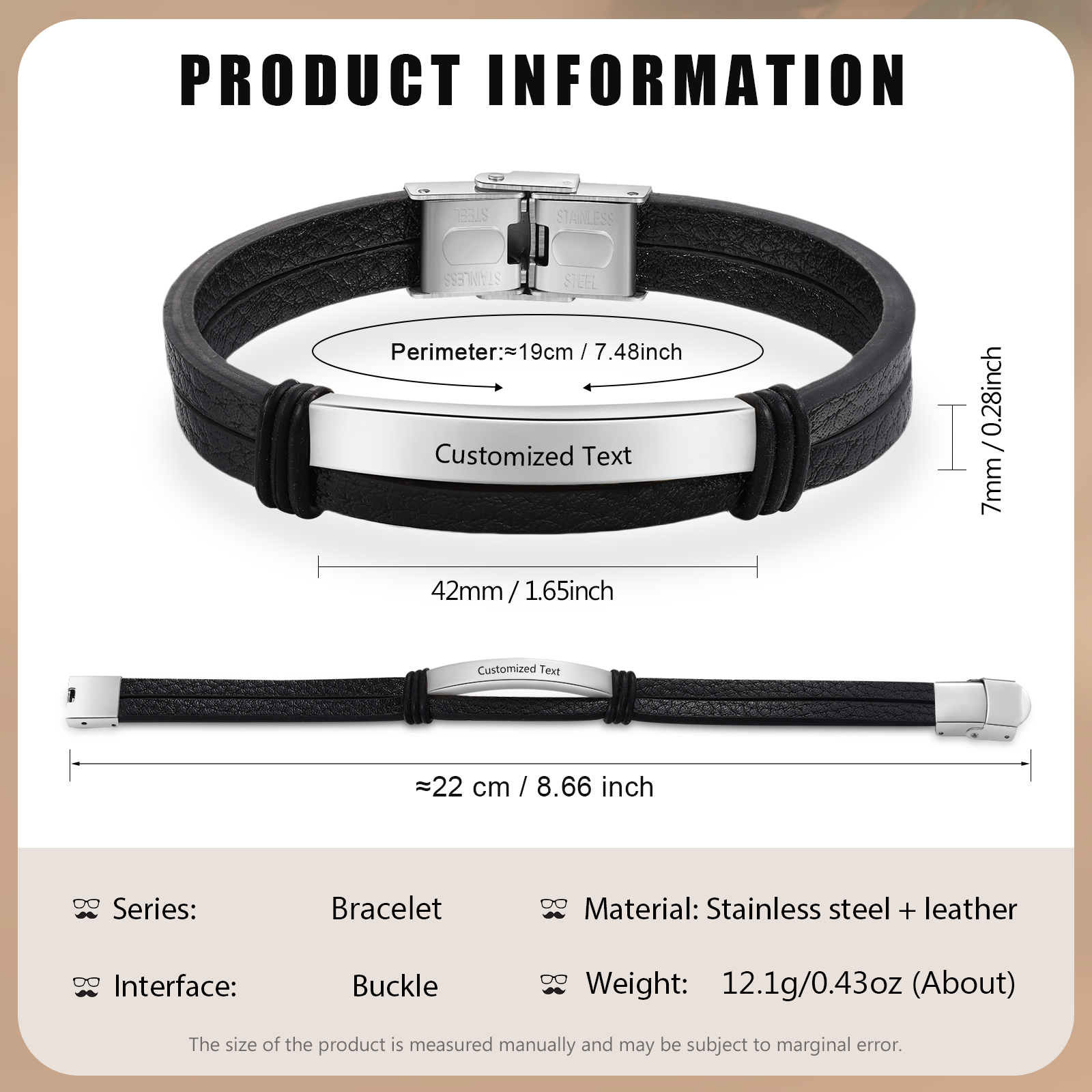 Material: Stainless steel + leather