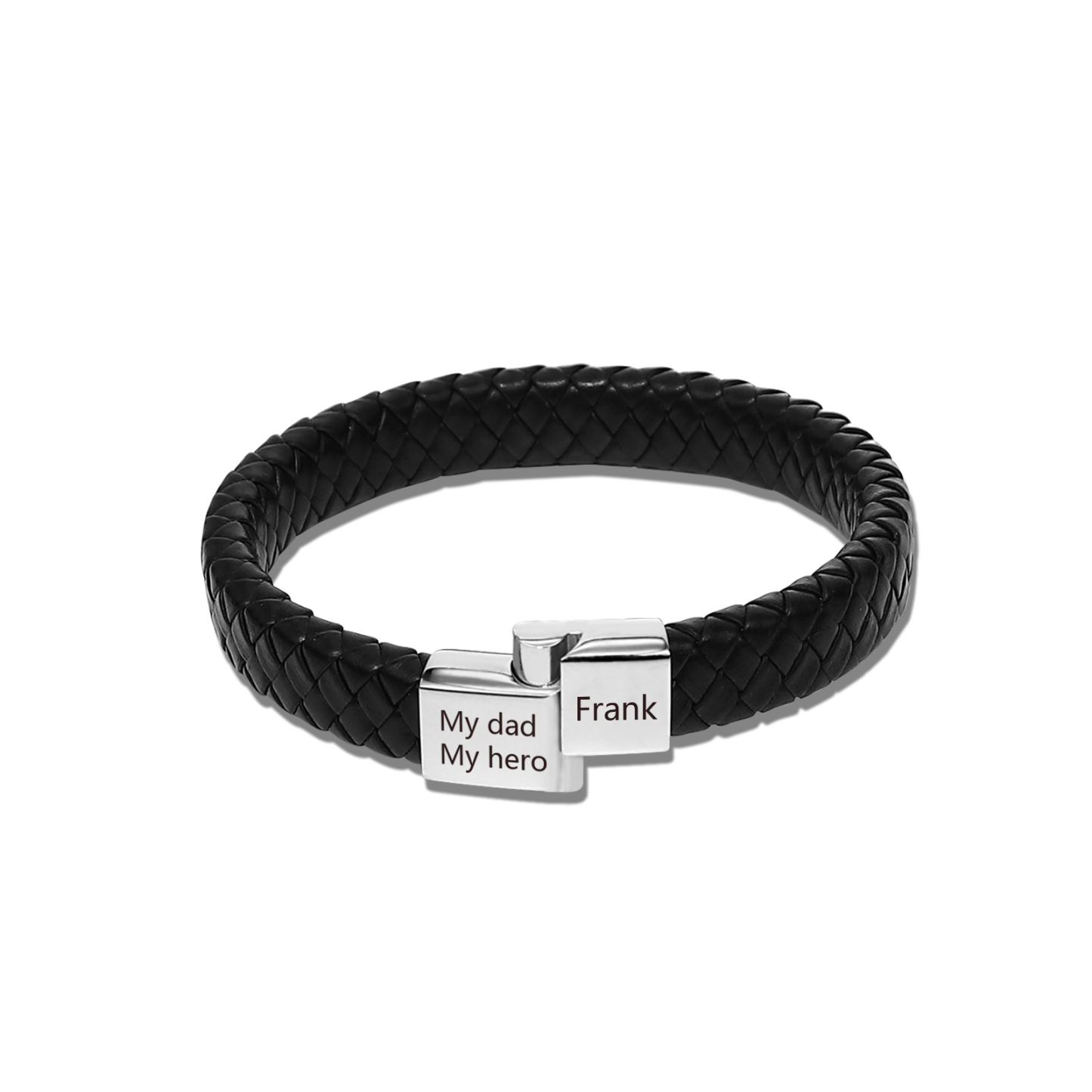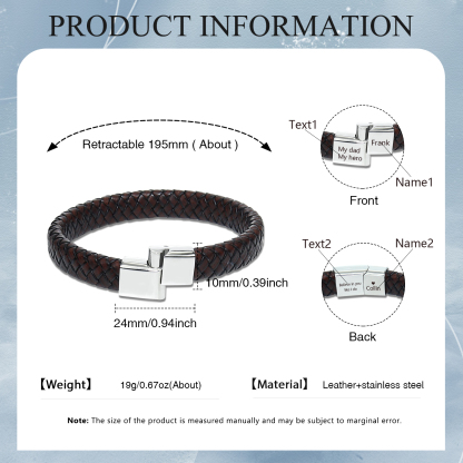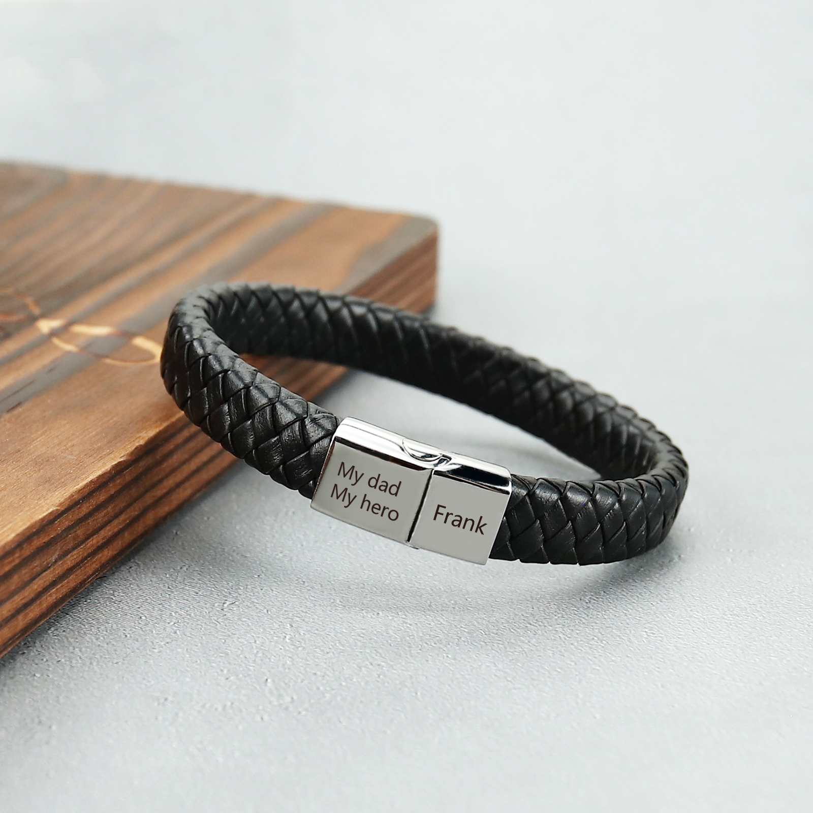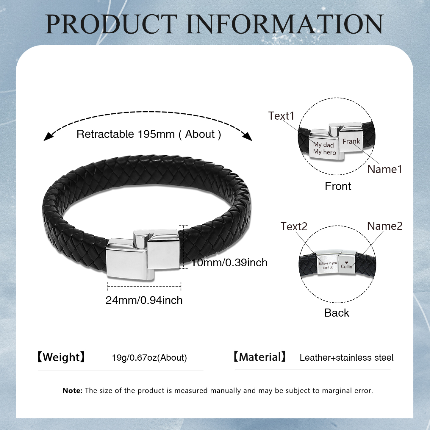 Personalized 2 Names and 2 Texts Leather Bracelet Men's Bracelet Father's Day Gift for Dad