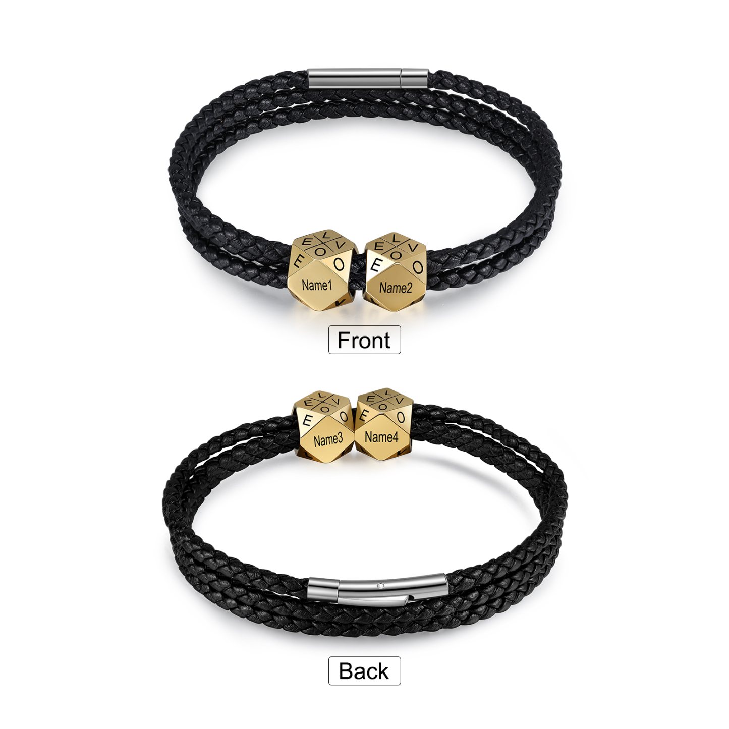 Personalized Braided Leather Bracelet Engraved 4 Names polyhedron Men's Bracelet Gifts For Him
