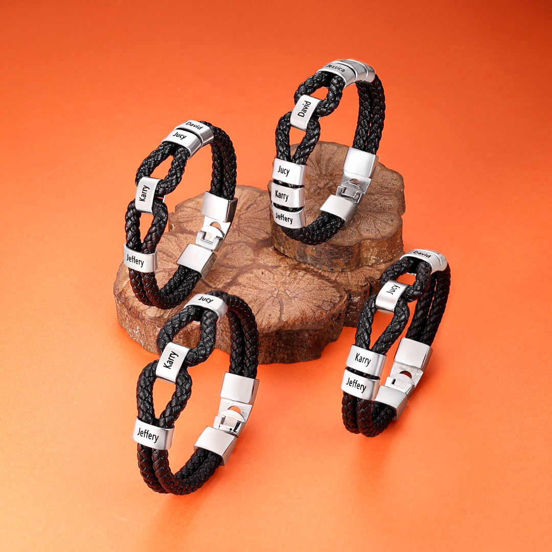 Personalized Braided Rope Men's Bracelet For Him Custom With Family 1 Name For Father