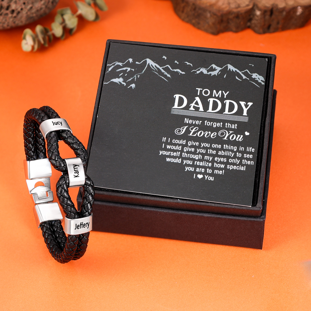 Personalized Braided Rope Men's Bracelet For Him Custom With Family 3 Names For Father