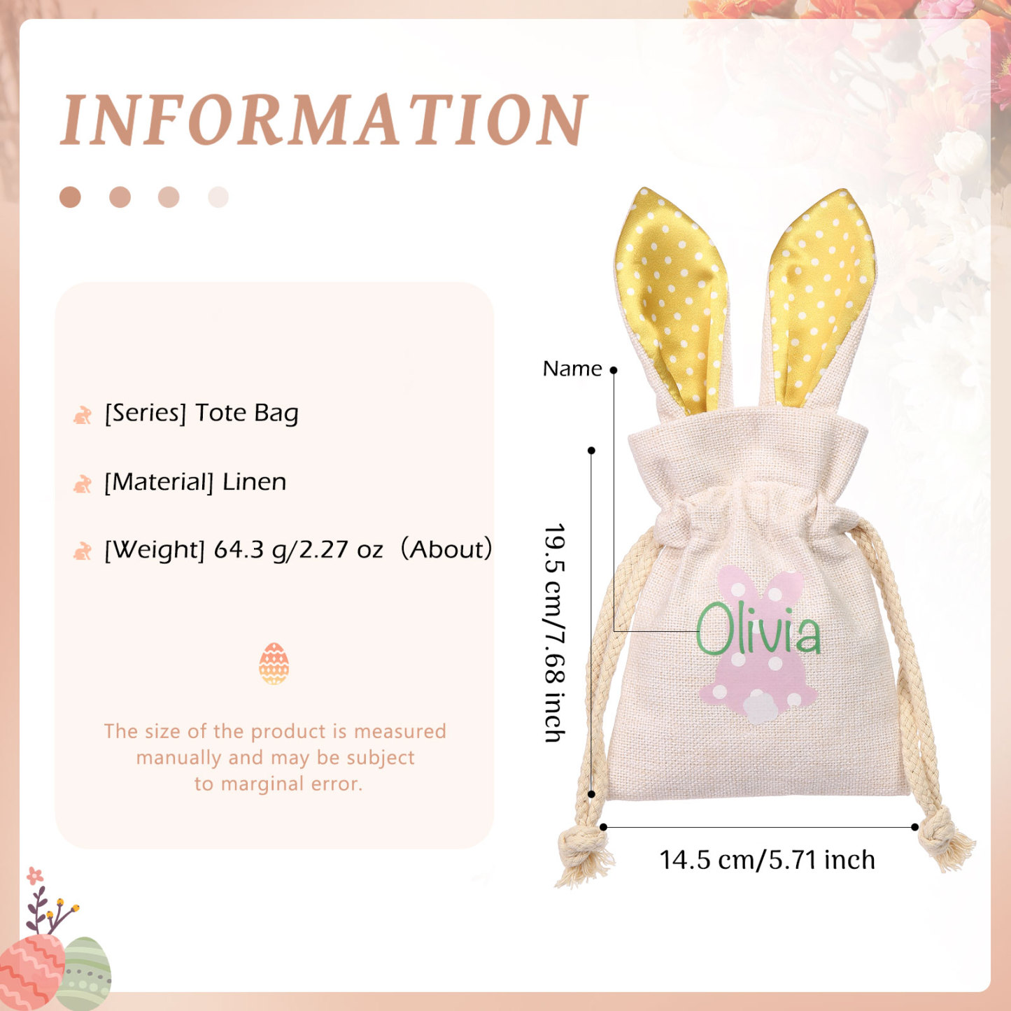 Personalized Bunny Tote Bag Customized with Name Bunny Drawstring Bag Easter Gifts