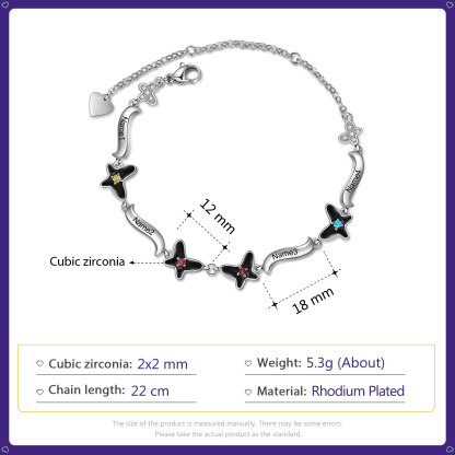 Personalized Butterfly Bracelet With 4 Birthstones Engrave Names Necklace Gift For Women