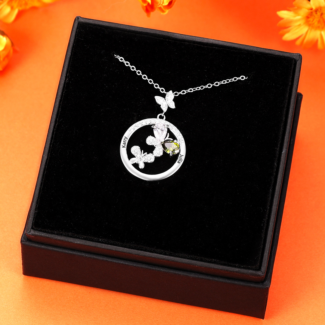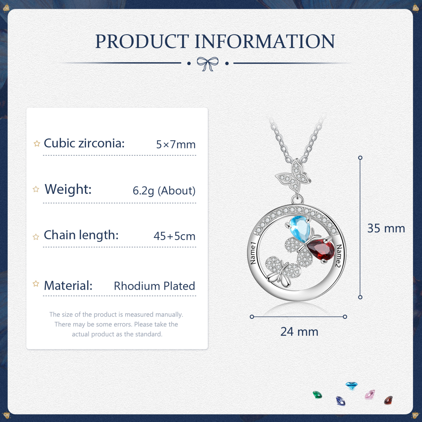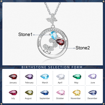Personalized Butterfly Necklace With 2 Birthstones Custom Names Best Gift For Her