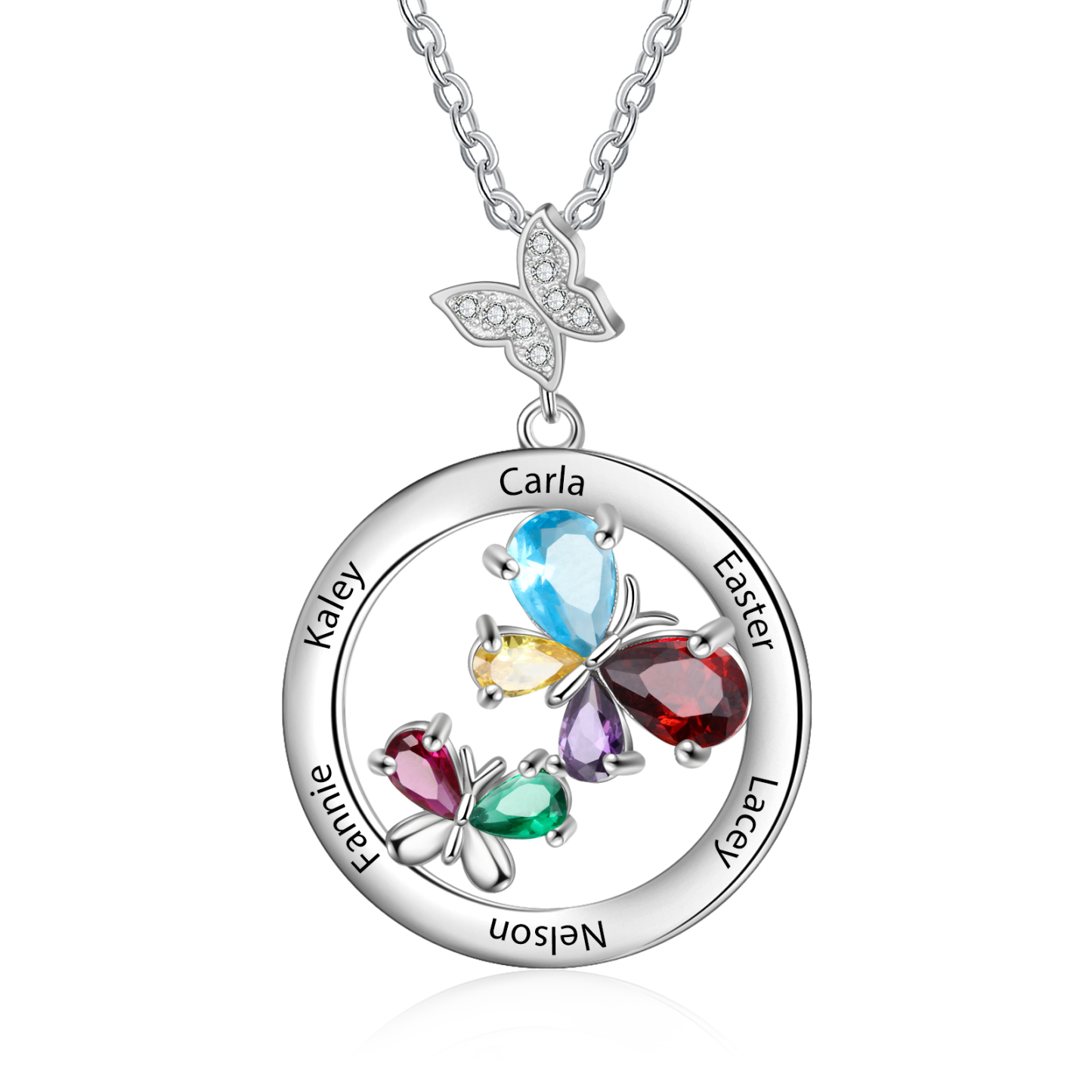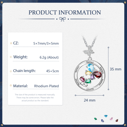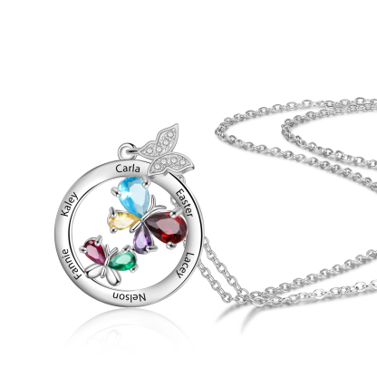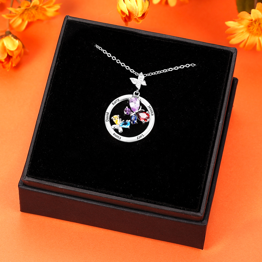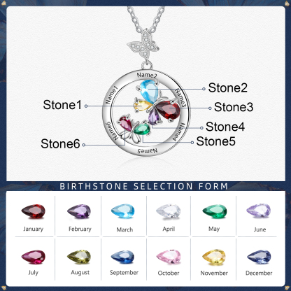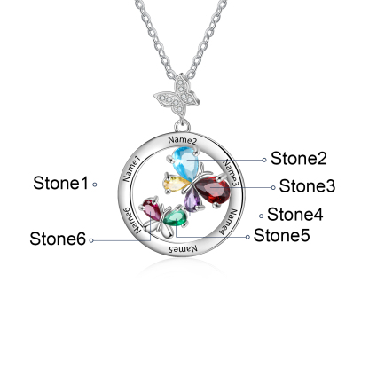Personalized Butterfly Necklace With 6 Birthstones Custom Names Best Gift For Her