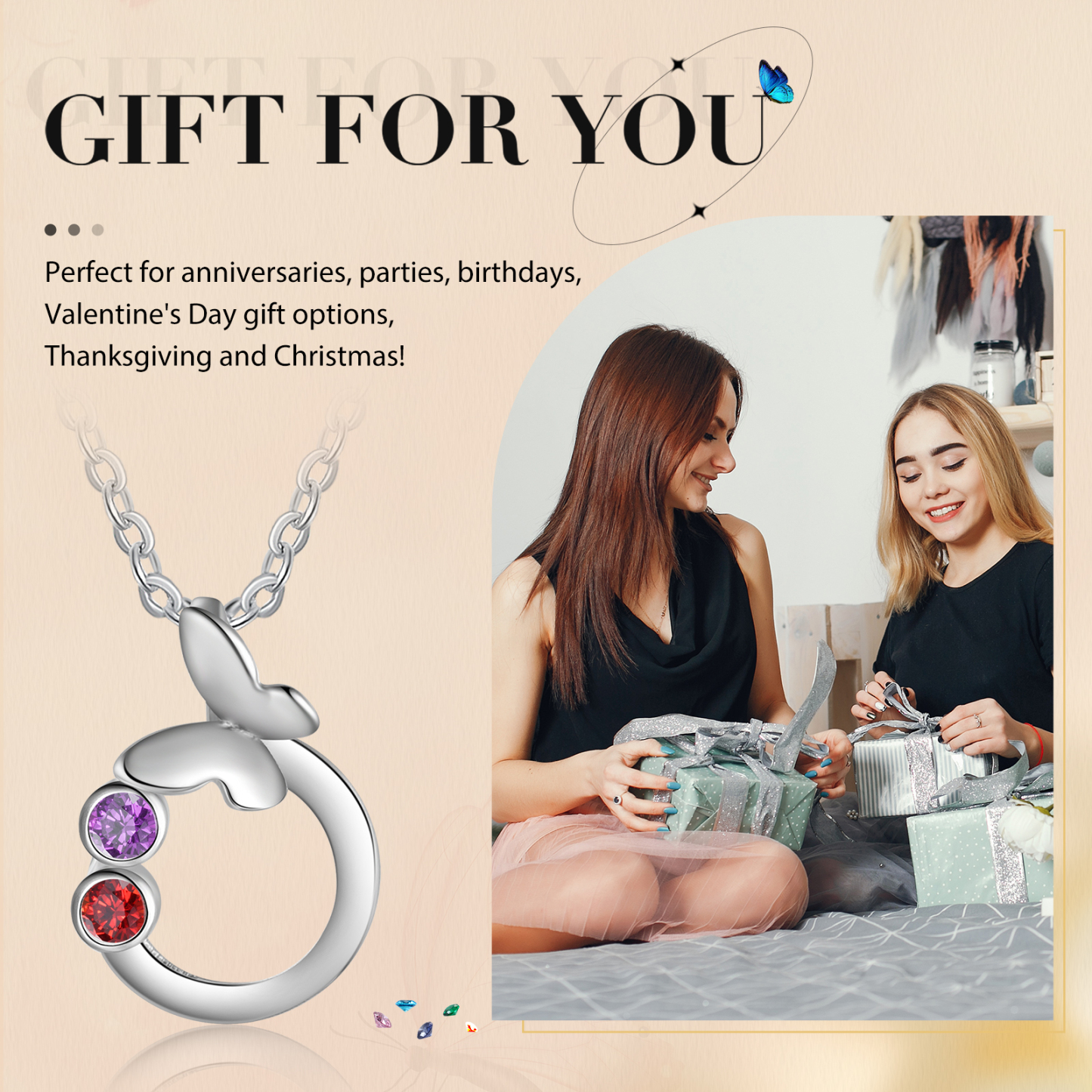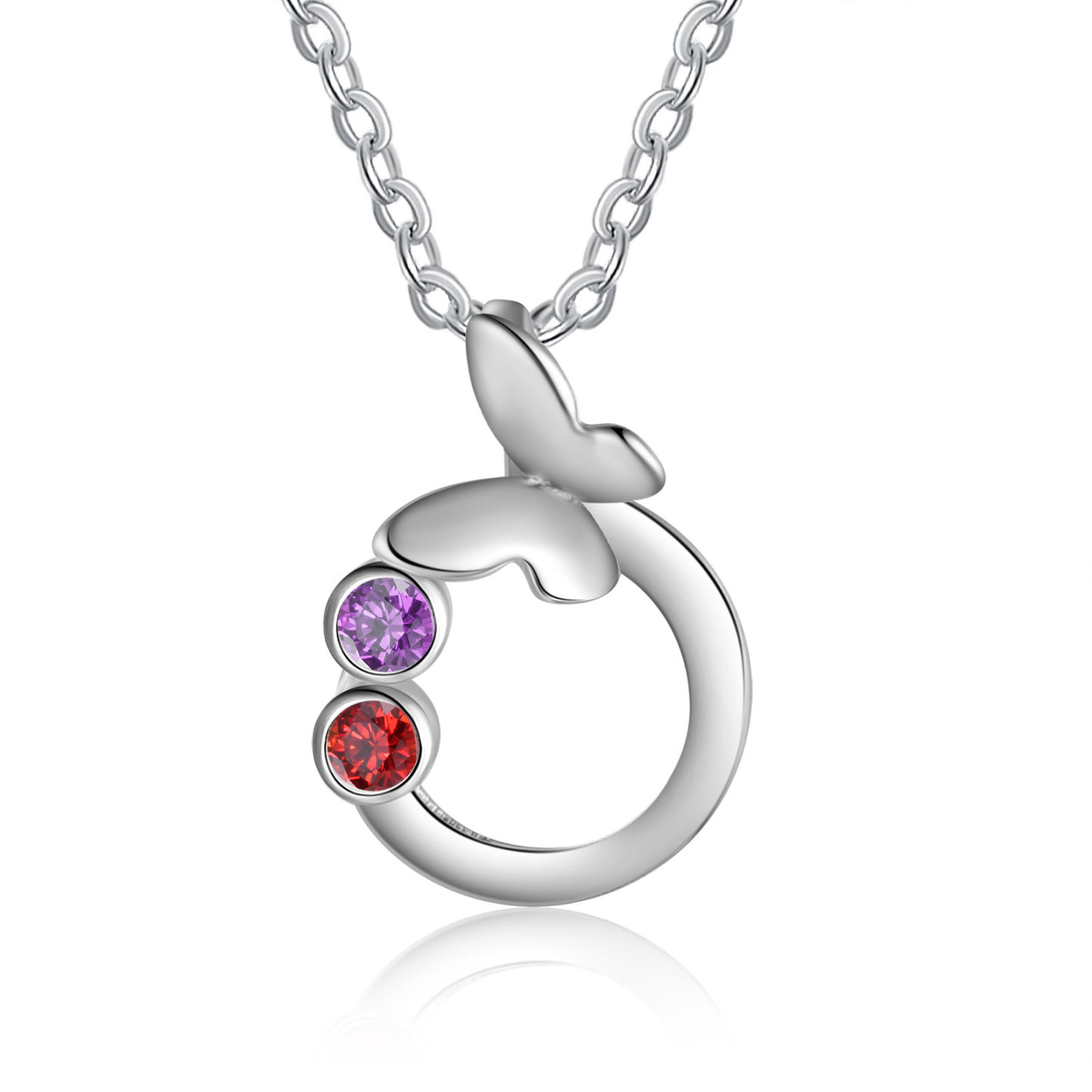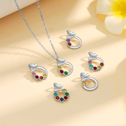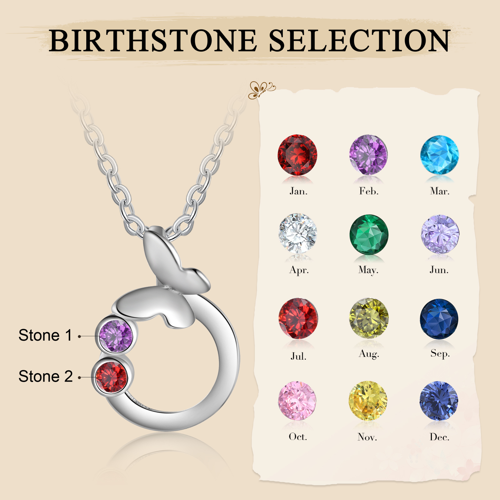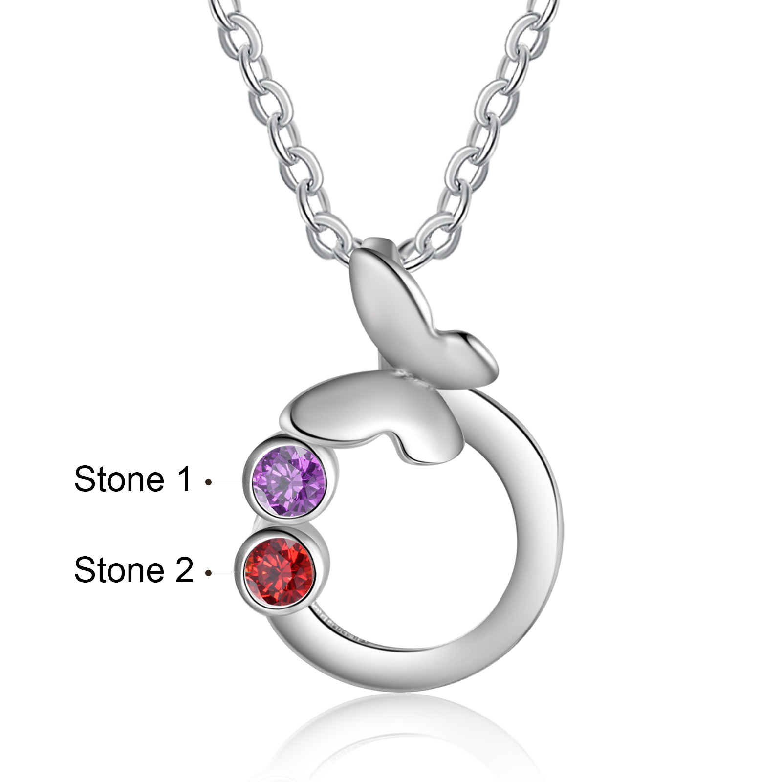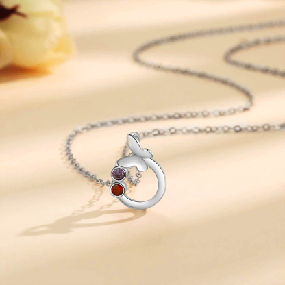 Personalized Butterfly Necklace With 2 Birthstones Engraved Gift For Women
