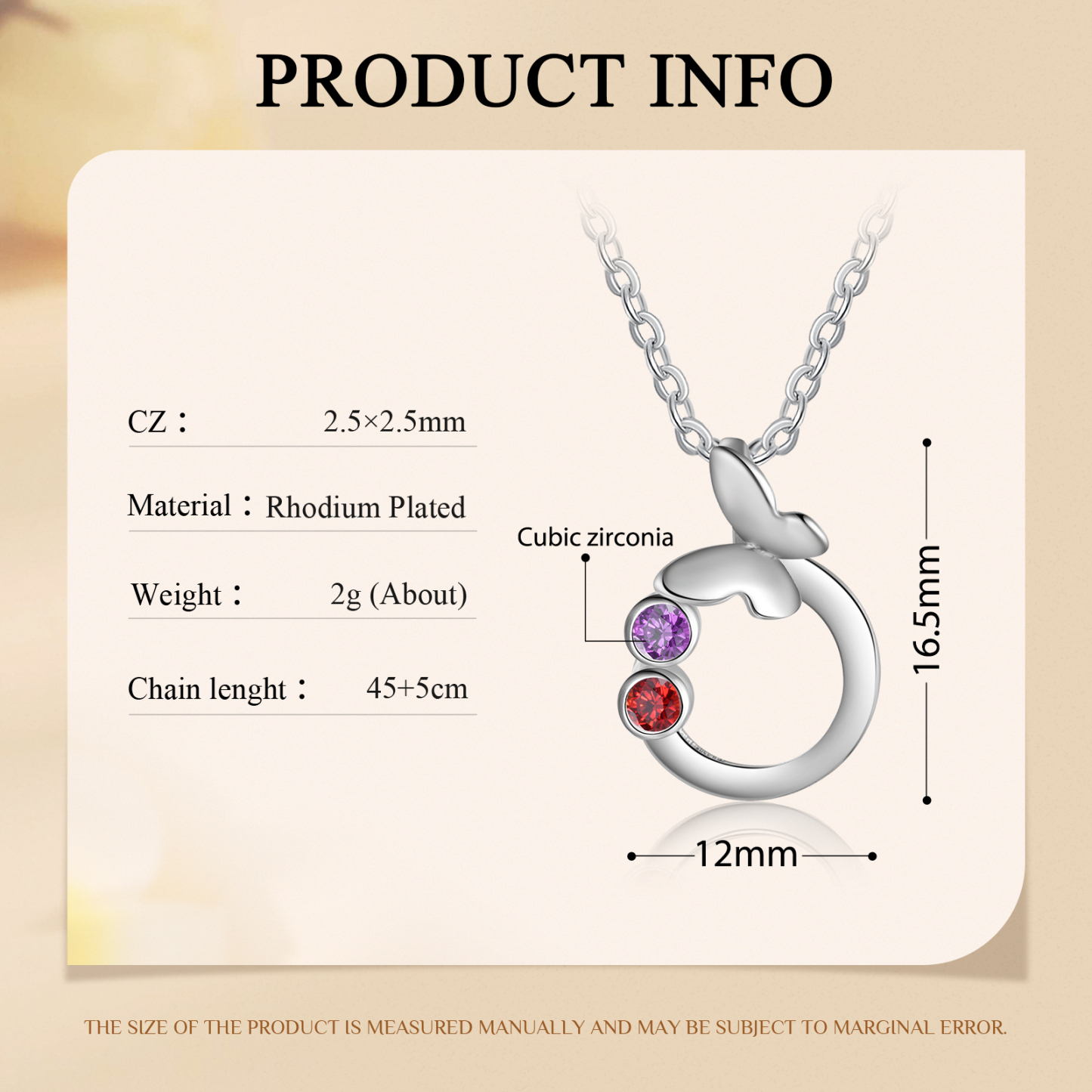 - Chain length: 45+5cm