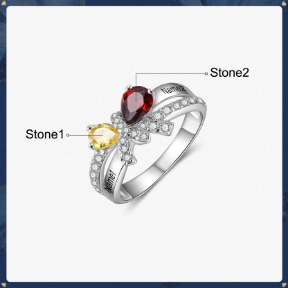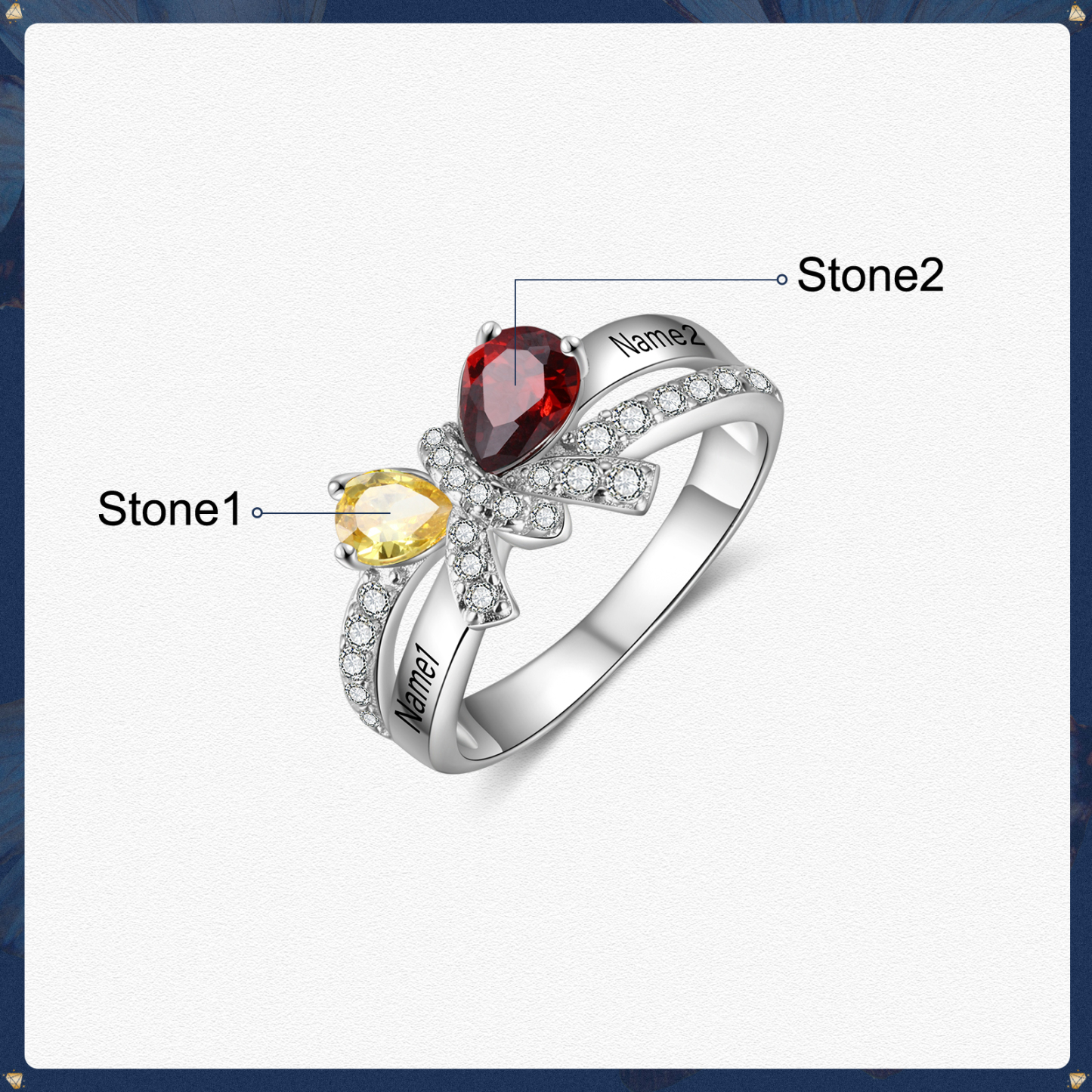 Personalized Butterfly Ring With 2 Birthstones Engraved Names Ring Gifts For Her