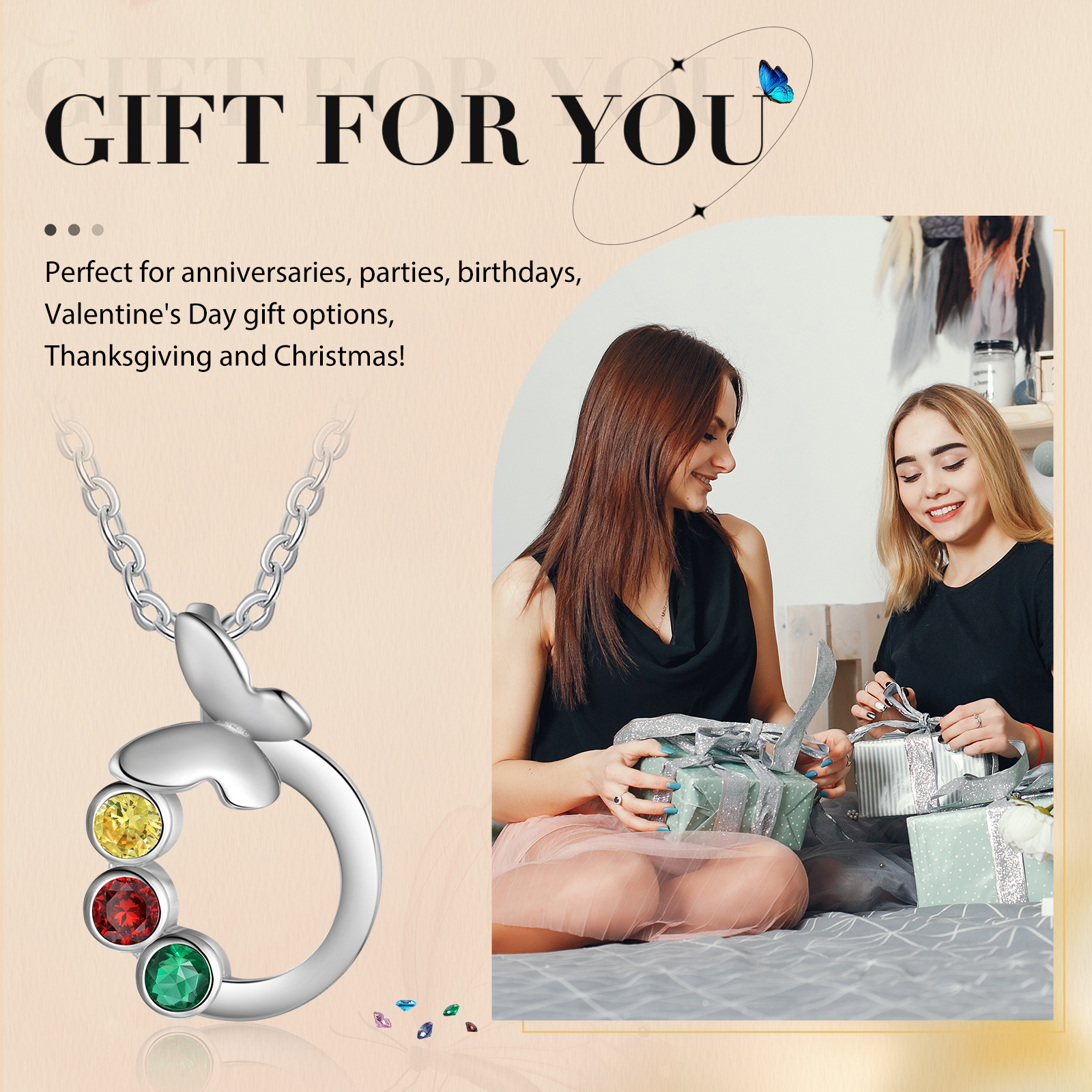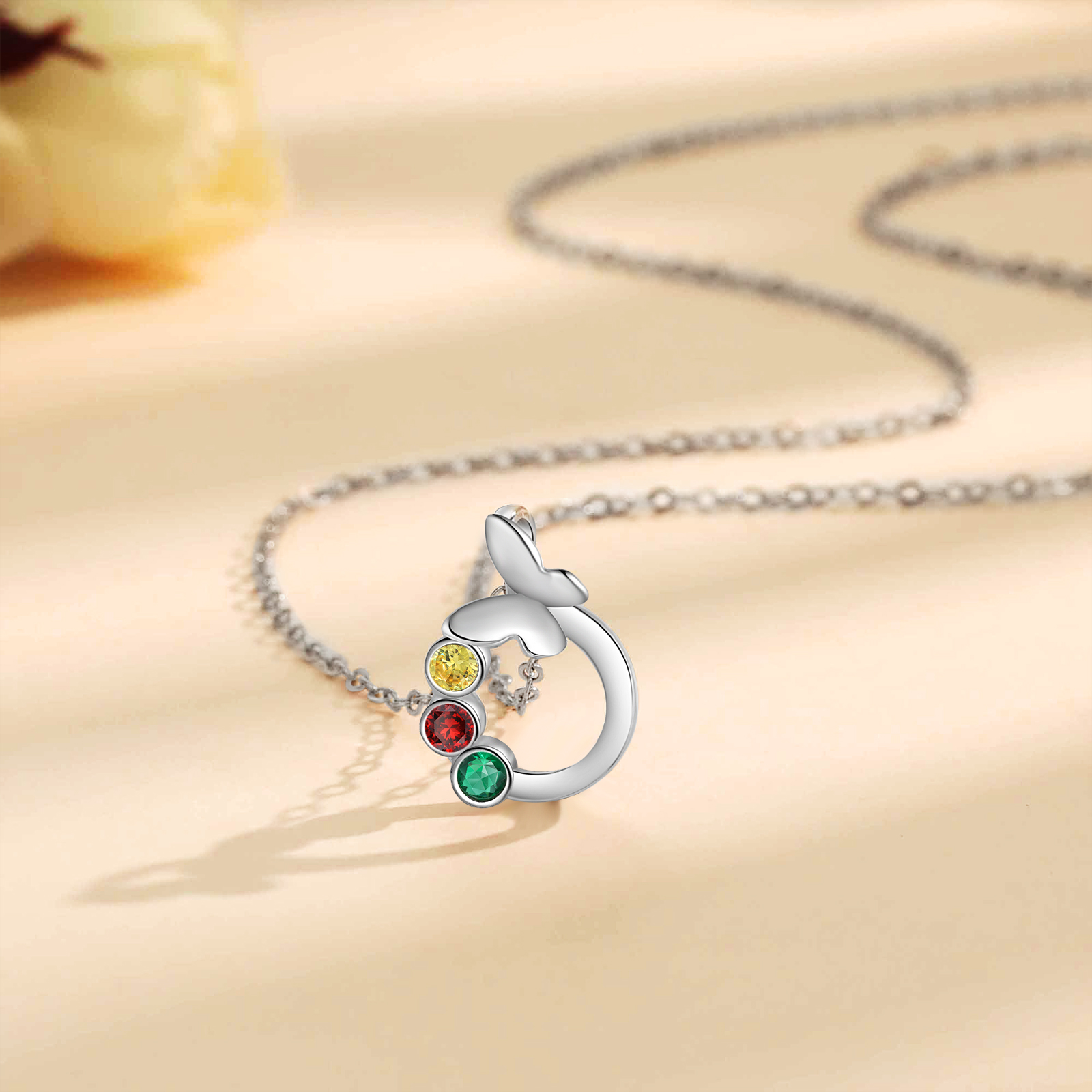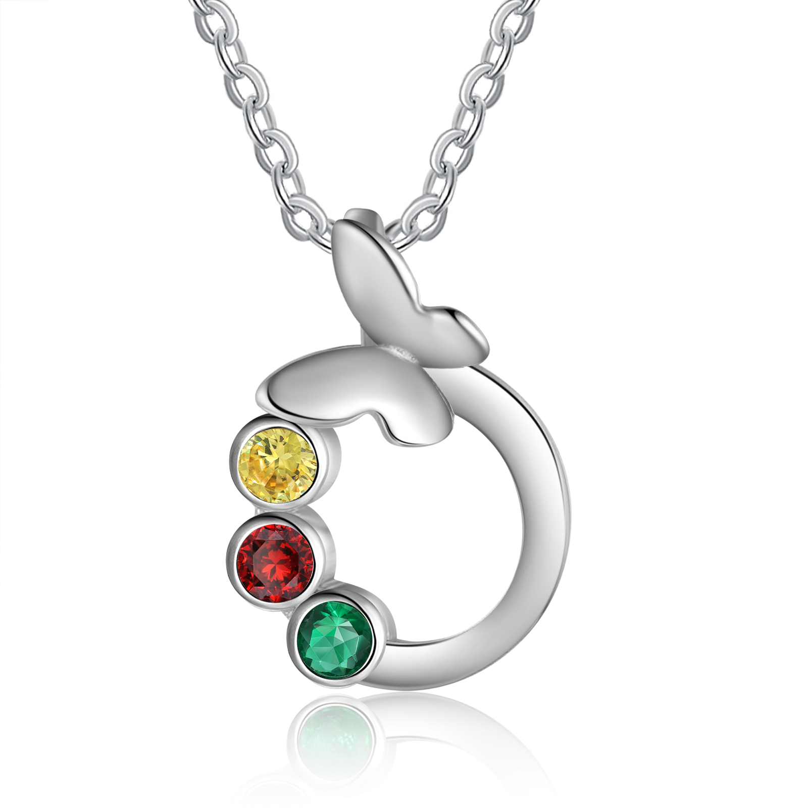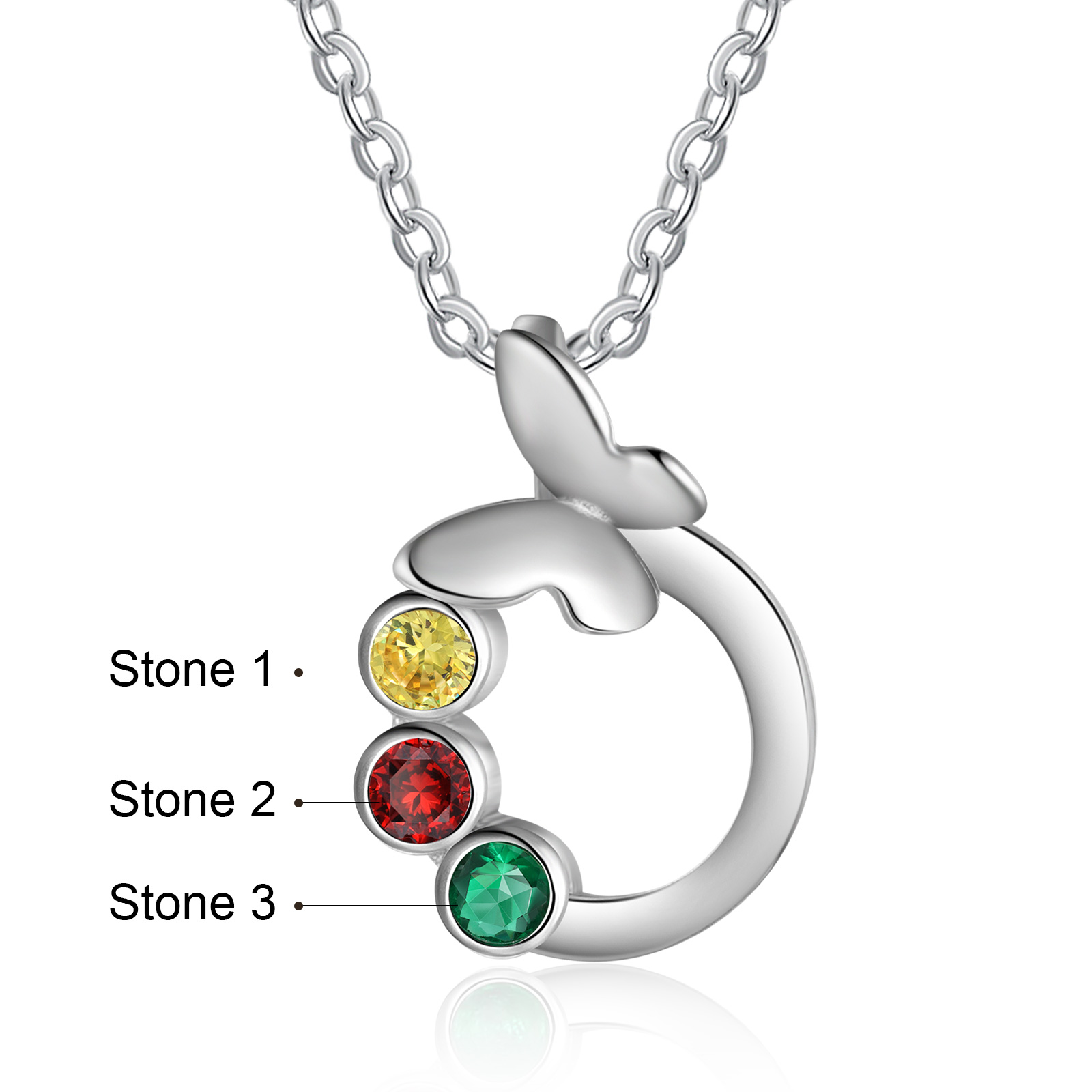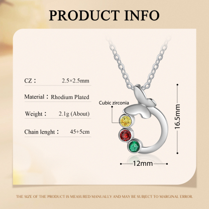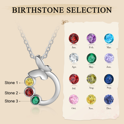 Personalized Butterfly Necklace With 3 Birthstones Engraved Gift For Women