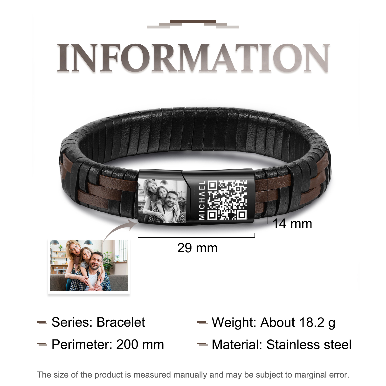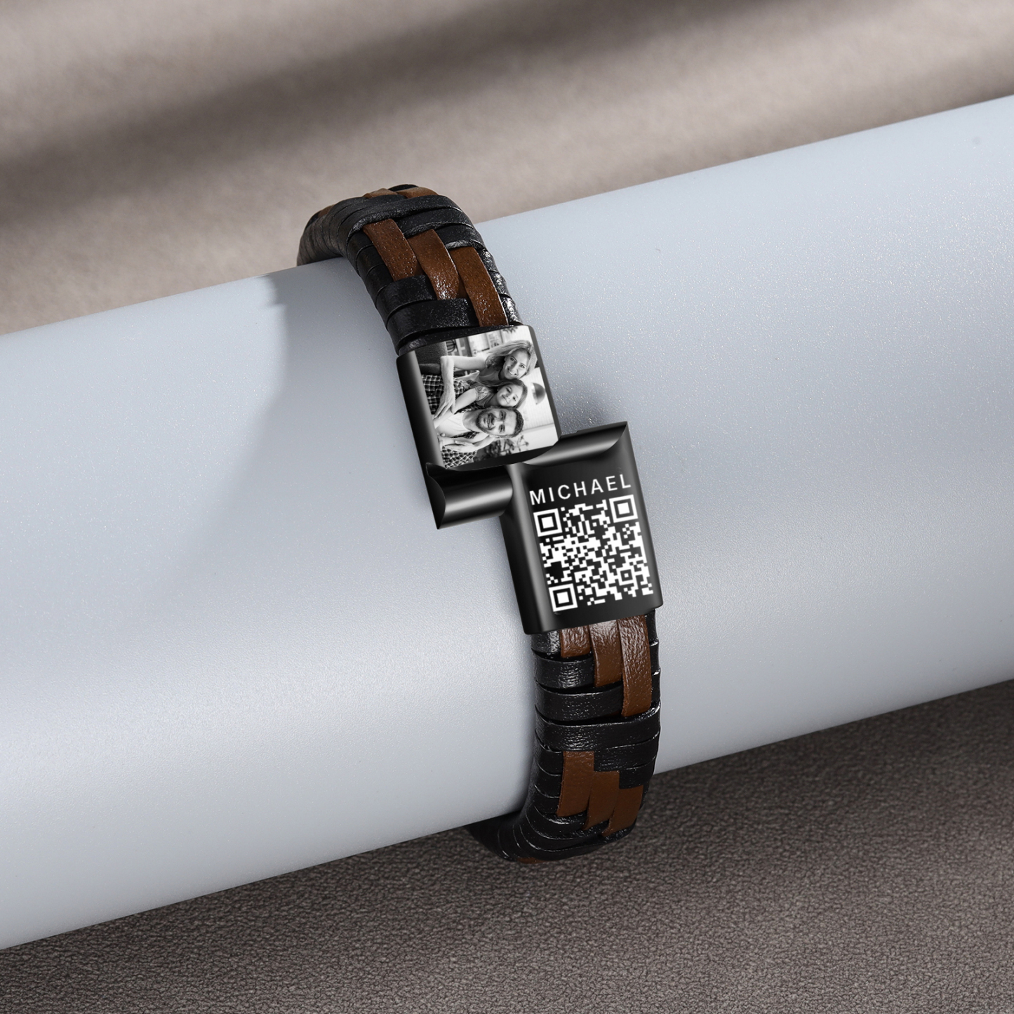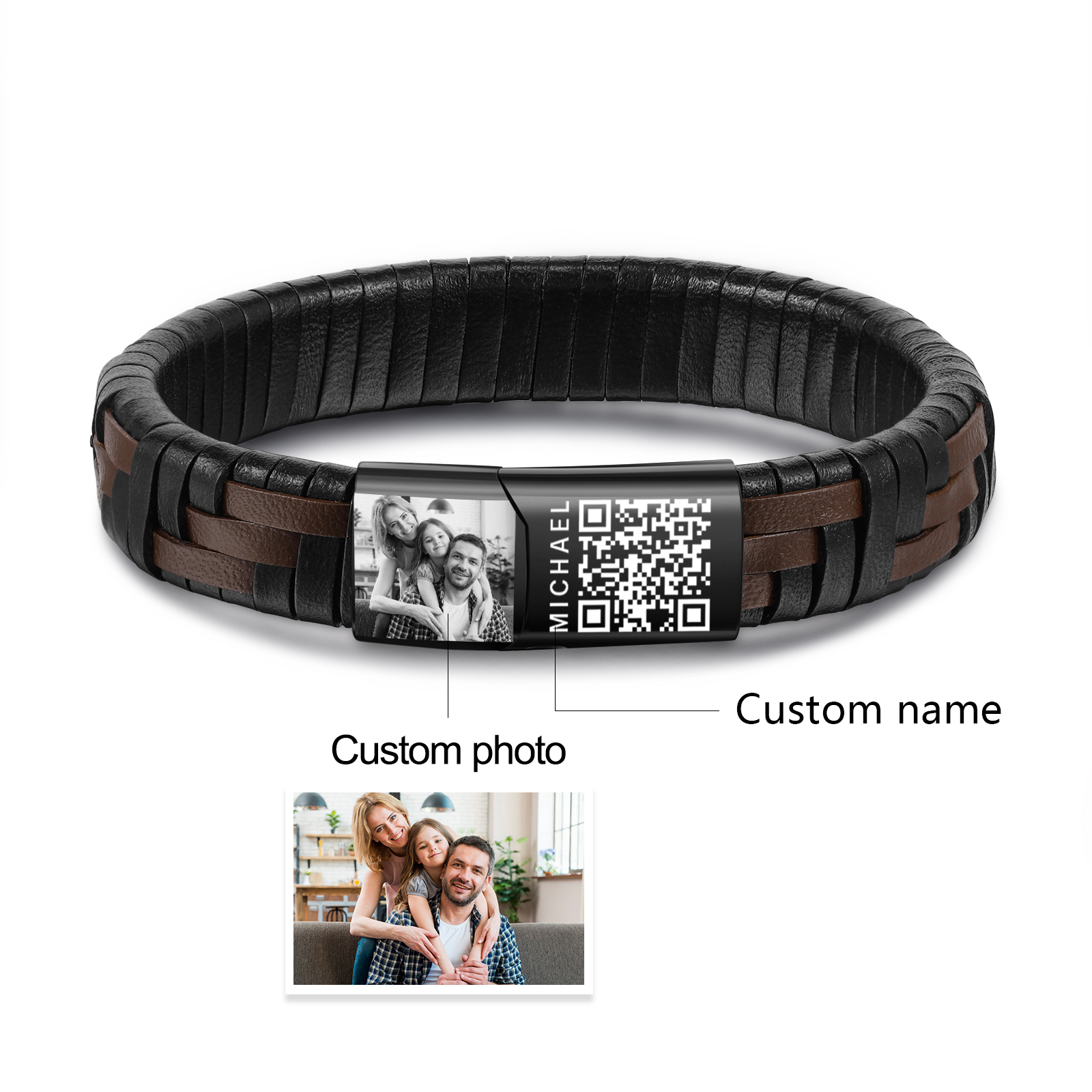 What sets our product apart is its customization option. The bracelet can be personalized with 1 photo and name, allowing you to make a truly one-of-a-kind piece. Whether it's a cherished family photo or the names of loved ones, this unique feature lets you keep meaningful memories close at hand. At the same time, there is a specific QR code on the bracelet. After scanning, the text can be edited for recording, which has special meaning.