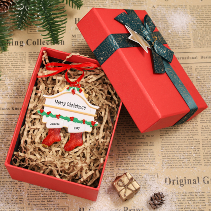 Personalized Family Gift Engraved 2 Names Red Stockings Christmas Ornament For Family