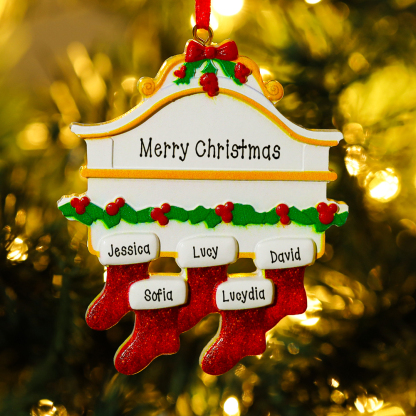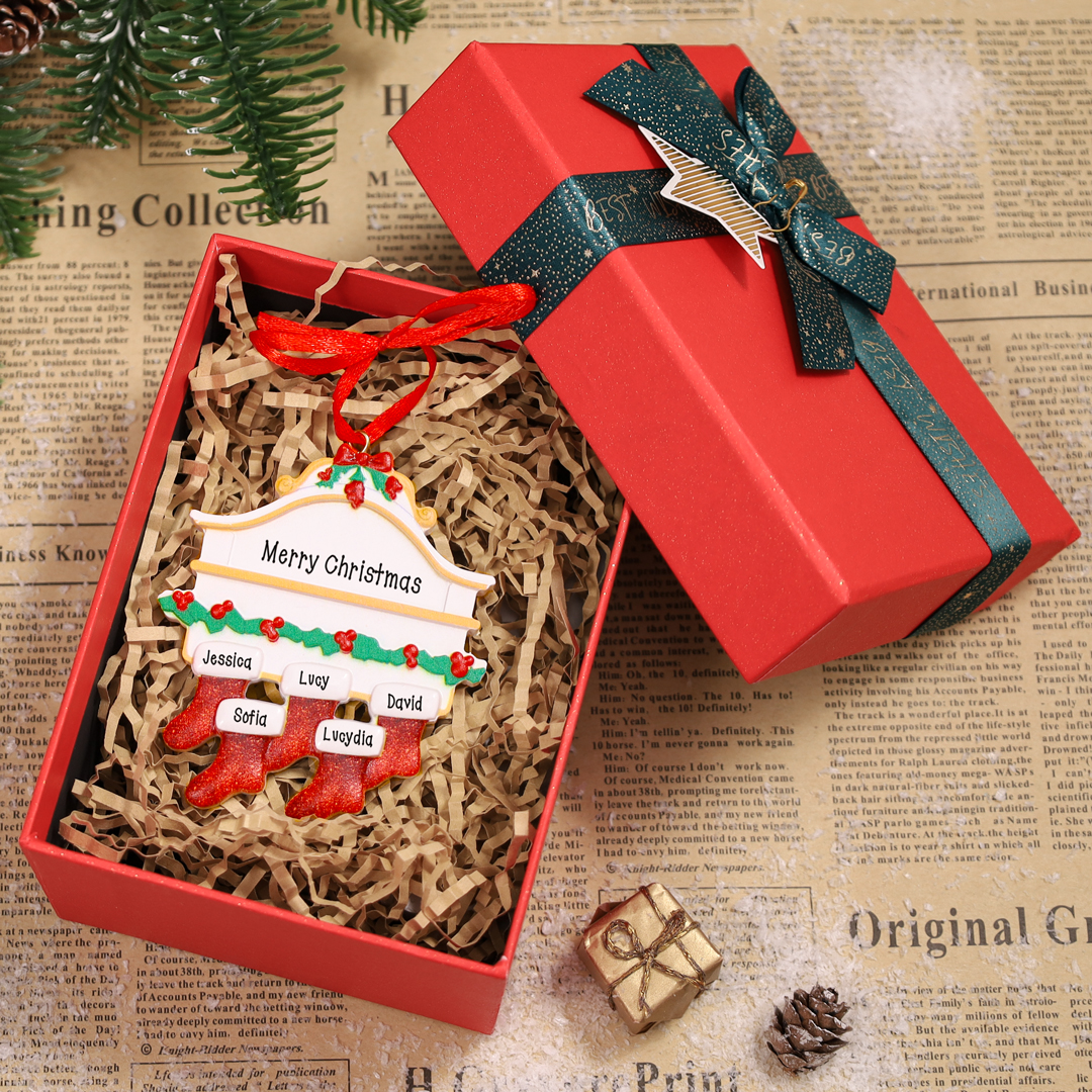 Personalized Family Gift Engraved 5 Names Red Stockings Christmas Ornament For Family