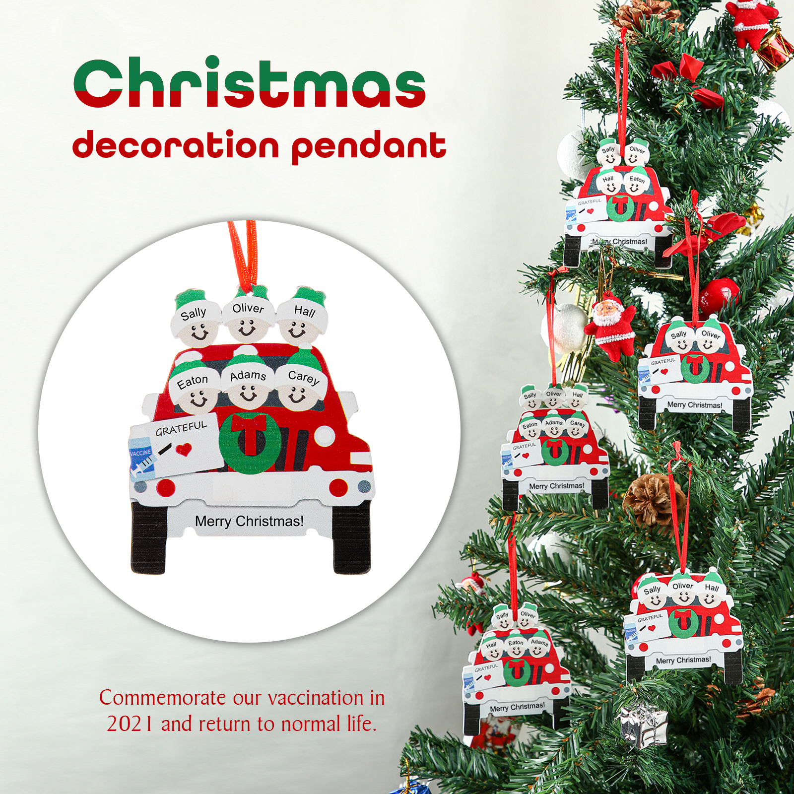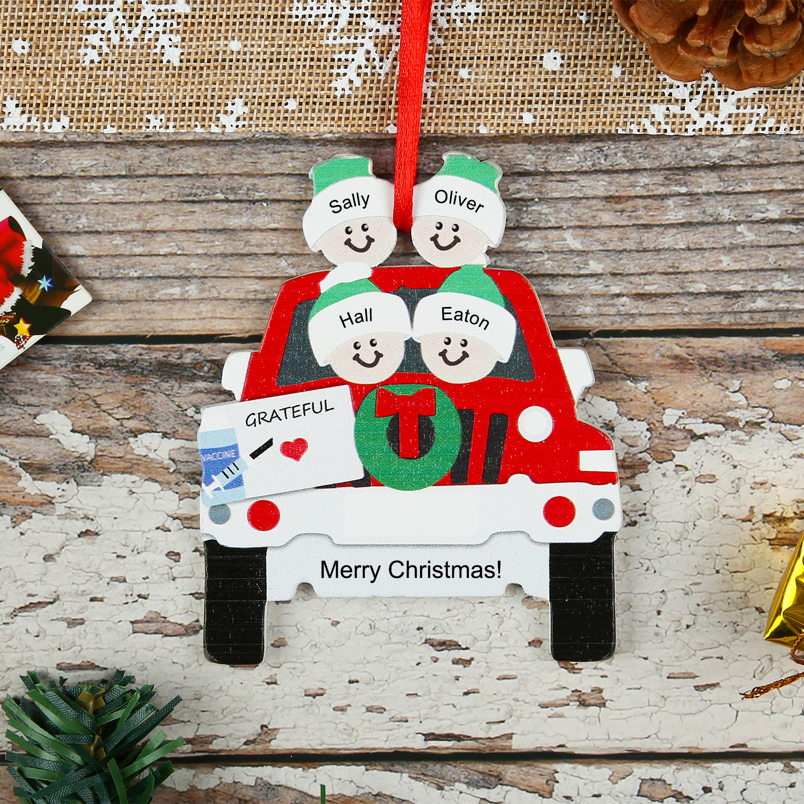 Personalized 6 Names Car Vaccined Christmas Ornament For Family