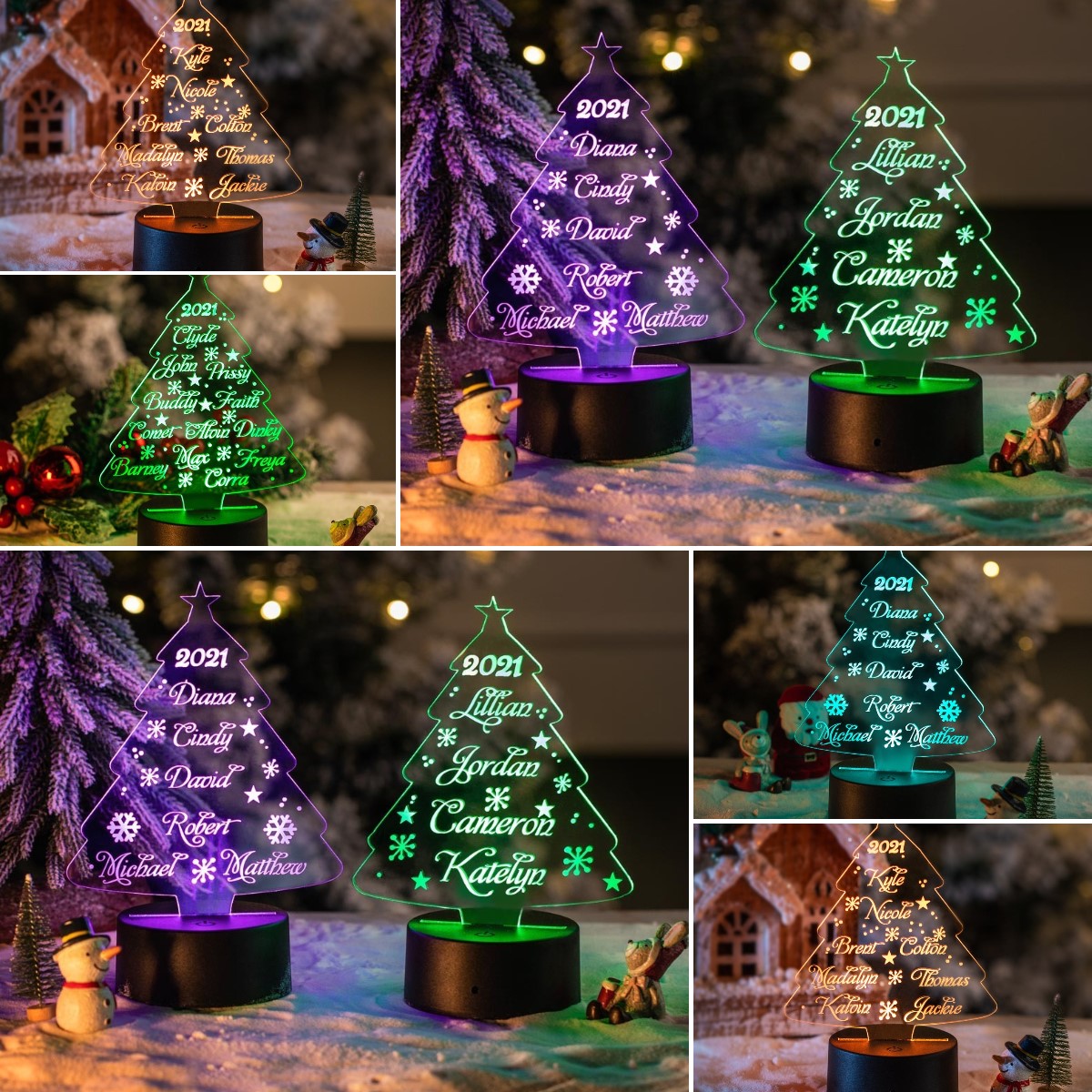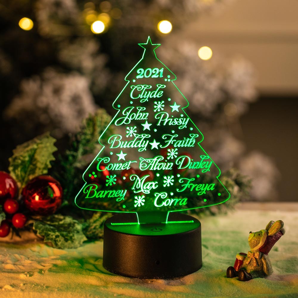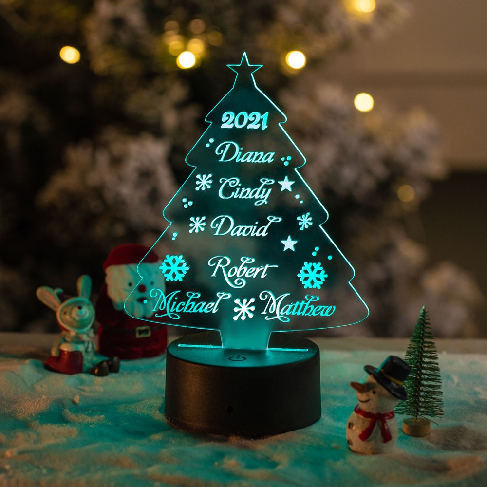 Personalized Christmas Tree Night Light Custom 3 Names Gifts For Kids
