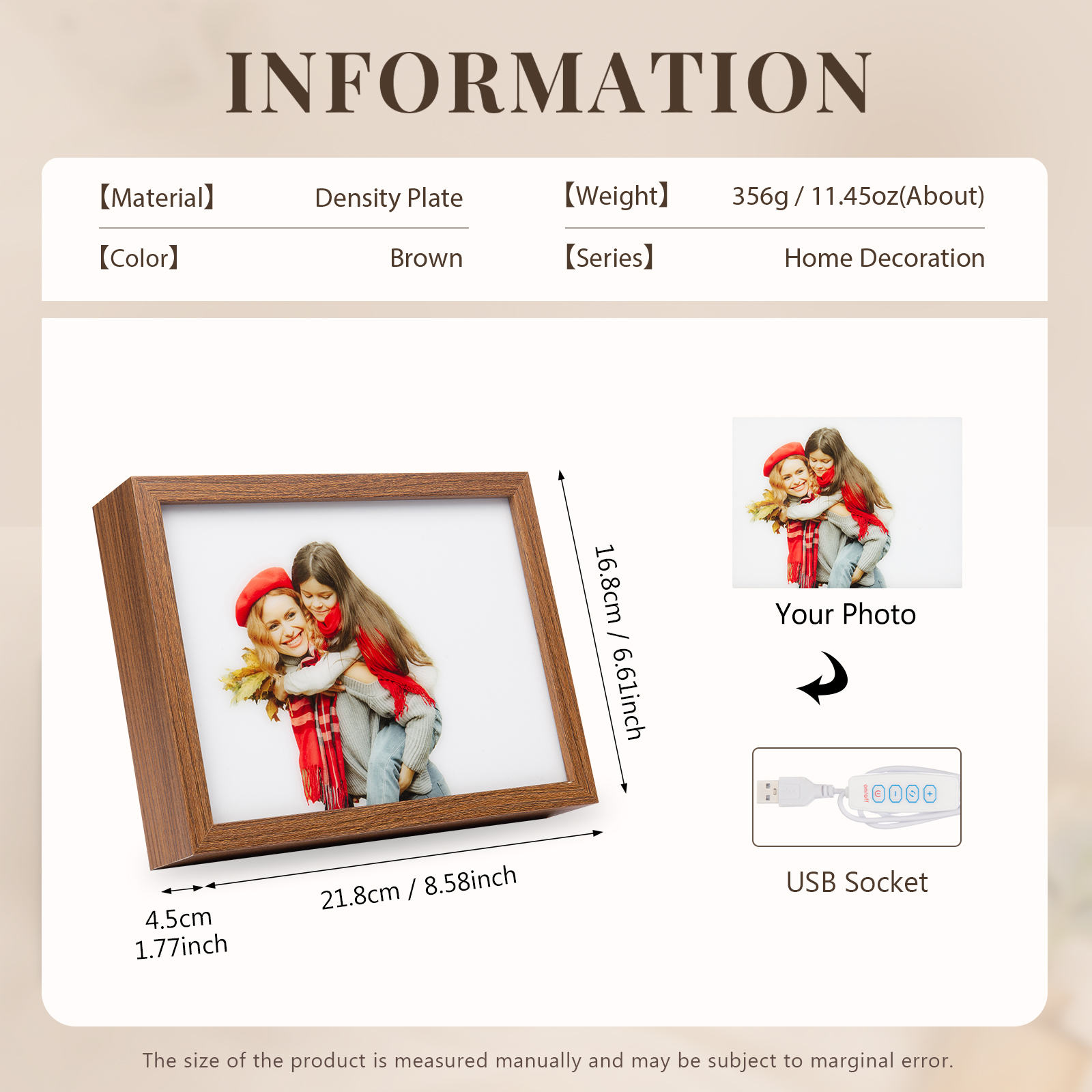 💡This photo frame is also equipped with LED lights, which is a good night light for adjusting the atmosphere at night. The light is soft and not dazzling.