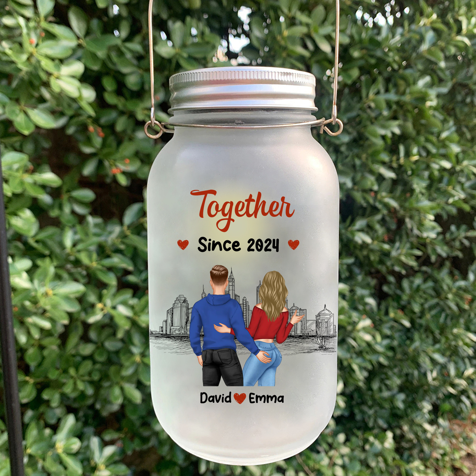 Keywords: personalized couple jar, custom anniversary lantern, romantic gift for him, romantic gift for her, Together Since jar, Forever Yours gift, personalised home décor, LED mason jar light, engagement gift, wedding keepsake