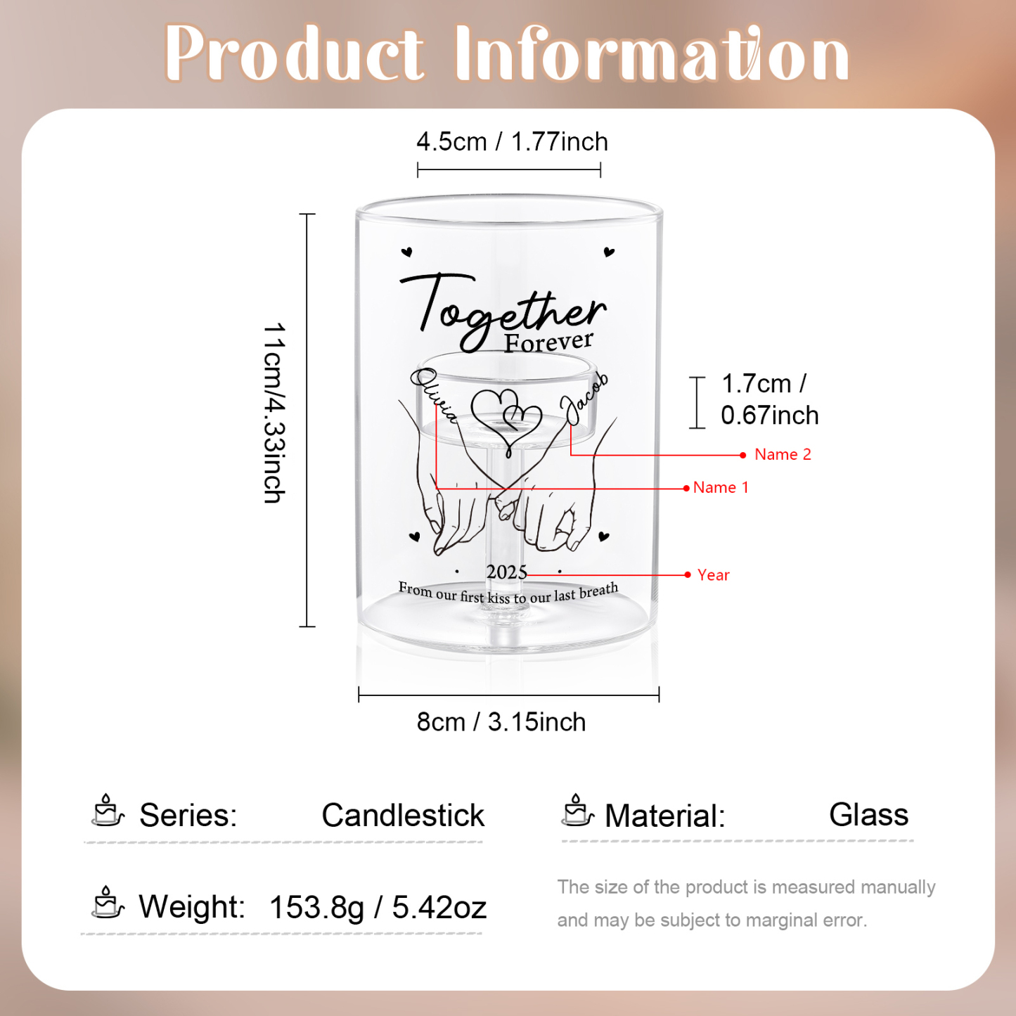 Keywords: personalized candle holder, custom name tealight holder, romantic couple gift, anniversary gift for her, gift for him, engraved glass candle holder, sentimental keepsake, Valentine’s Day present, wedding gift, romantic Christmas décor
