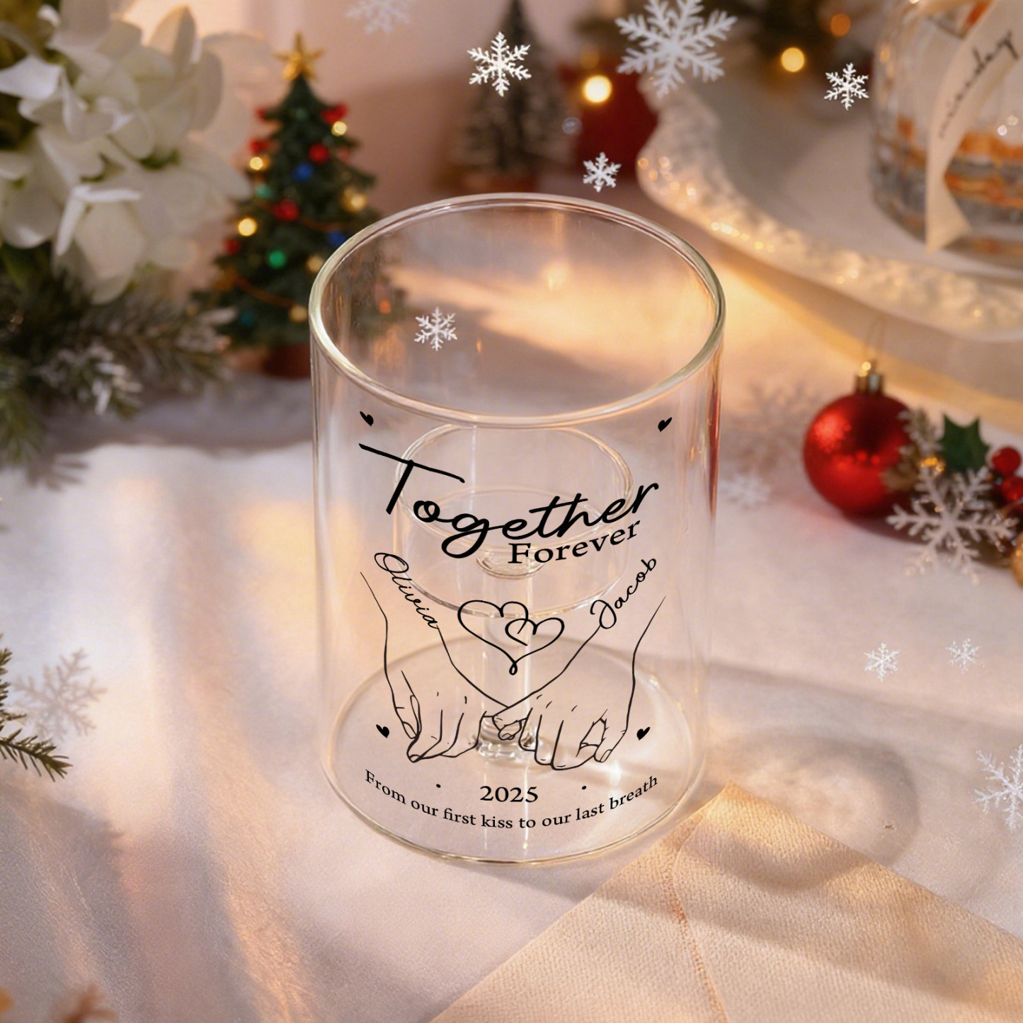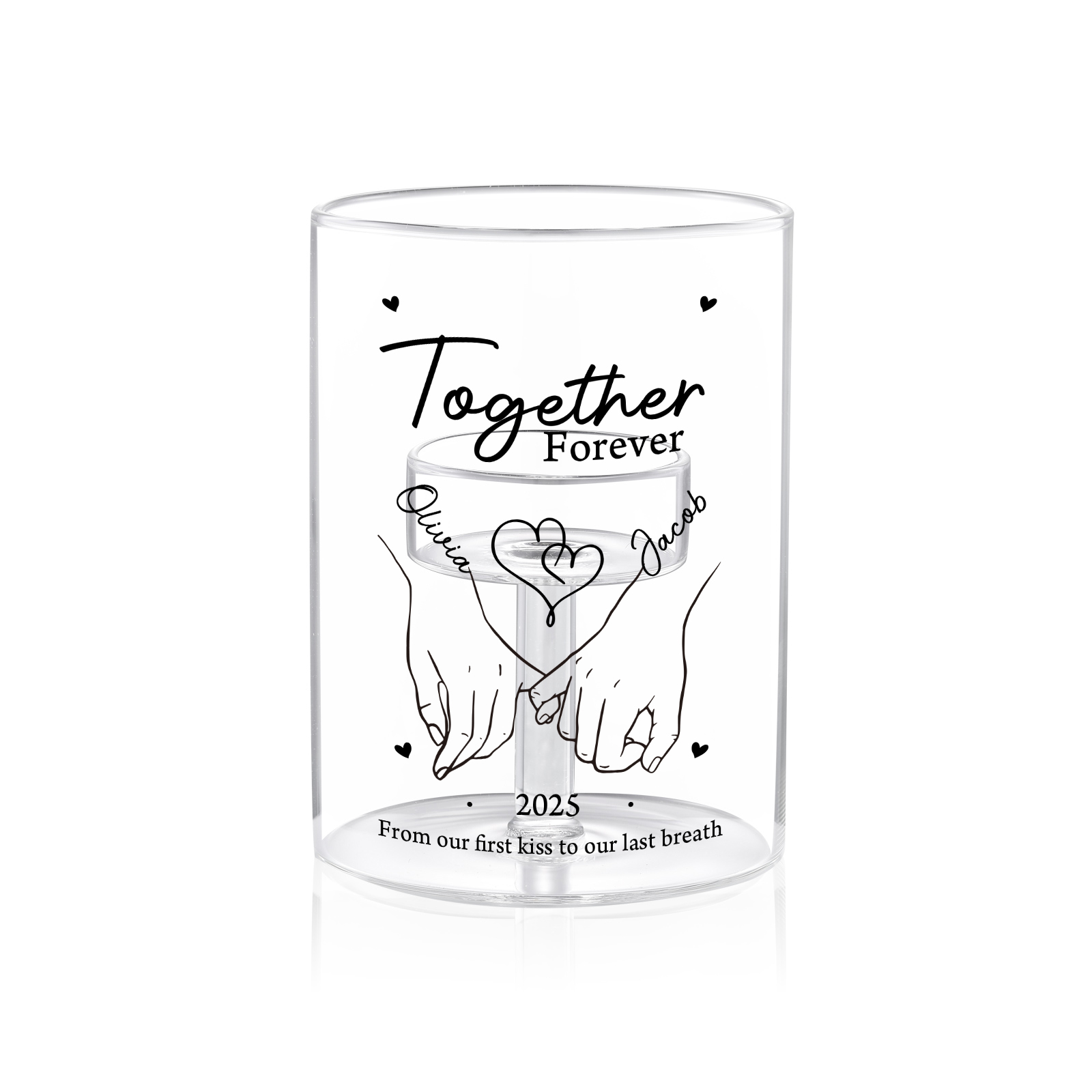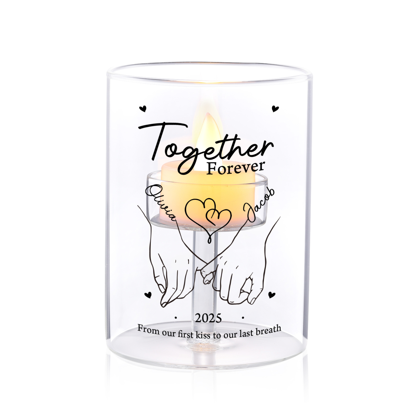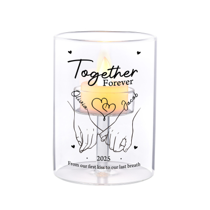 Give a heartfelt and useful gift with this personalized glass candle holder—made for couples who want to celebrate their story. Add two names and a special year beneath the “Together Forever” motif to create a romantic keepsake that lights up any room.