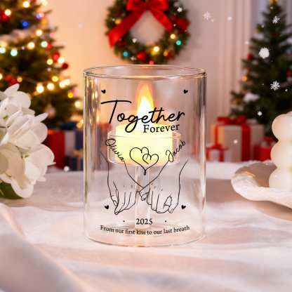 Personalized Couple Hand-in-Hand Glass Candle Holder