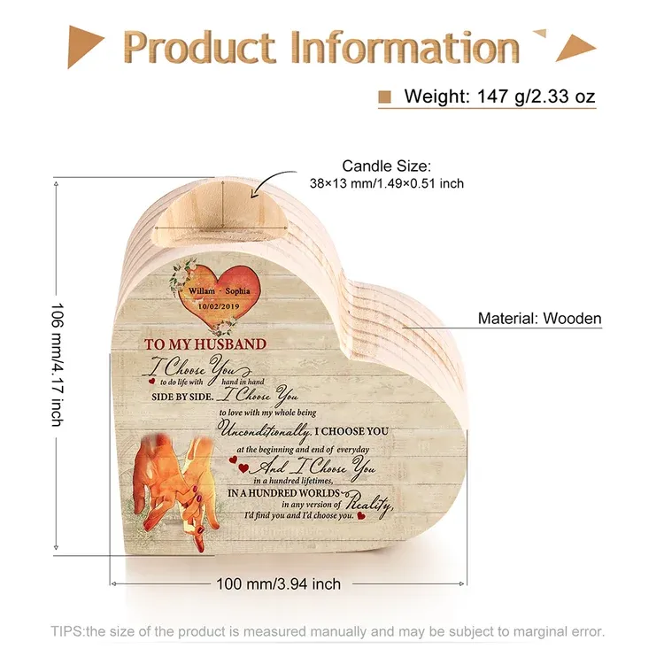 Personalized Couple Heart Candle Holder "I choose you to do life with side by side"Wooden Candlesticks Valentines Gift