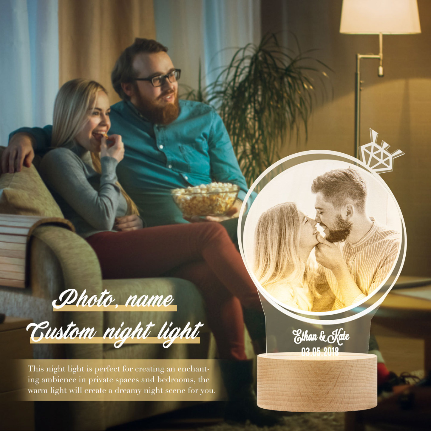 -Add your names and photo to the night light that creates a unique bedside companion for your loved ones that will proudly grace their bedside for many years to come!