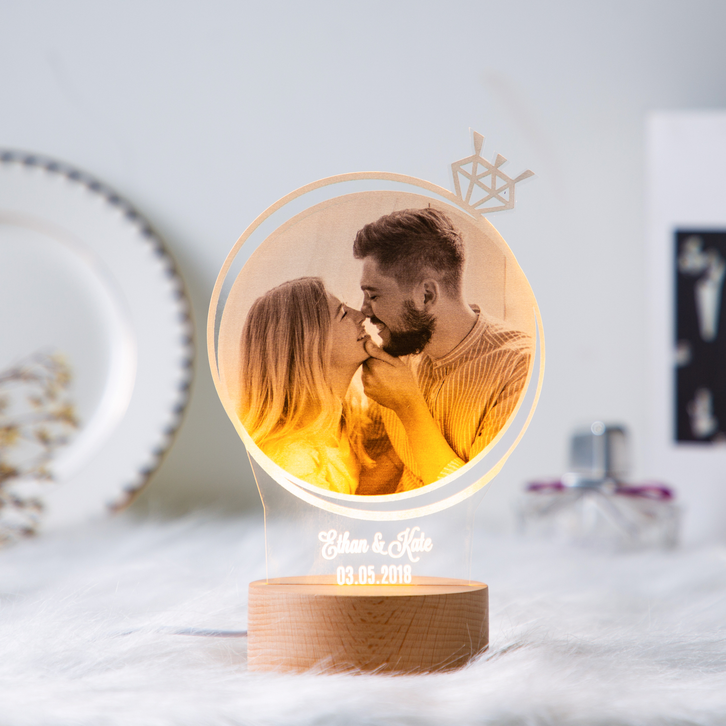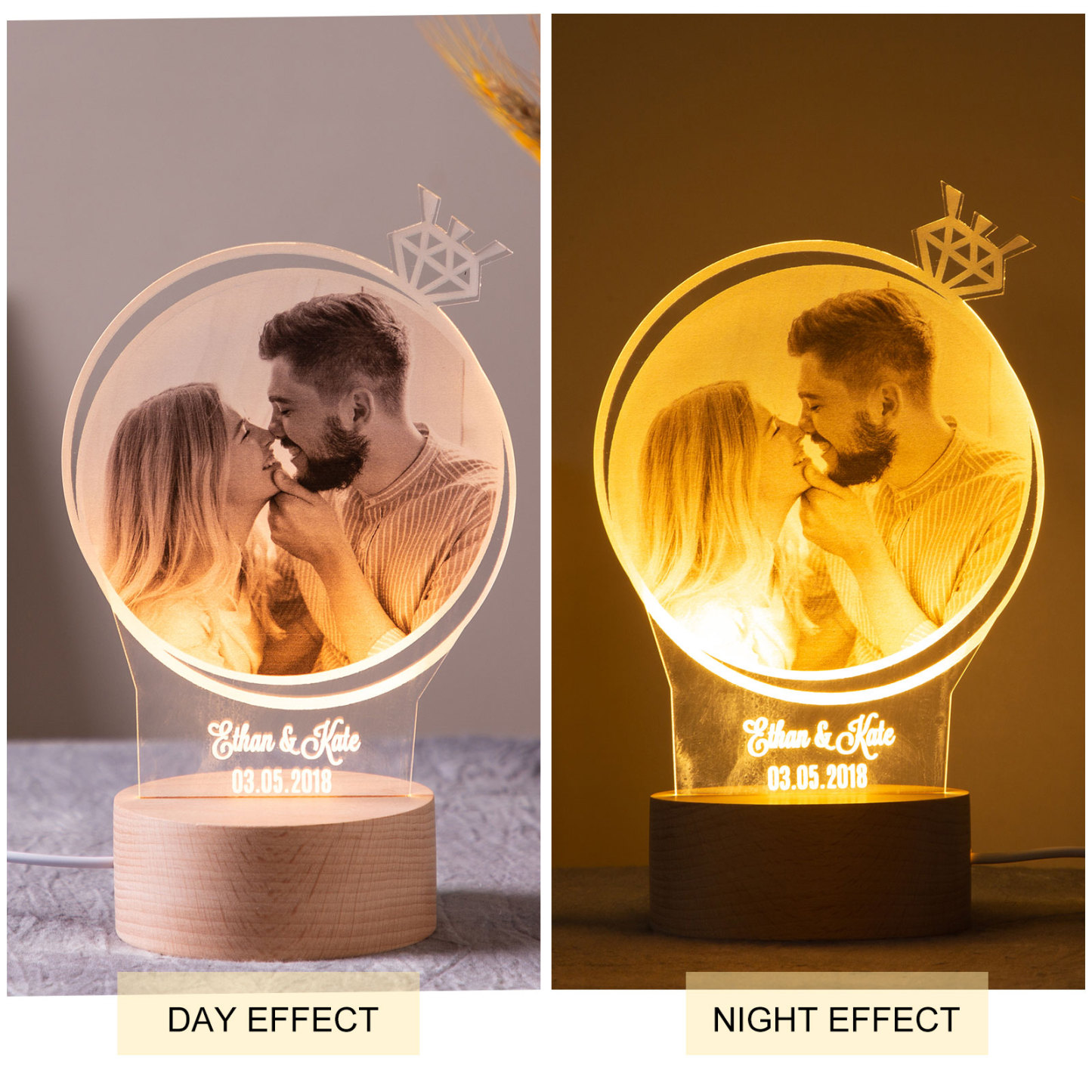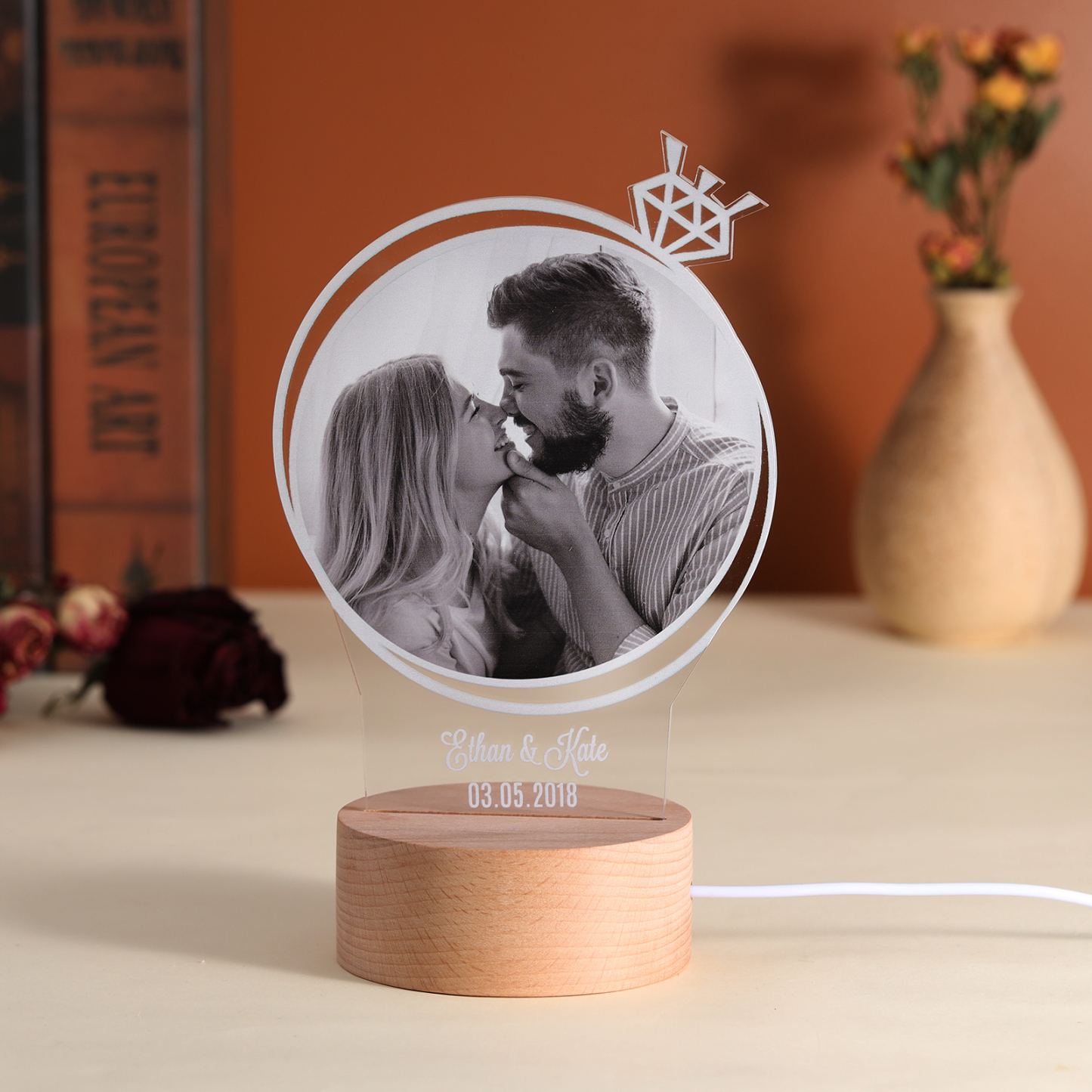 Personalized Couple Name Acrylic Night Light, Custom Photo And Date Lamp Christmas Gifts