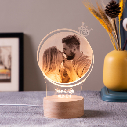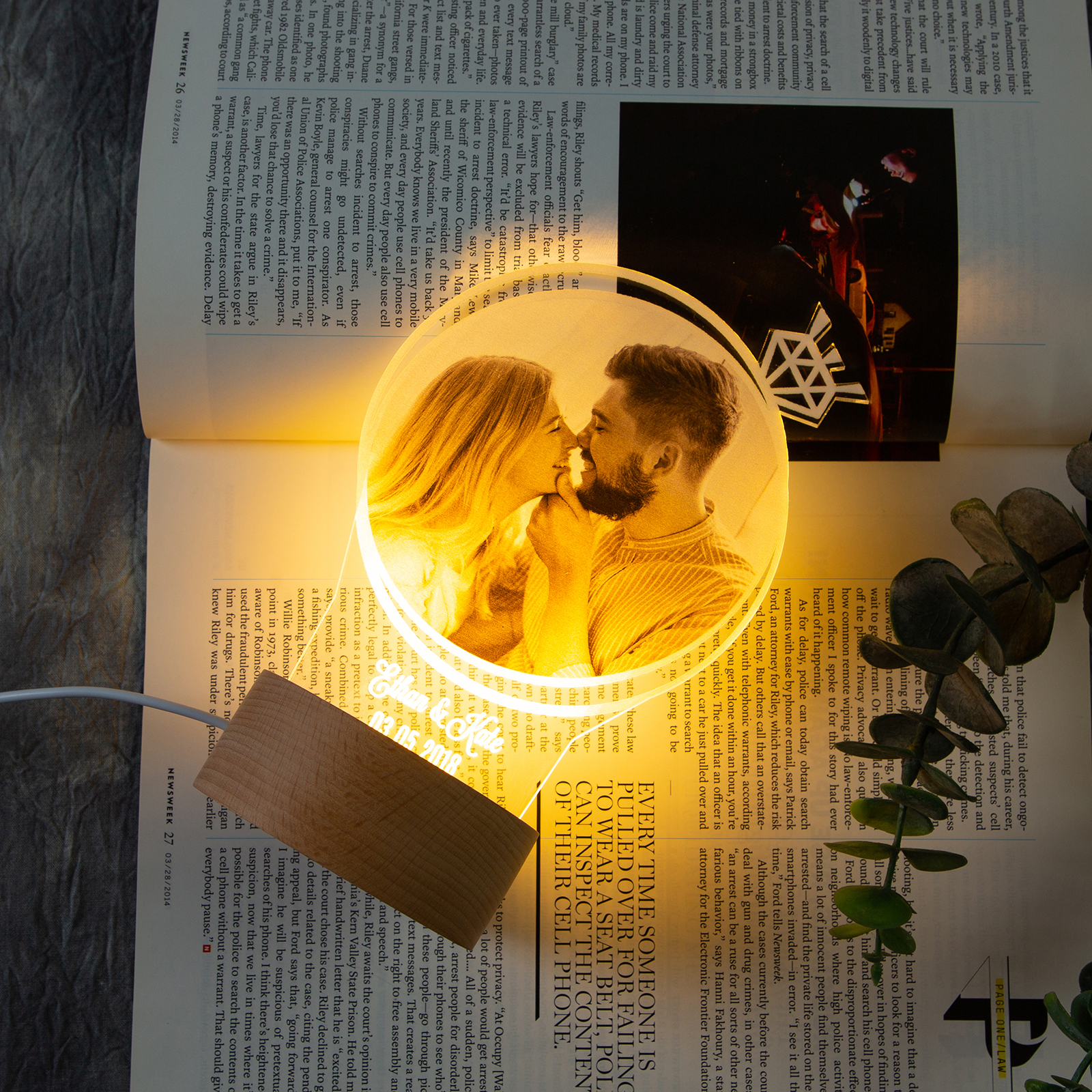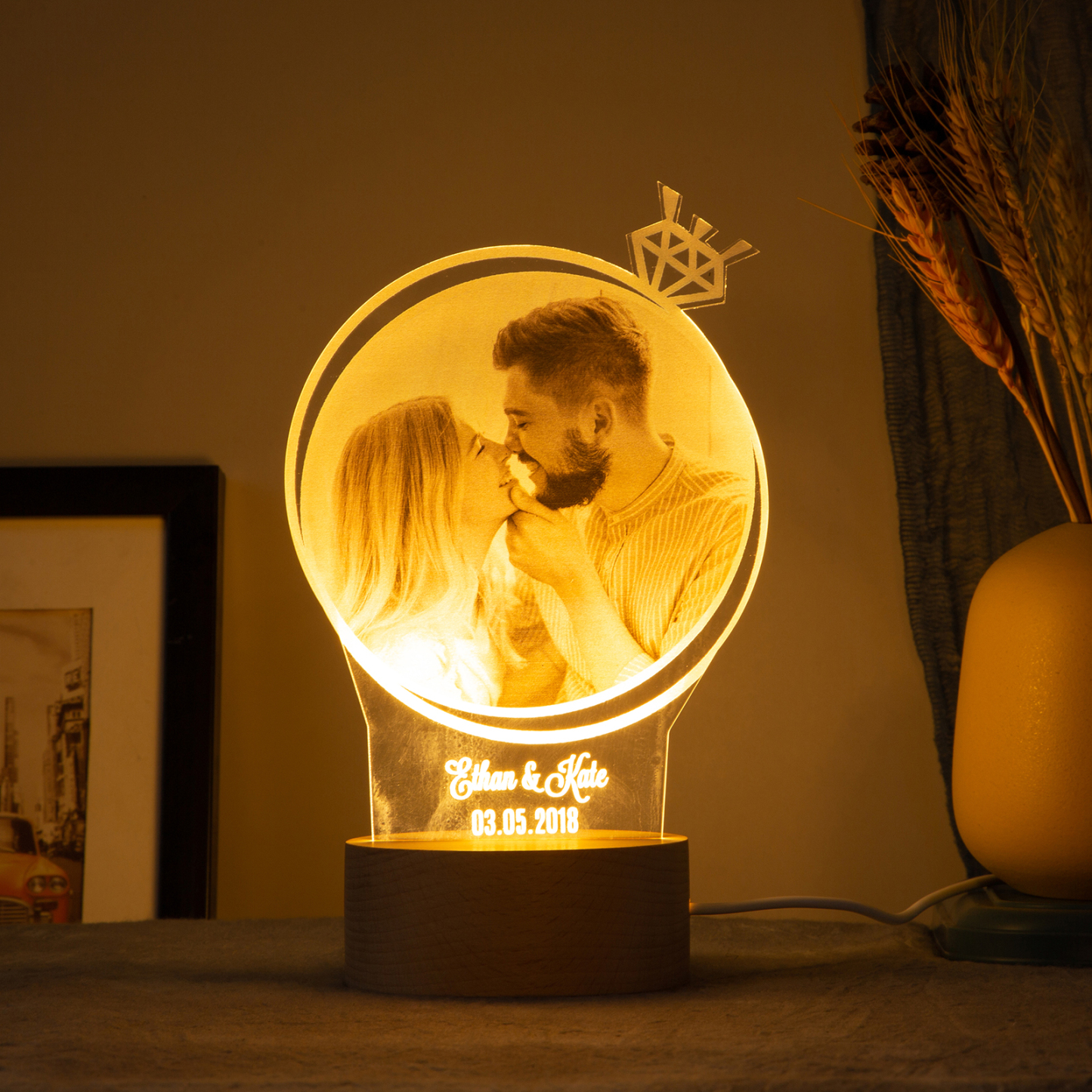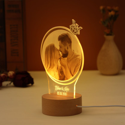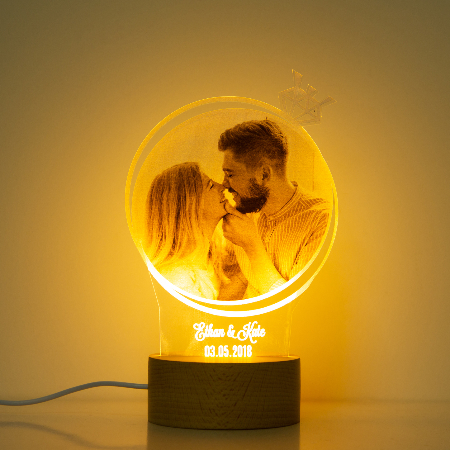 Personalized Couple Name Acrylic Night Light, Custom Photo And Date Lamp Christmas Gifts
