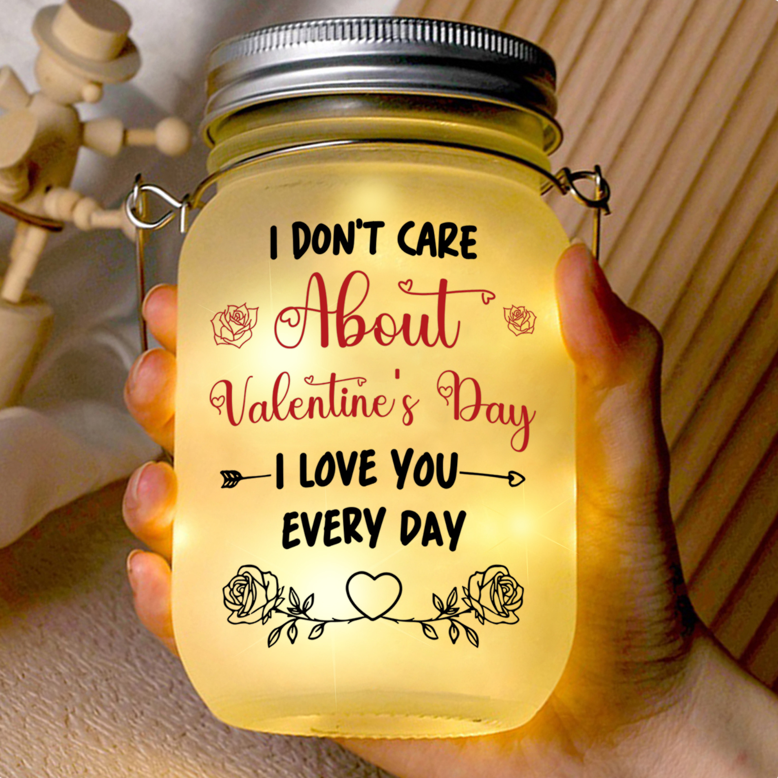 - Material: Glass jar, metal lid, LED lights