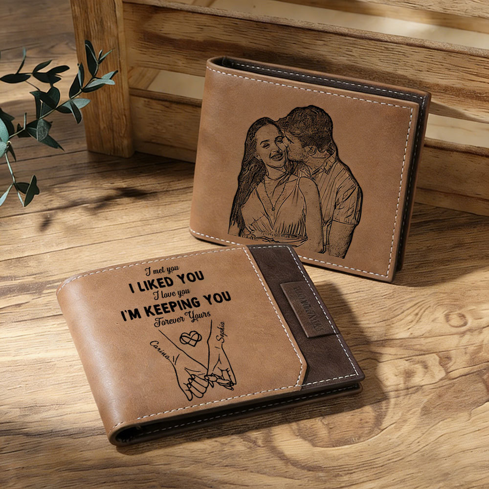 Keywords: personalized men’s wallet, custom photo wallet, gift for boyfriend, romantic gift for husband, engraved name wallet, anniversary present for him, sentimental everyday wallet, couple keepsake gift