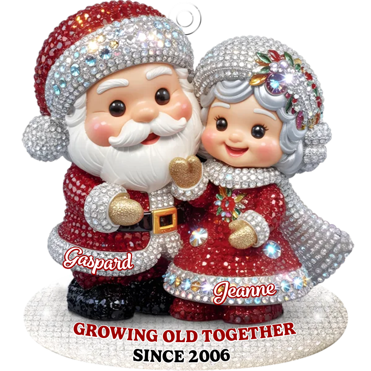 Keywords: personalized Christmas ornament, custom couple ornament, Growing Old Together gift, anniversary Christmas gift, gift for parents, gift for grandparents, keepsake tree decoration, Santa couple ornament