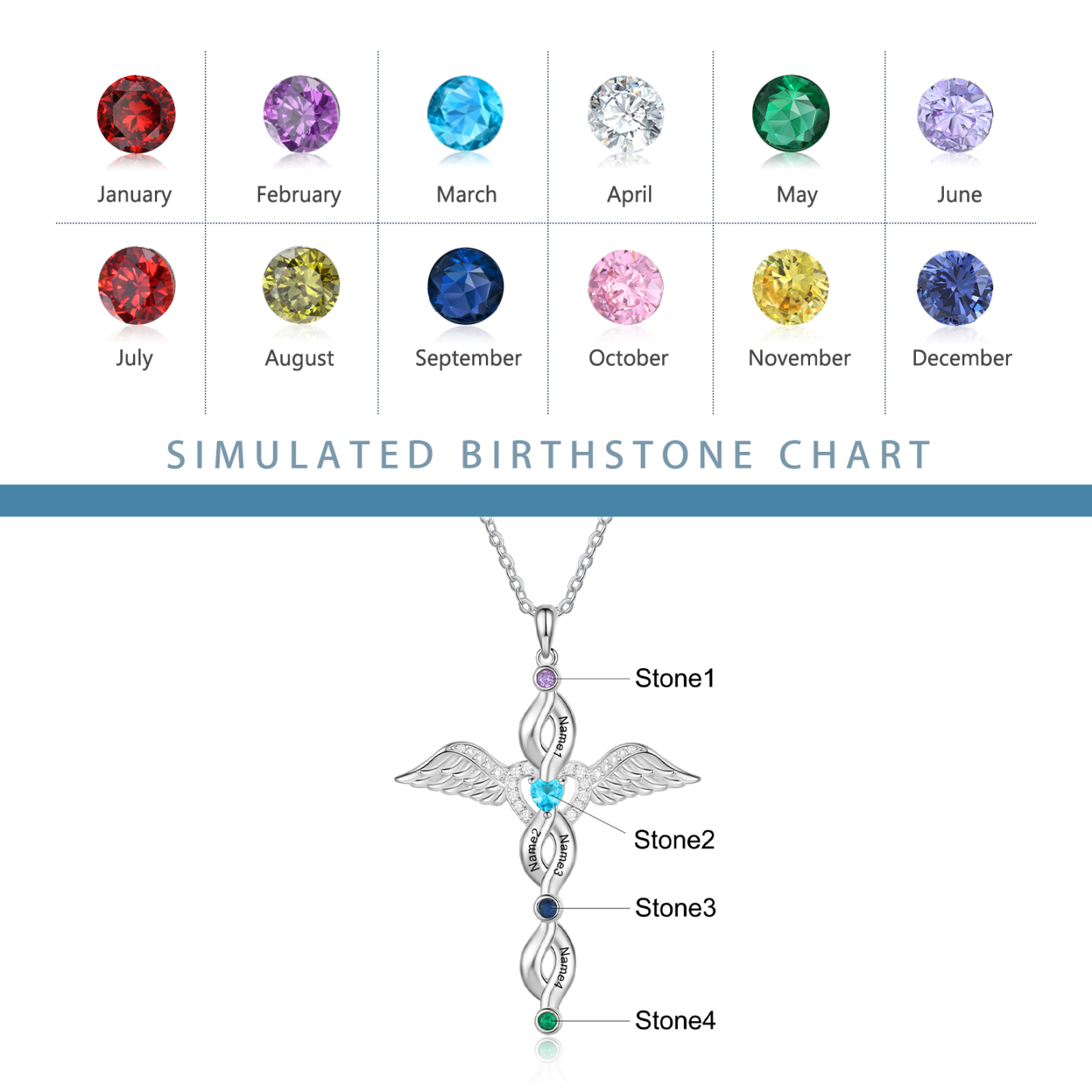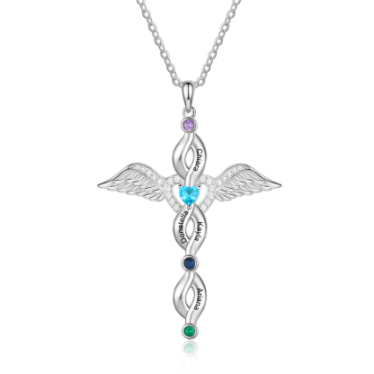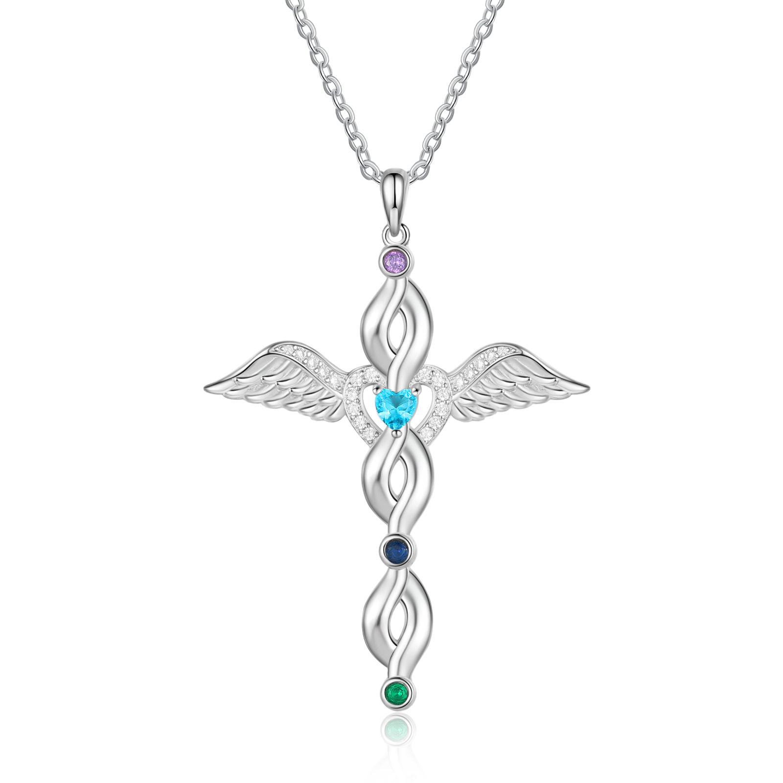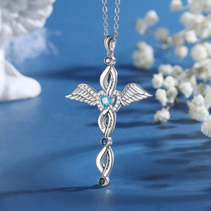 Personalized Cross Necklace With Names Custom 4 Birthstones Wings Necklace Gifts for Her