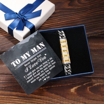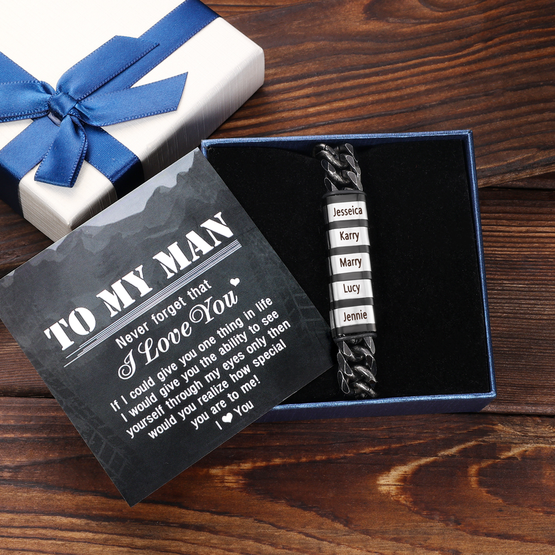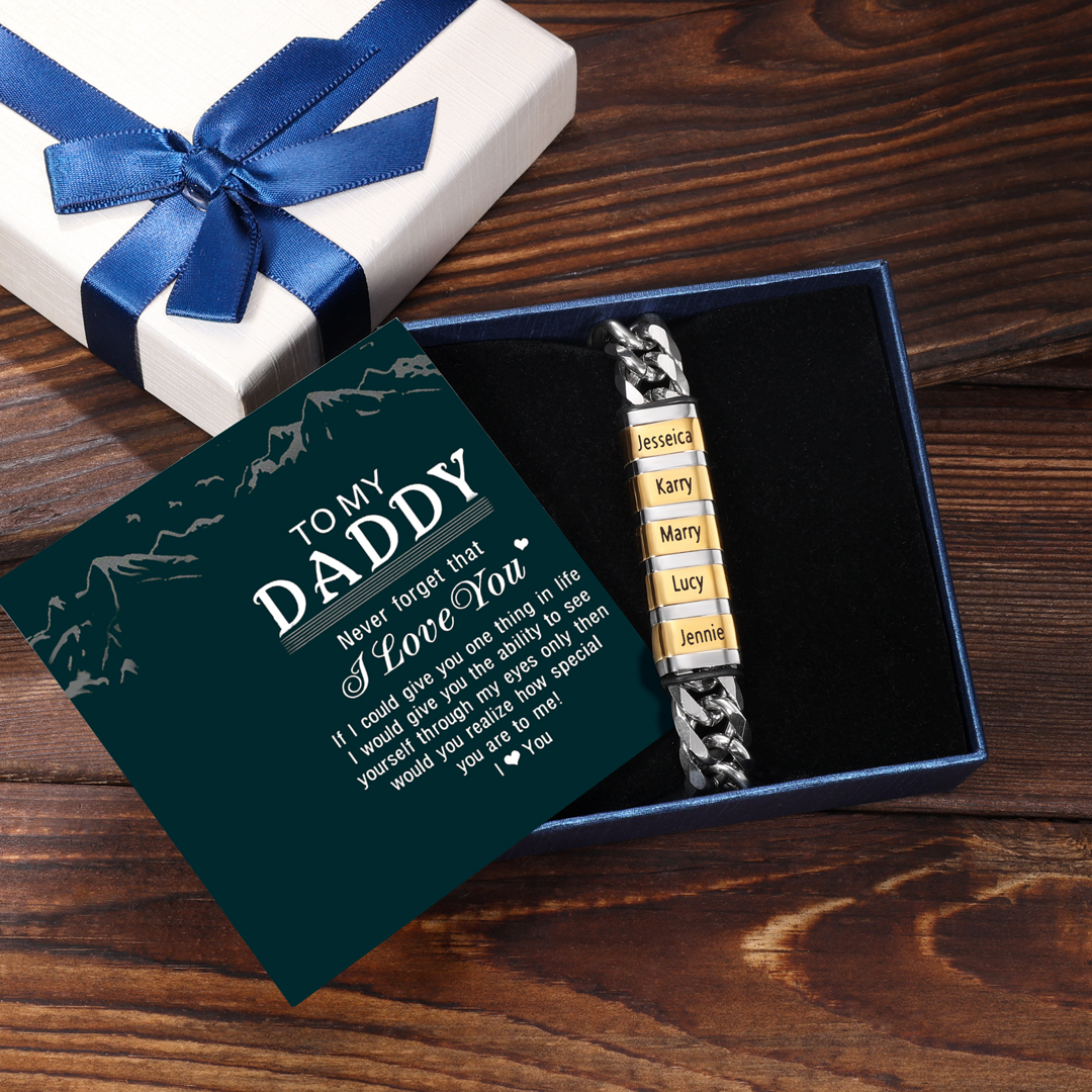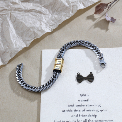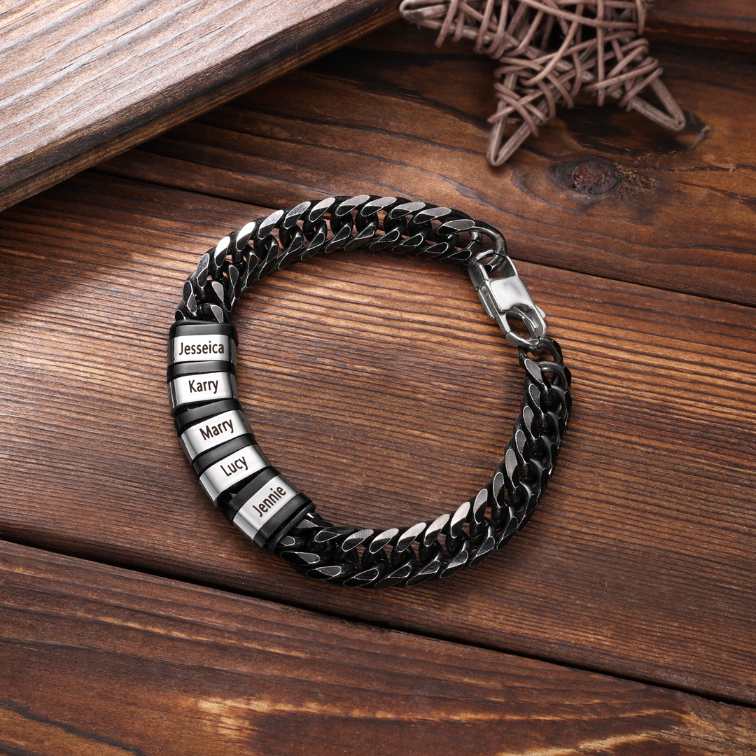 This bracelet can be customized with up to 6 names. Family members' names can be engraved on the bracelet and their names will be placed close to the recipient's wrist, giving the recipient the warmest feeling of love.