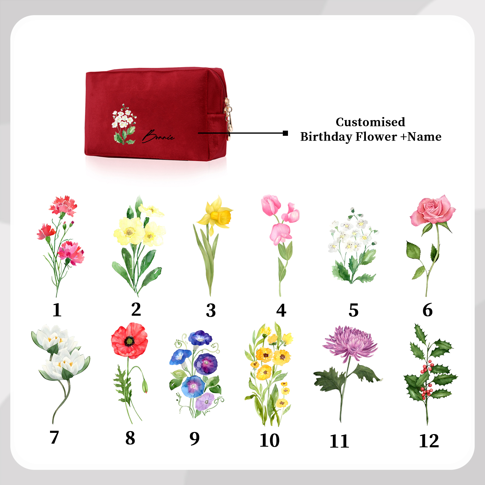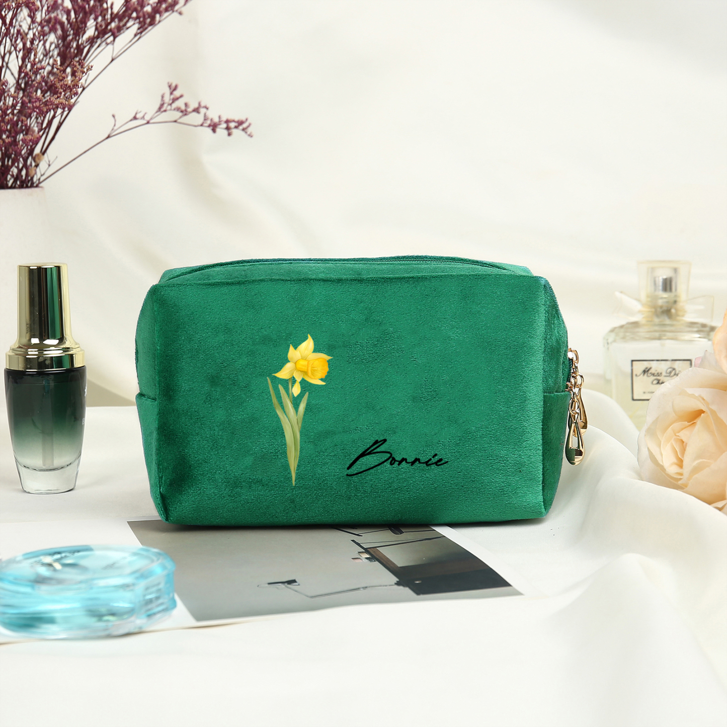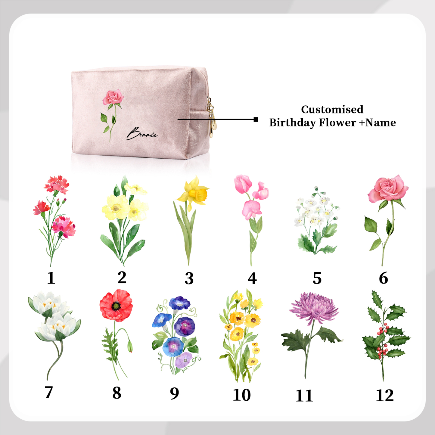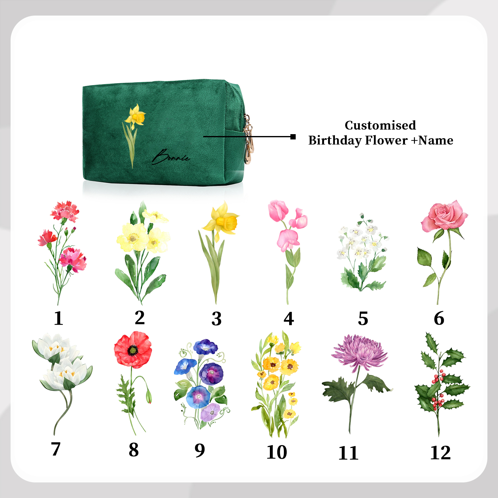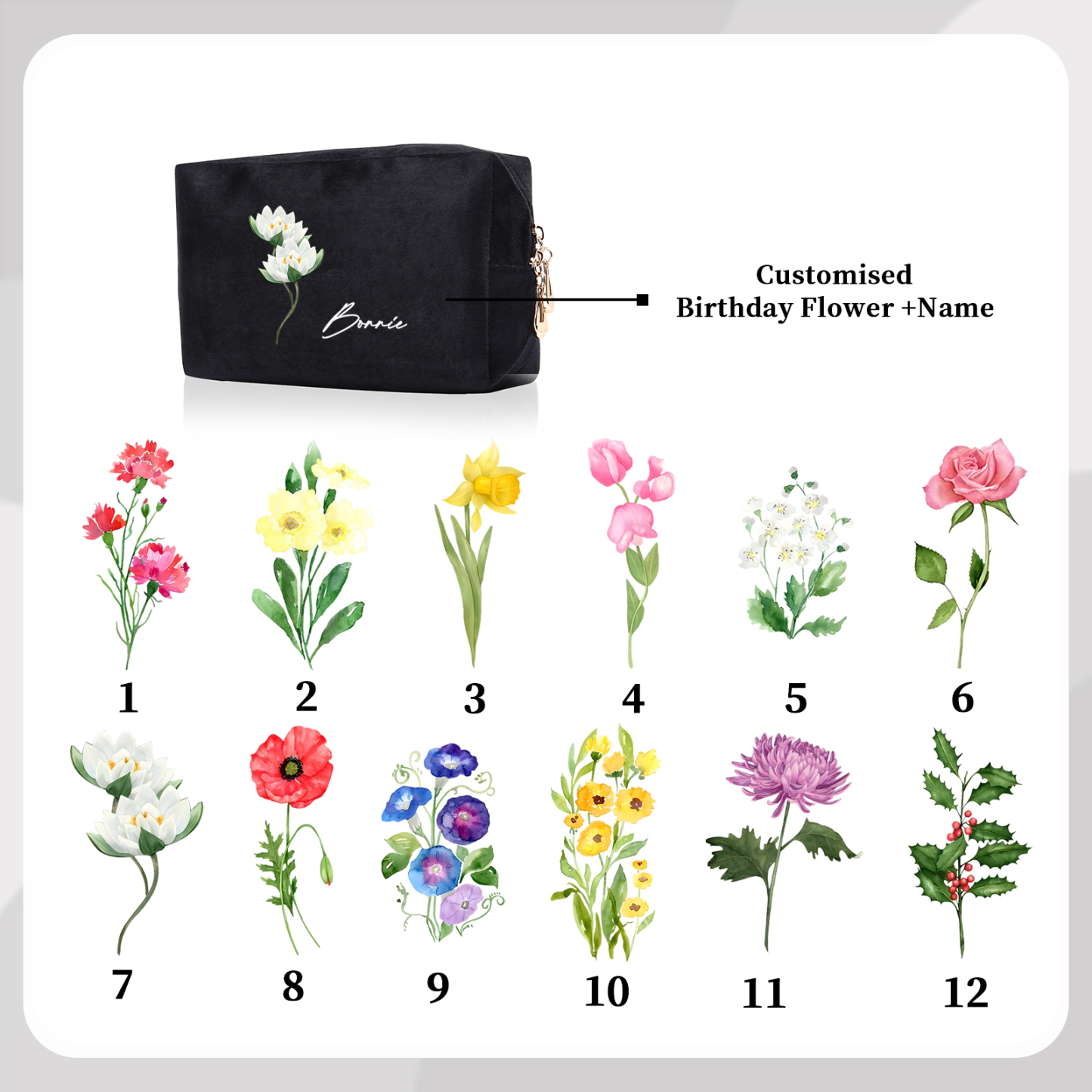 Introducing our exclusive customized makeup bag collection, where you can add your name and birth flower for a touch of personal flair! 🌺💫 Get ready to embrace the season with style and sophistication.