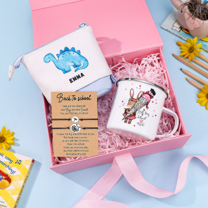 Personalized Custom 2 Name Gift Set Custom Enamel Mug And Blue Pencil Case And Dandelion Bracelet Gift Set Back To School Gift For Daughter