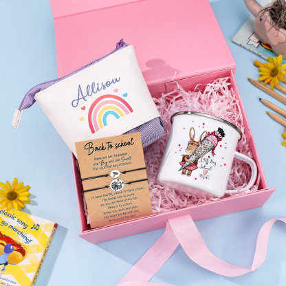 Personalized Custom 2 Names Gift Set Custom Enamel Mug & Purple Pencil Case & Dandelion Bracelets Gift Set Back-to-School Gifts for Daughters