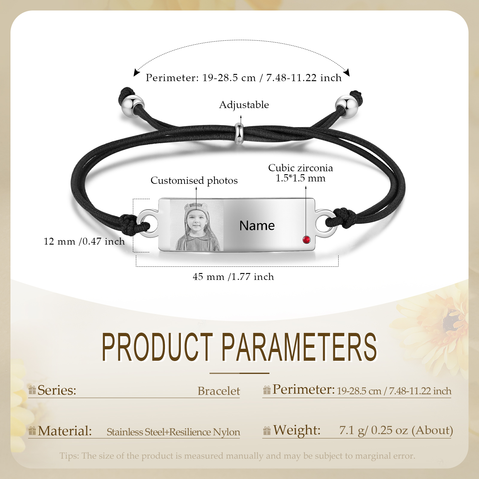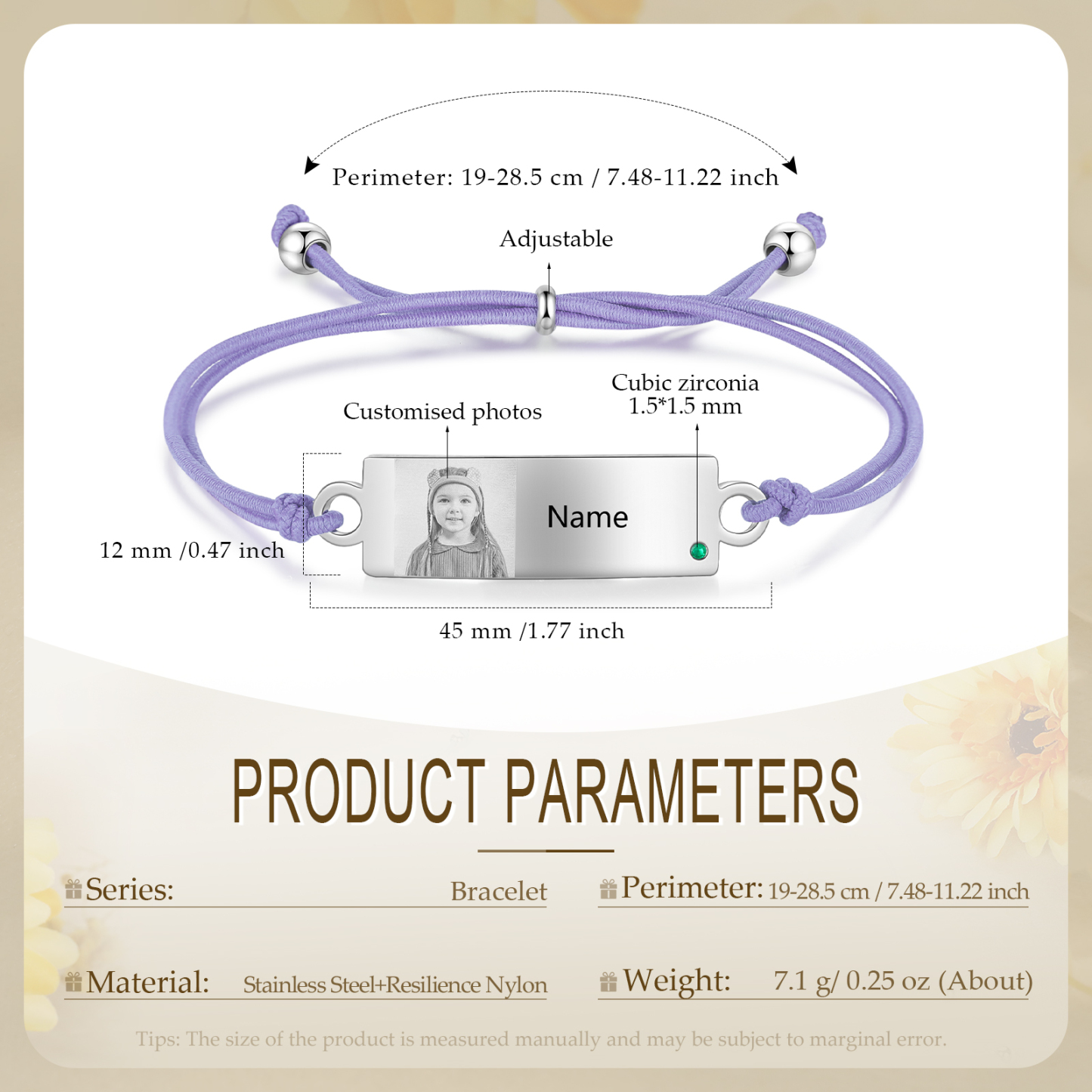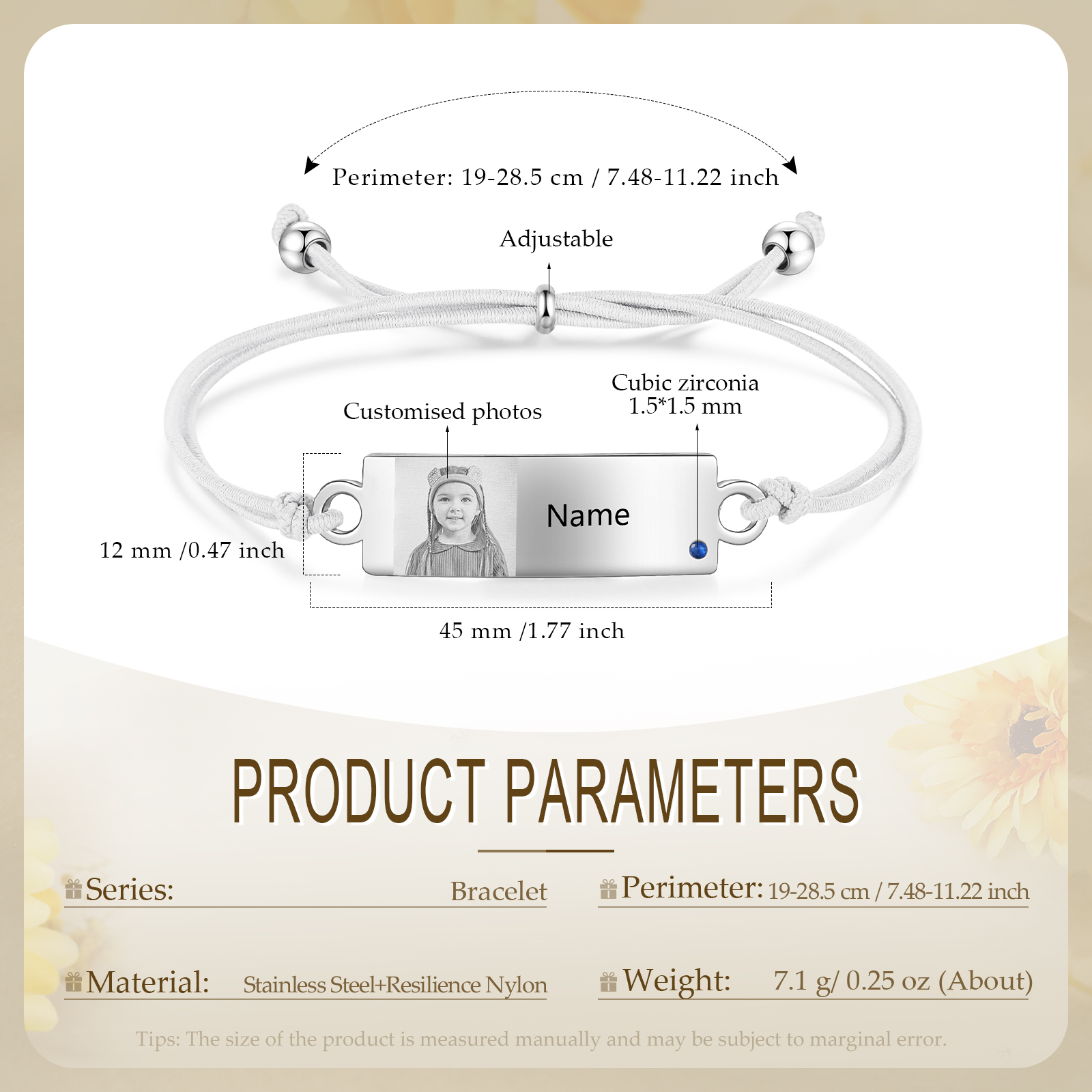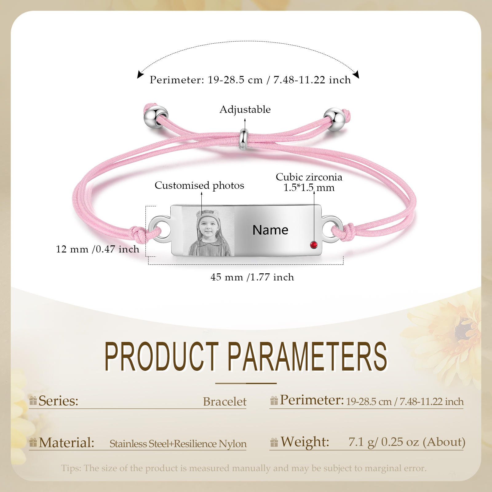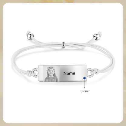 Personalized Custom Photo & Name & Birthstone Elastic Rope Stainless Steel Bracelet Adjustable Back To School Gift For Children
