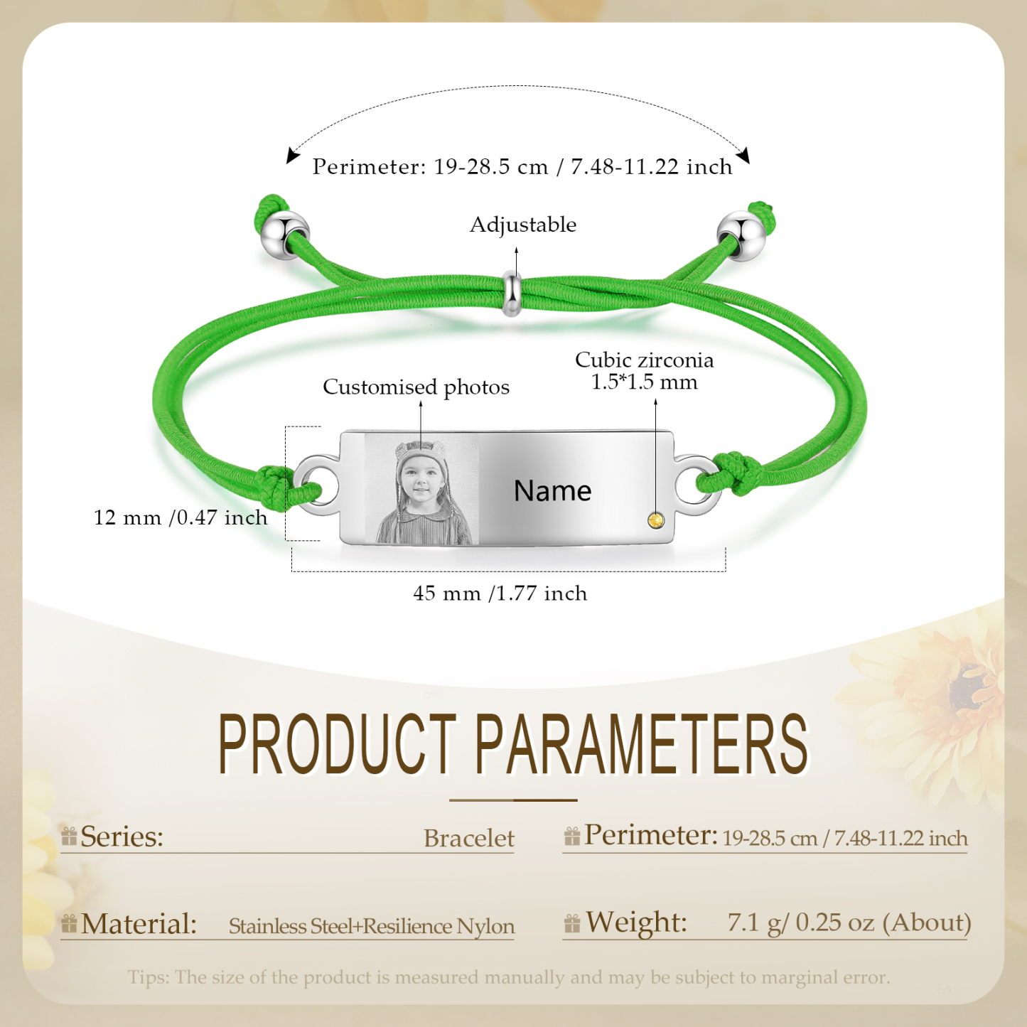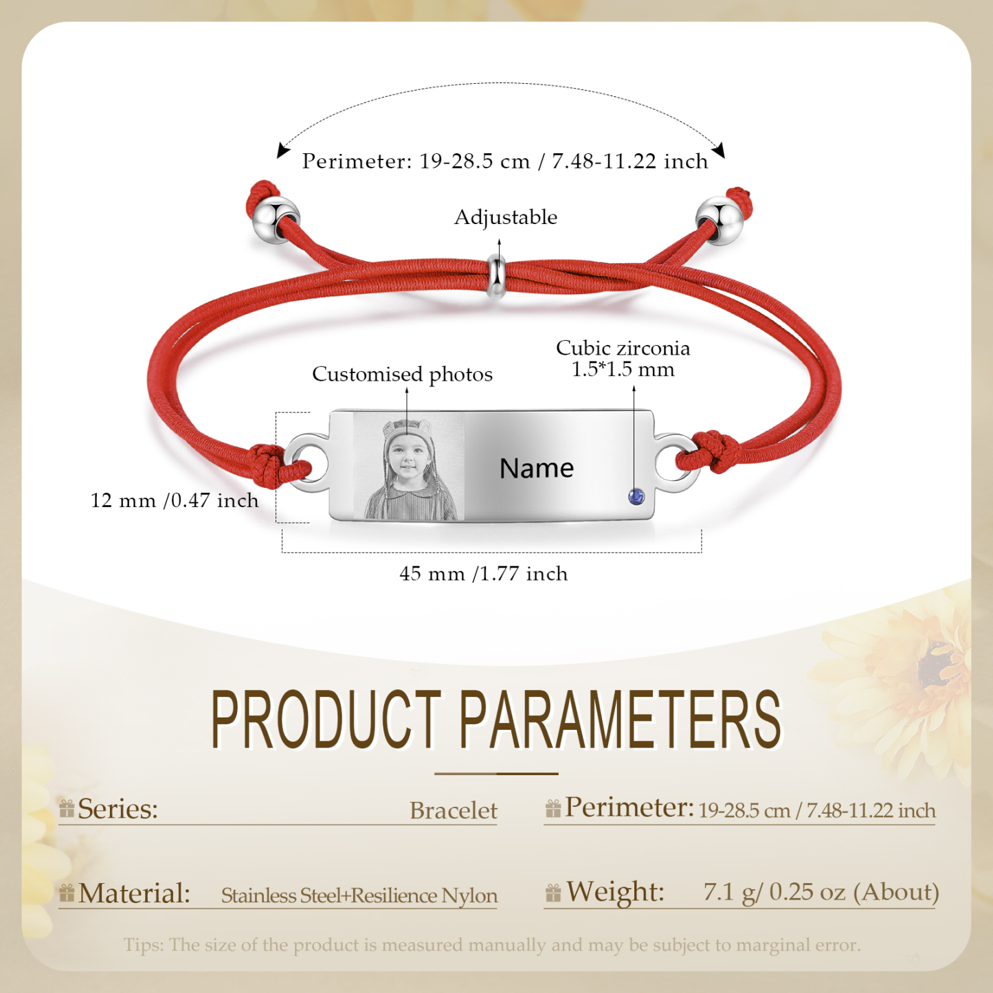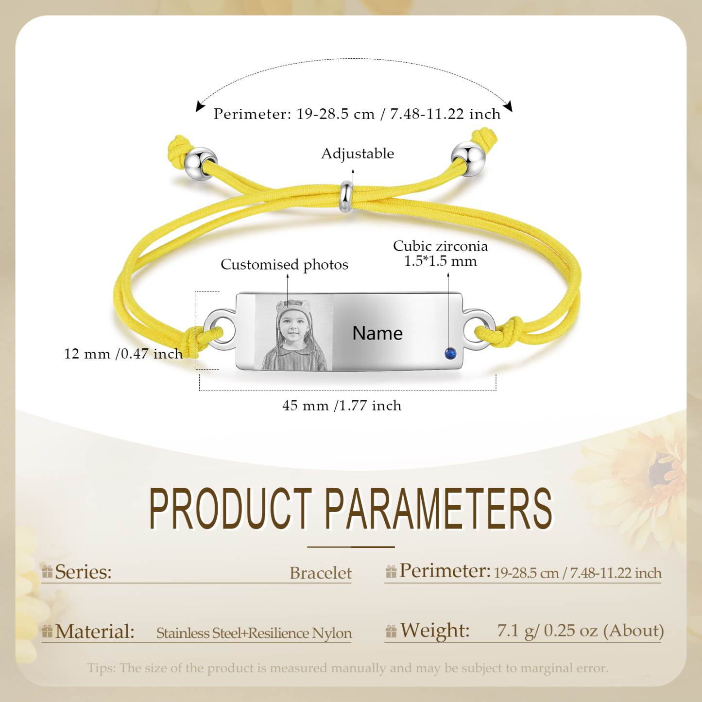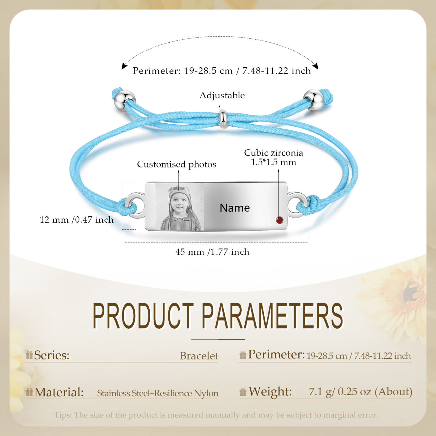 Personalized Custom Photo & Name & Birthstone Elastic Rope Stainless Steel Bracelet Adjustable Back To School Gift For Children