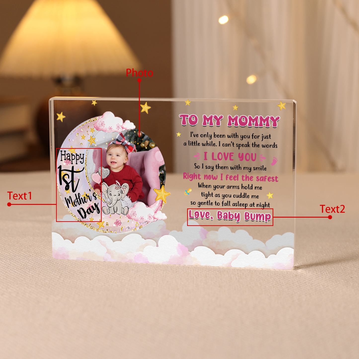 🔥This product supports customizing 1 photo and 2 texts. Customize with a treasured photo and two special words to create a lasting keepsake filled with love and appreciation. Celebrate family bonds with this unique symbol of sentiment.