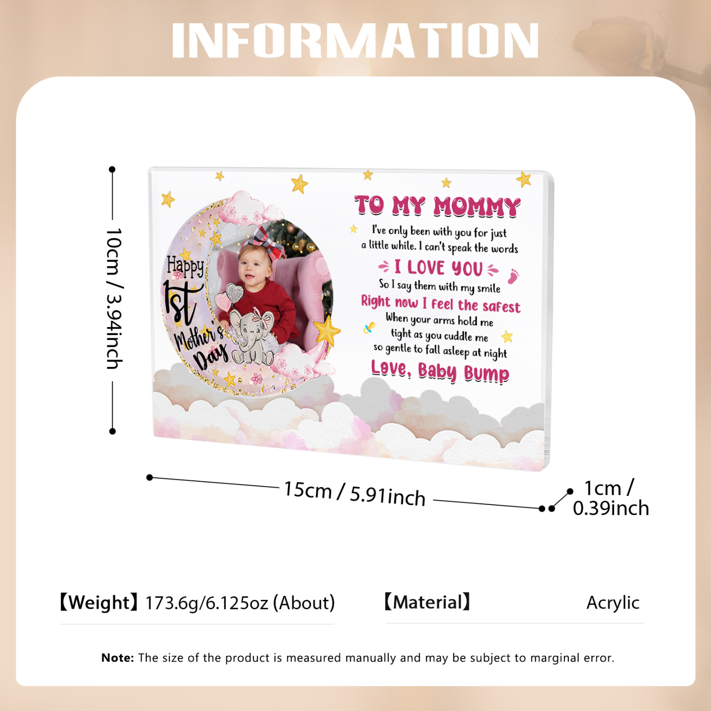 🎁“Capture moments and preserve memories. This beautiful acrylic keepsake makes a heartfelt gift for parents.