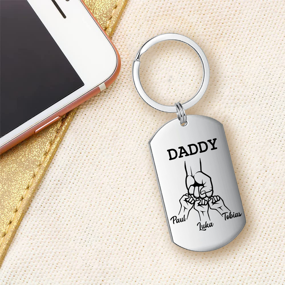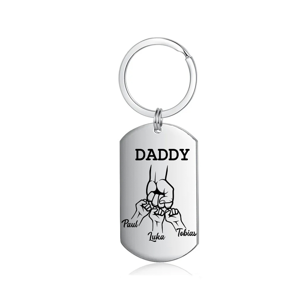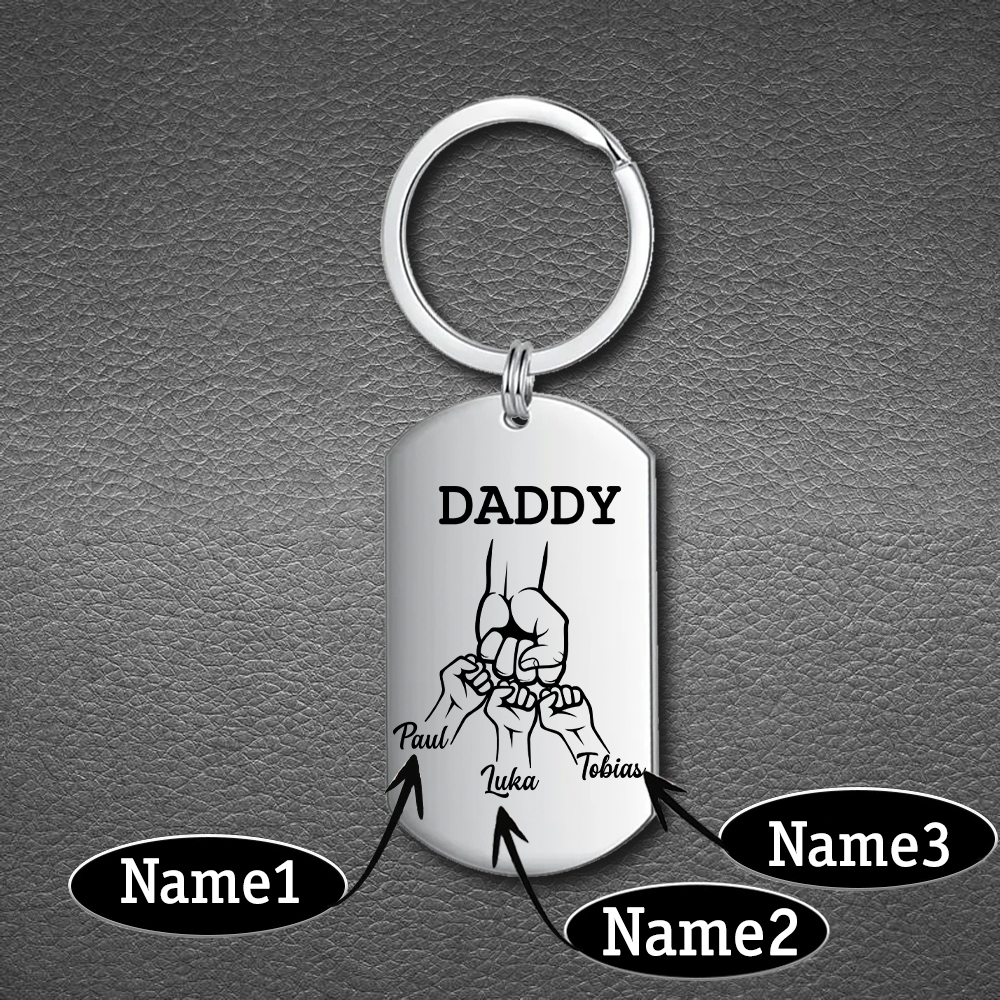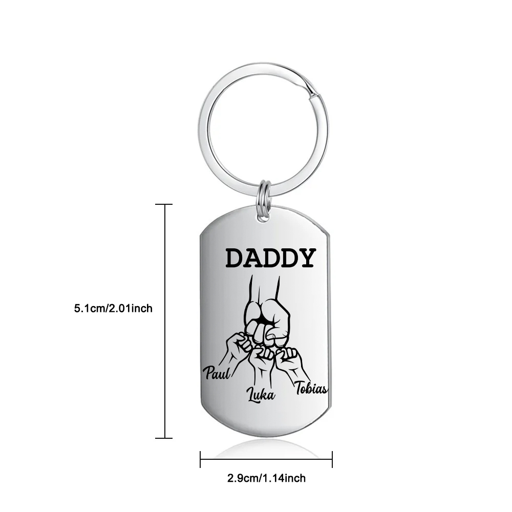 Personalized Daddy Fist Bump Keychain Engrave 3 Kids' Names Father's Day Gifts