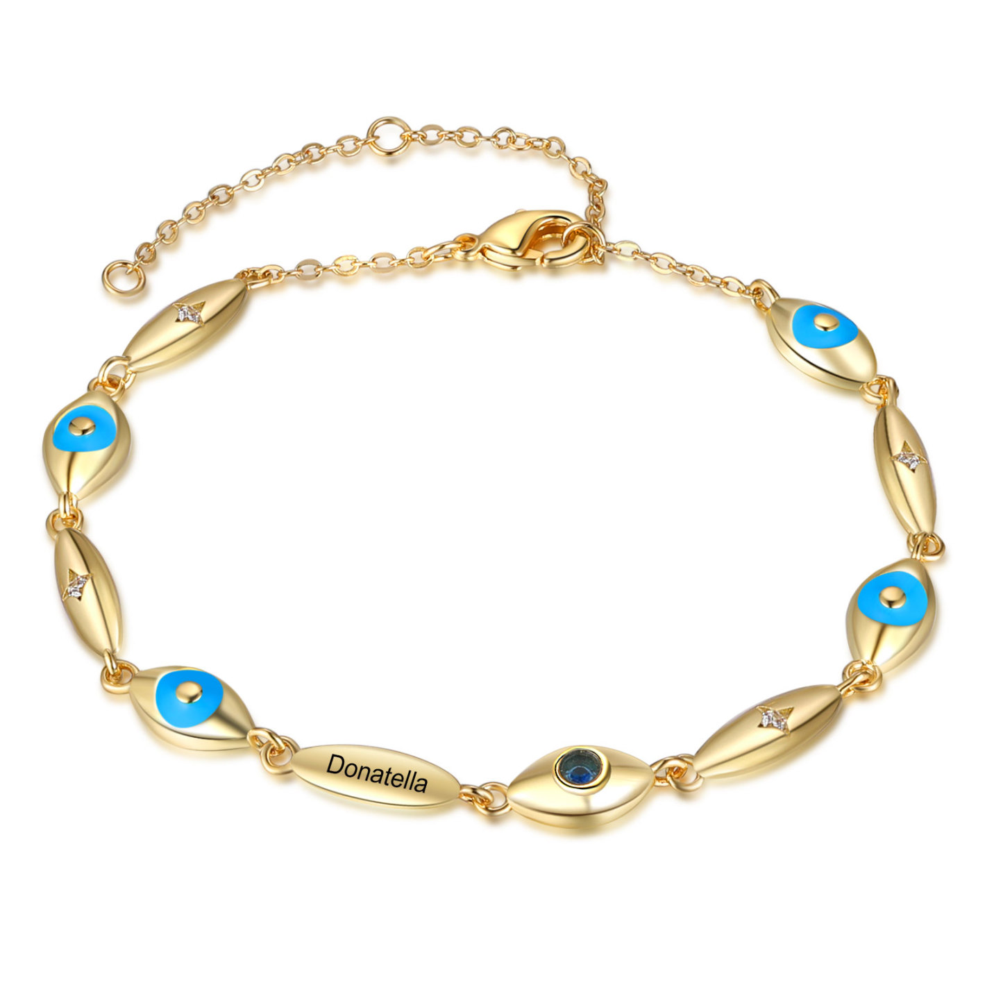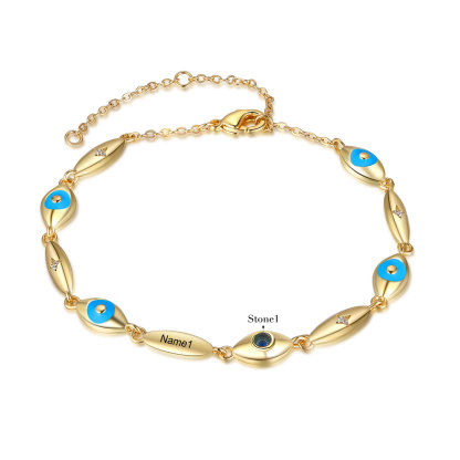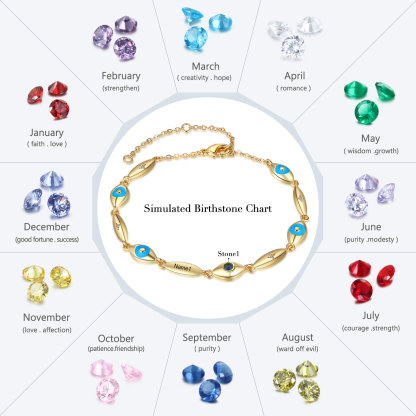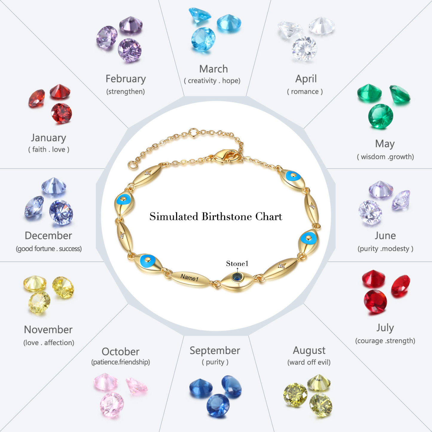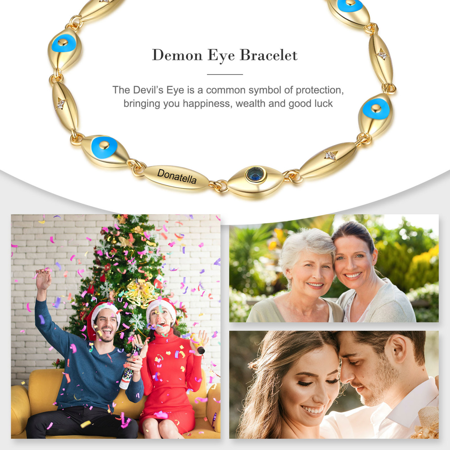 Personalized Demon Eye Bracelet With 1 Birthstones Engraved Name Bracelet Gifts For Her
