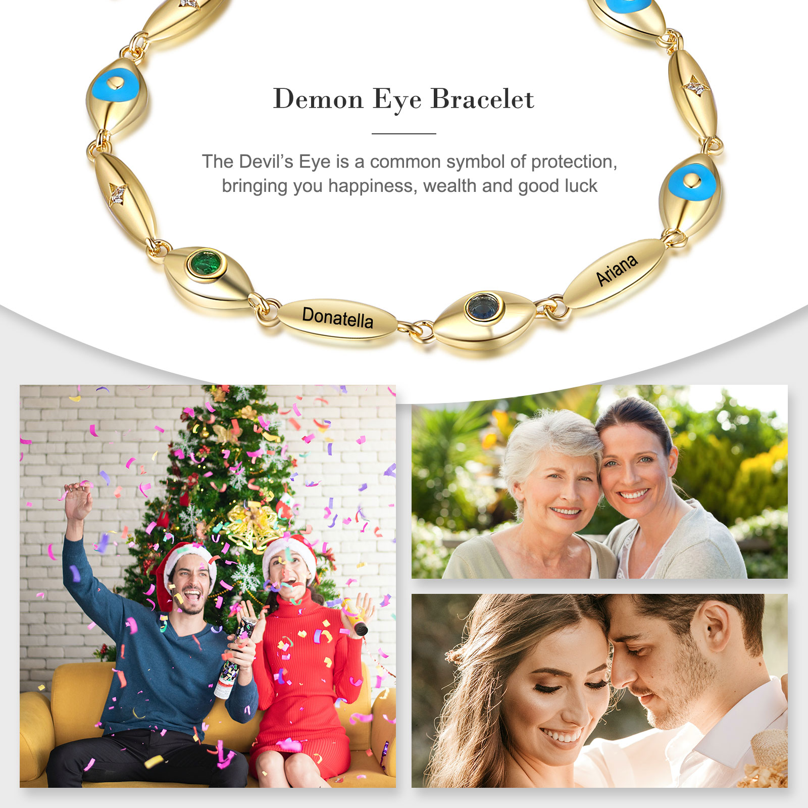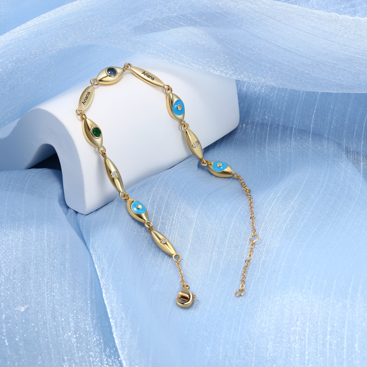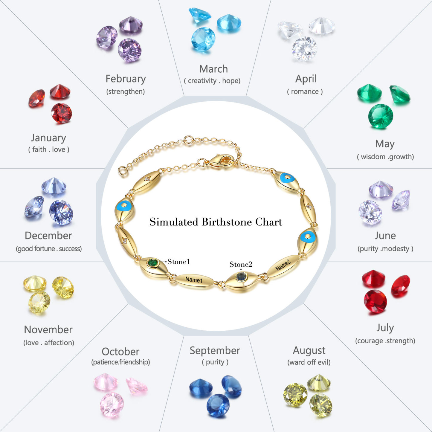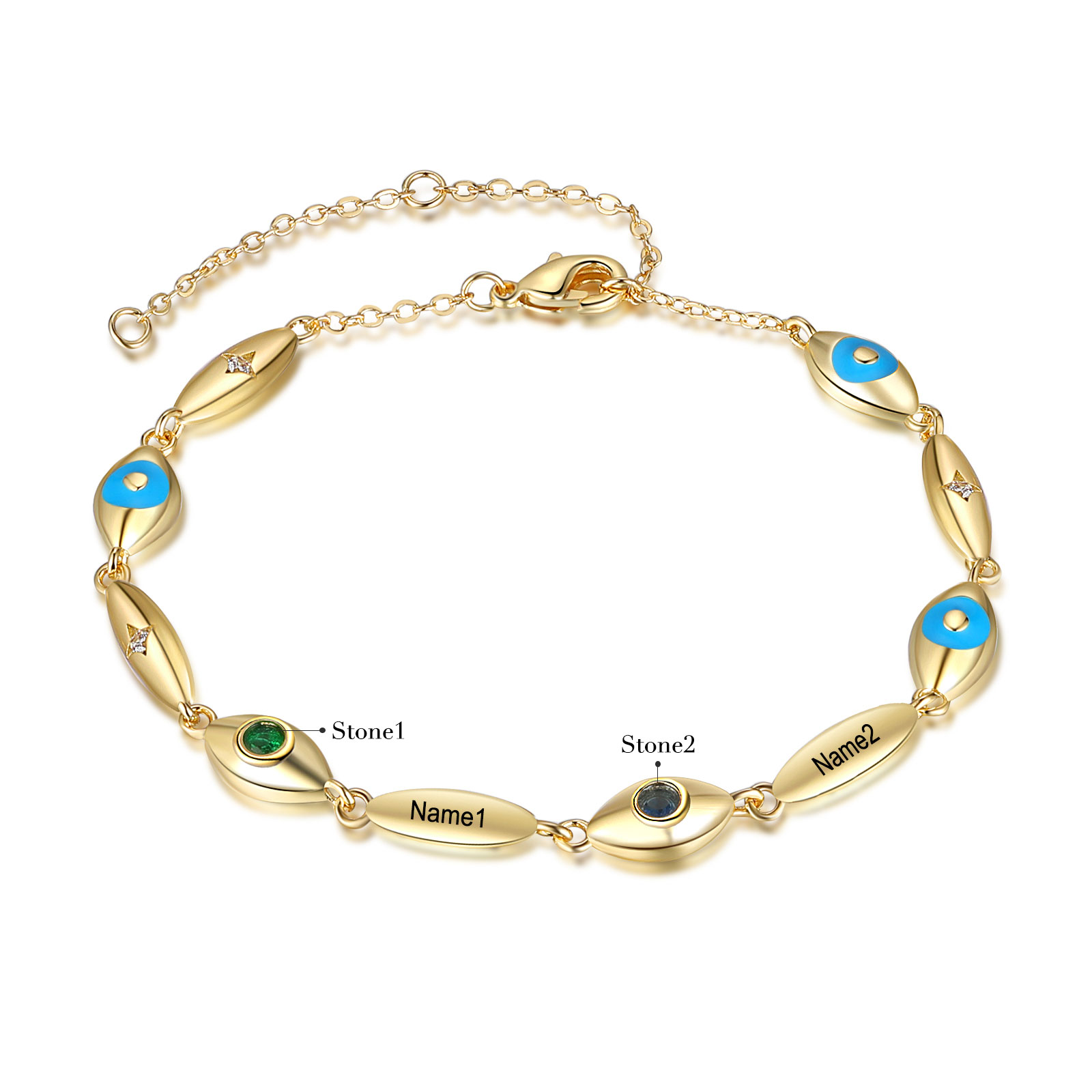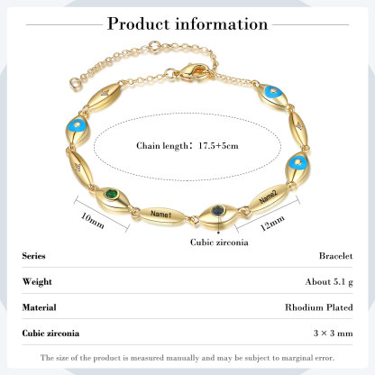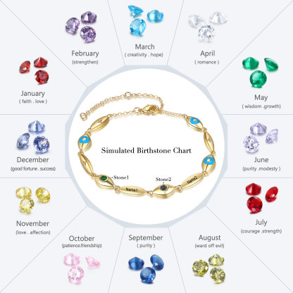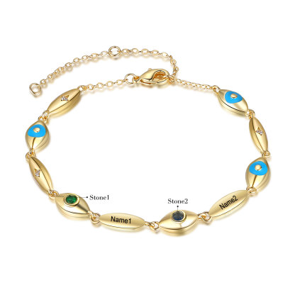 Personalized Demon Eye Bracelet With 2 Birthstones Engraved Name Bracelet Gifts For Her