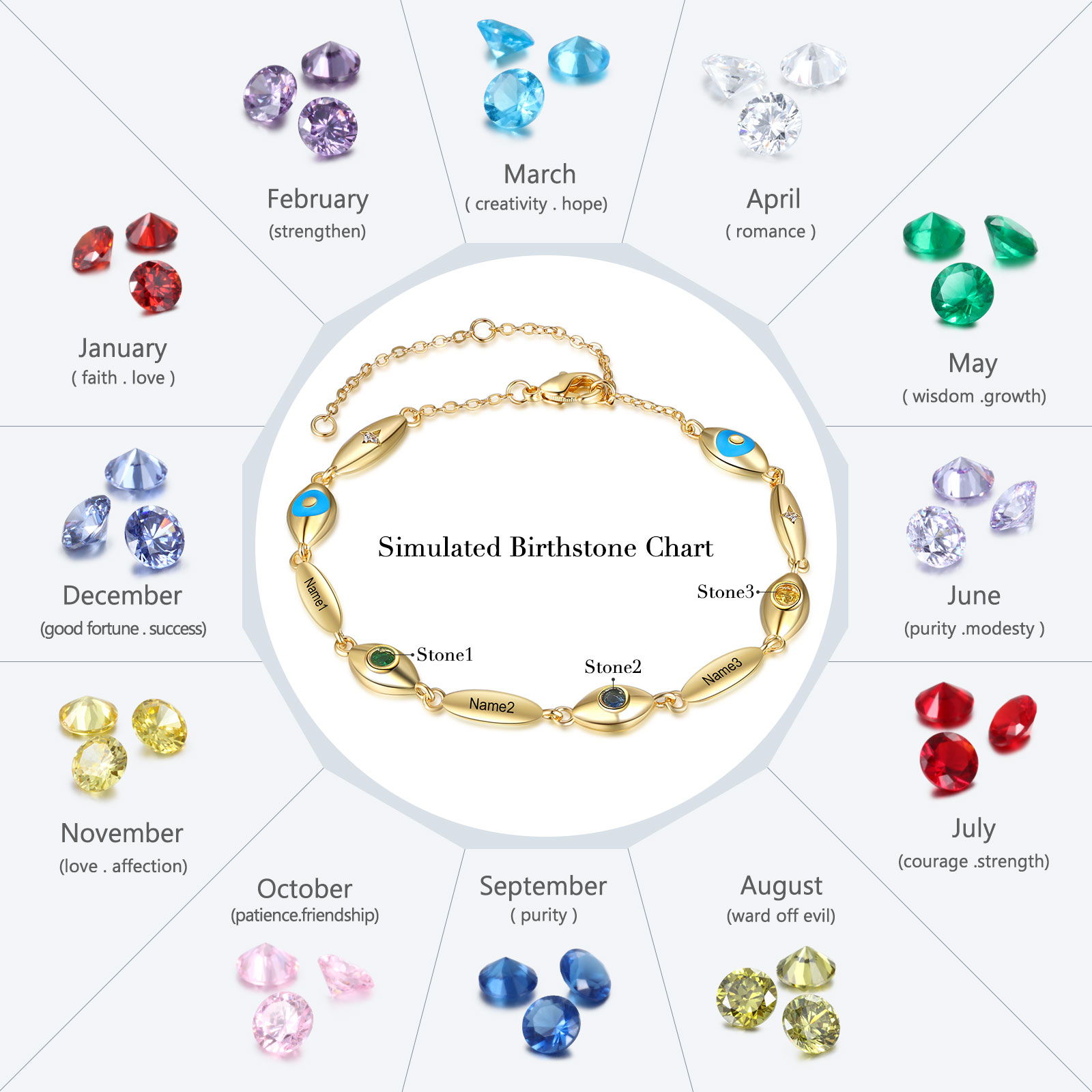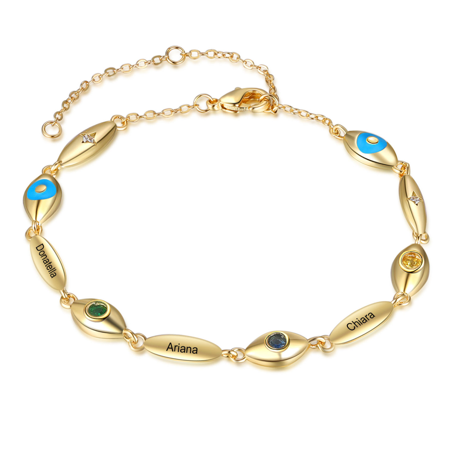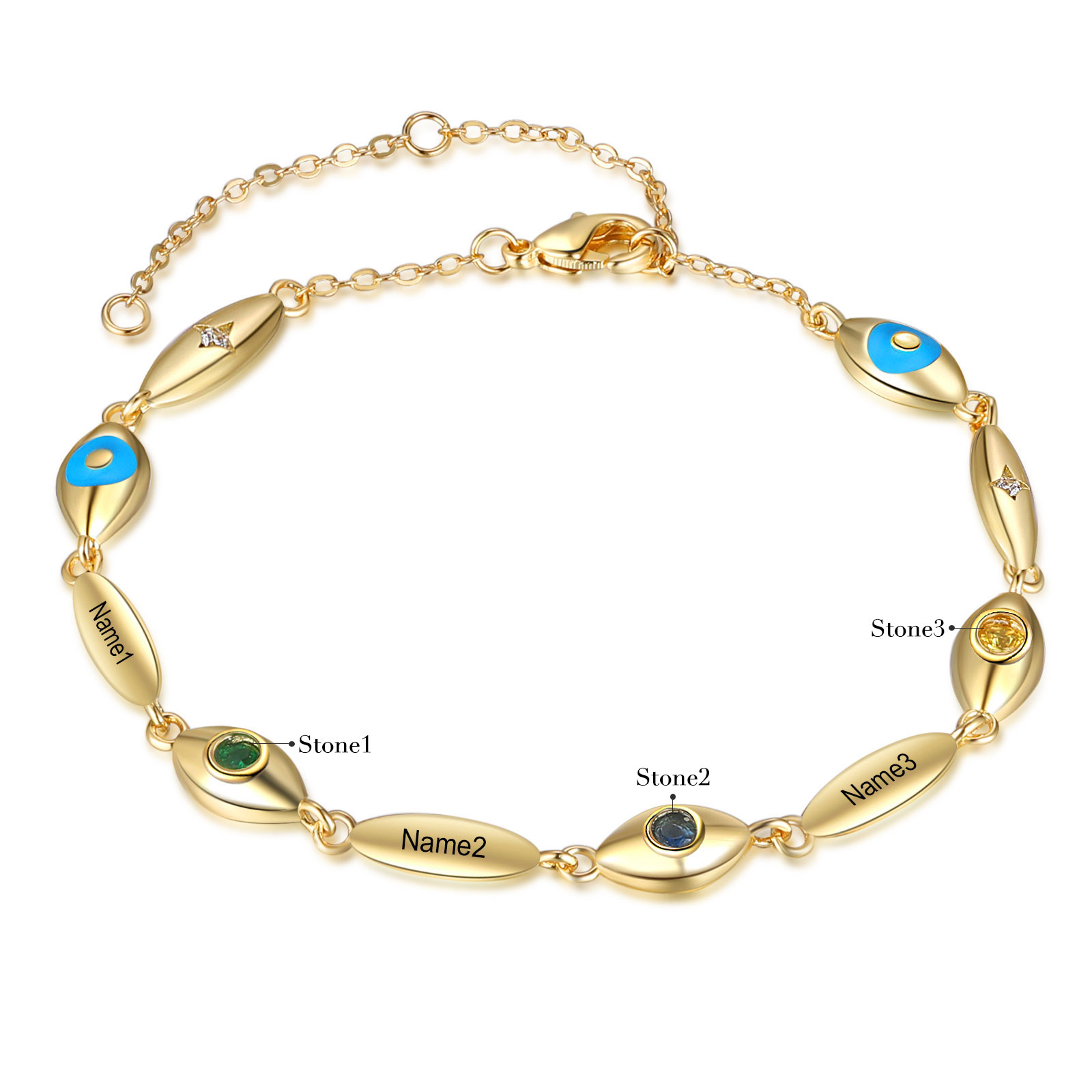Personalized Demon Eye Bracelet With 3 Birthstones Engraved Name Bracelet Gifts For Her