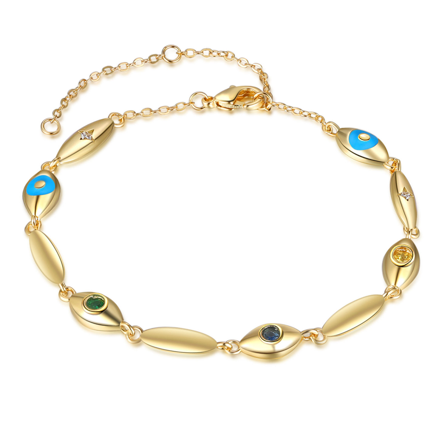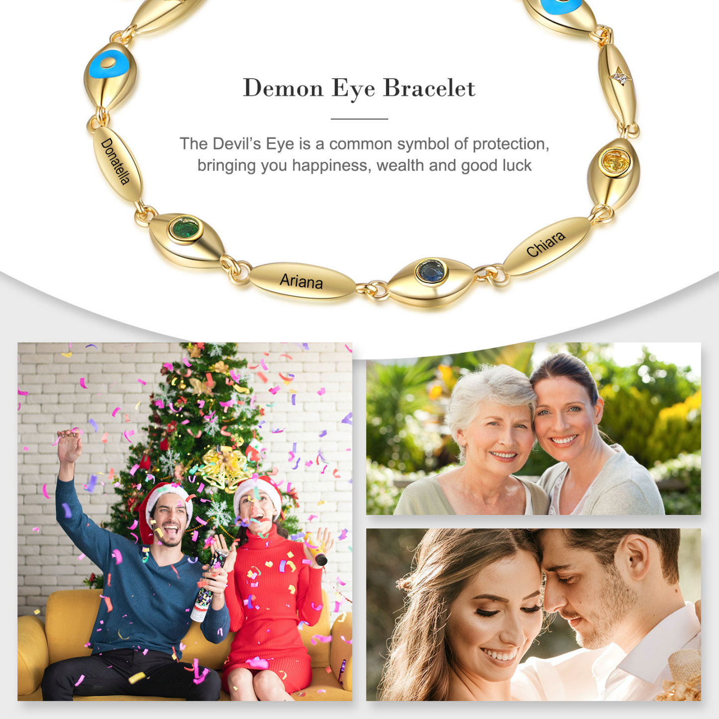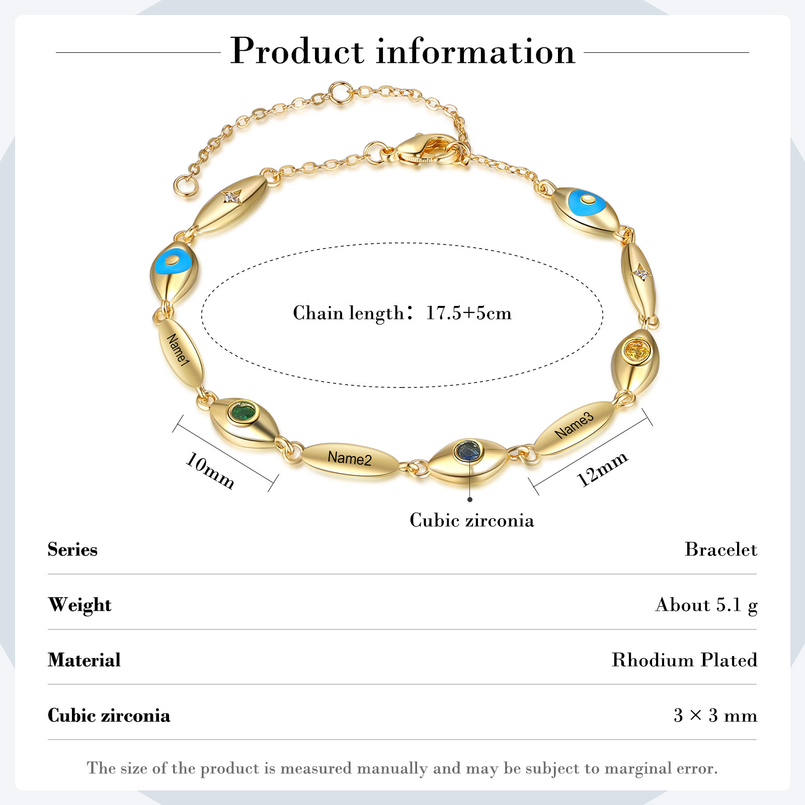 Personalized Demon Eye Bracelet With 3 Birthstones Engraved Name Bracelet Gifts For Her
